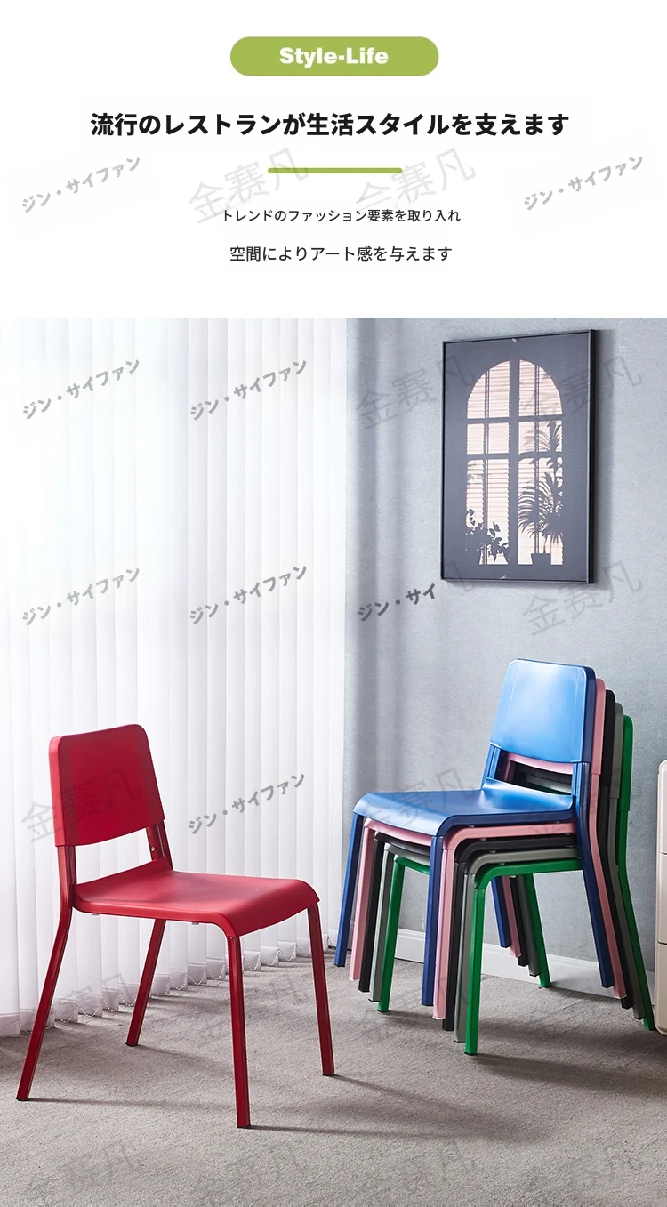 厚手のプラスチック製背もたれ椅子|家庭用・ダイニングに最適|アウトドアと民宿にぴったり|庭やテラスでリラックス|スタッキング可能で収納簡単!