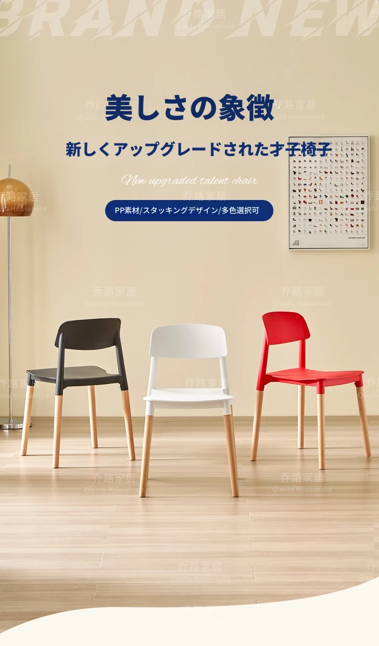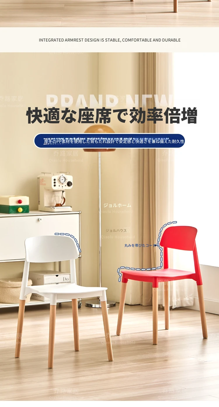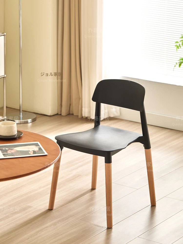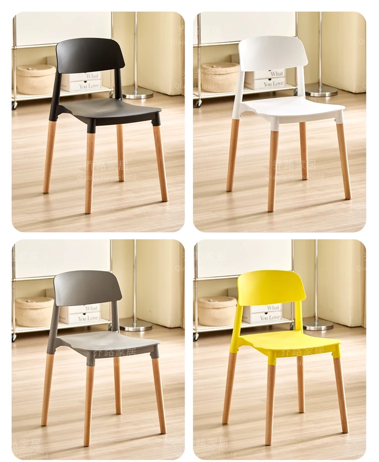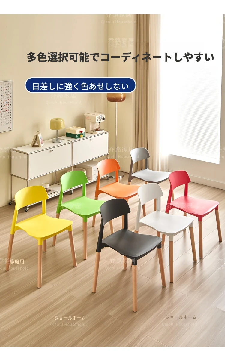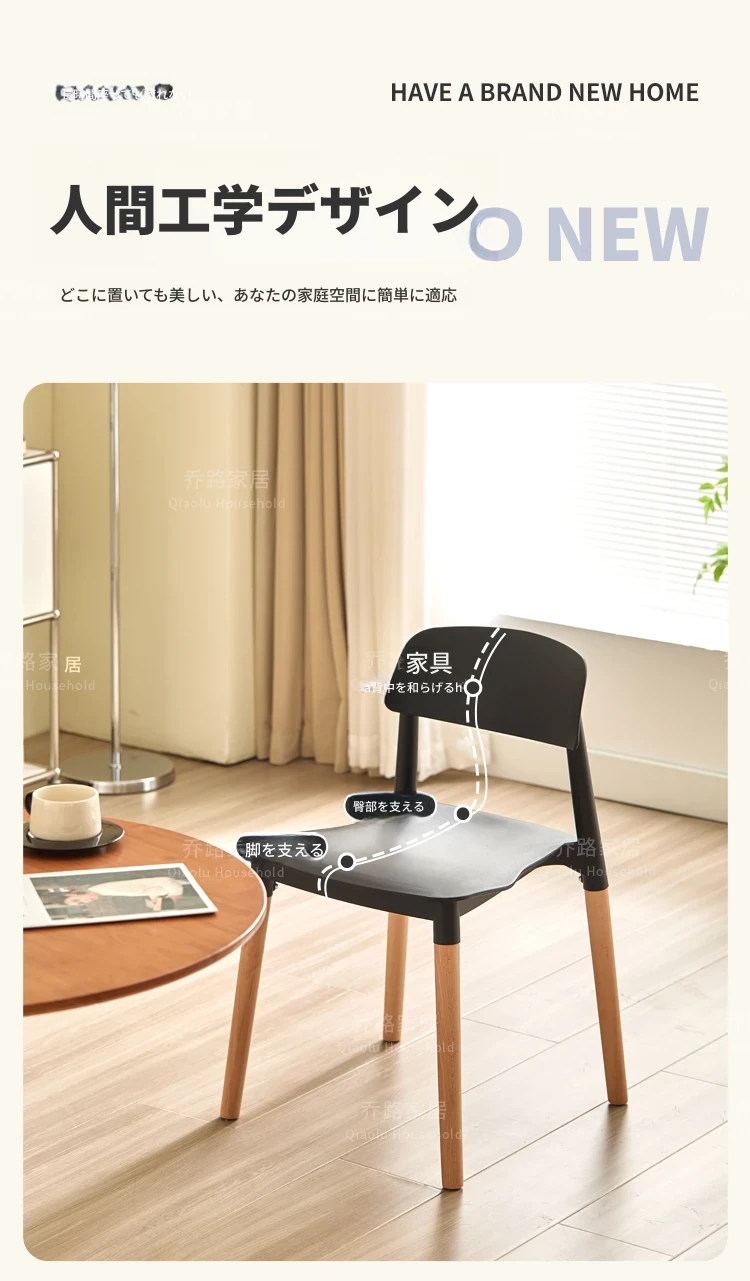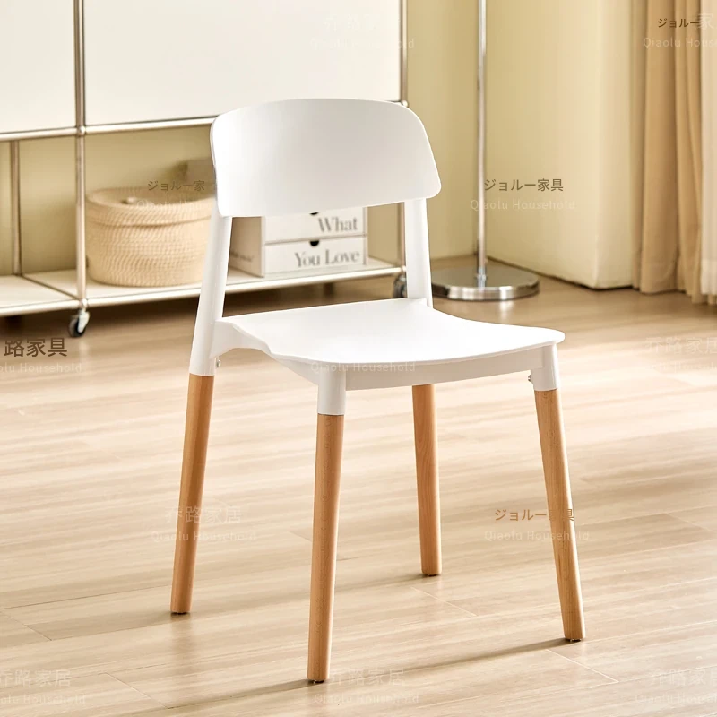 北欧風モダンシンプルプラスチックチェア|待機チェア|天然木製|家庭用|背もたれ付きリラックス大人向け|快適な収納チェア