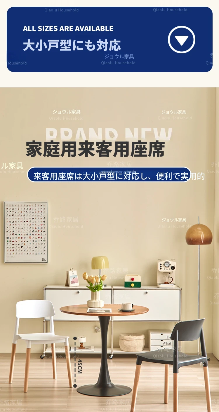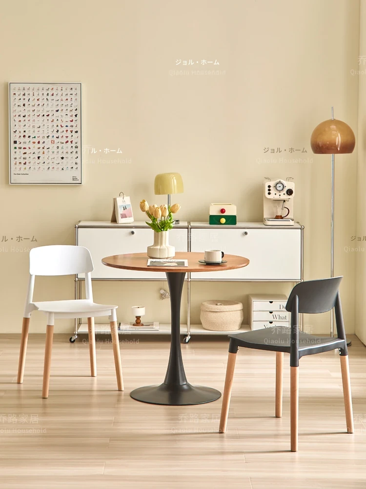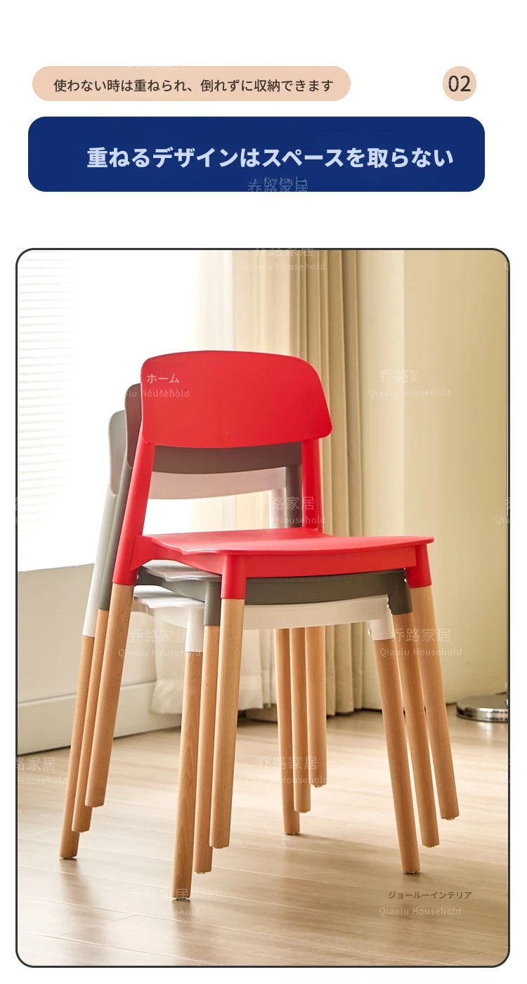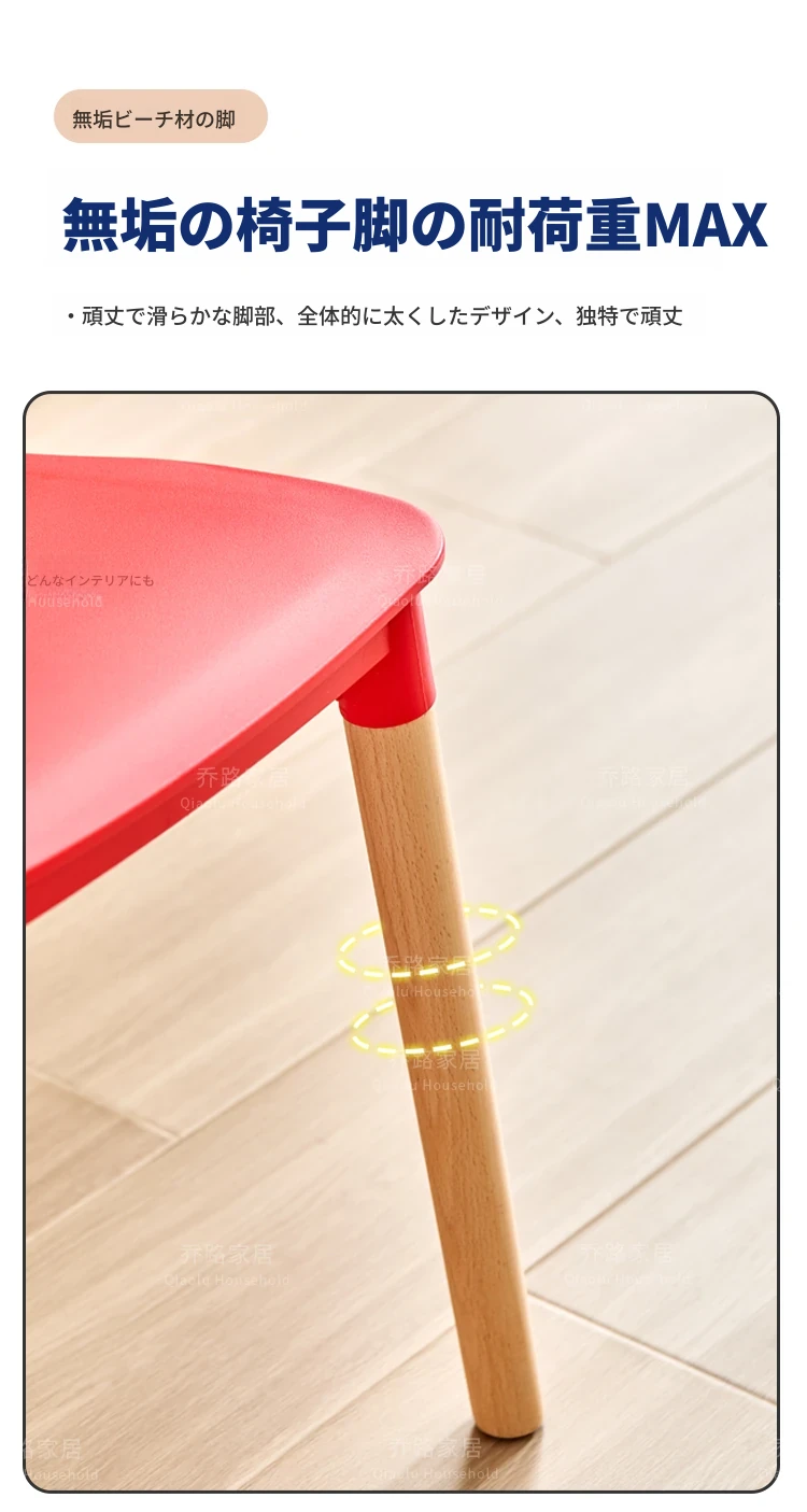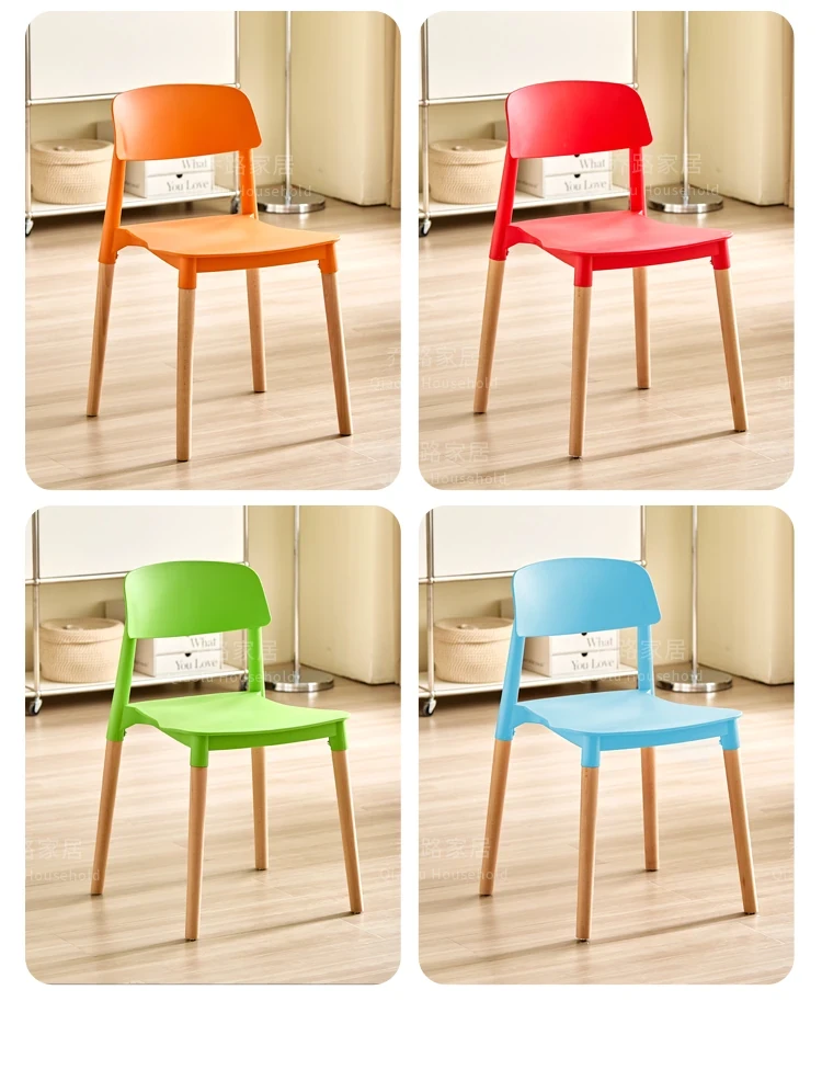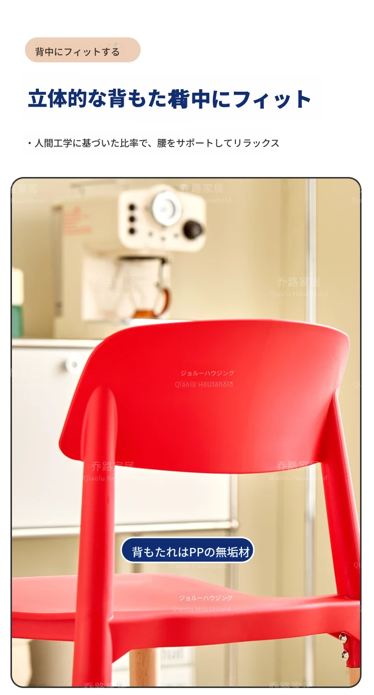 北欧風モダンシンプルプラスチックチェア|待機チェア|天然木製|家庭用|背もたれ付きリラックス大人向け|快適な収納チェア