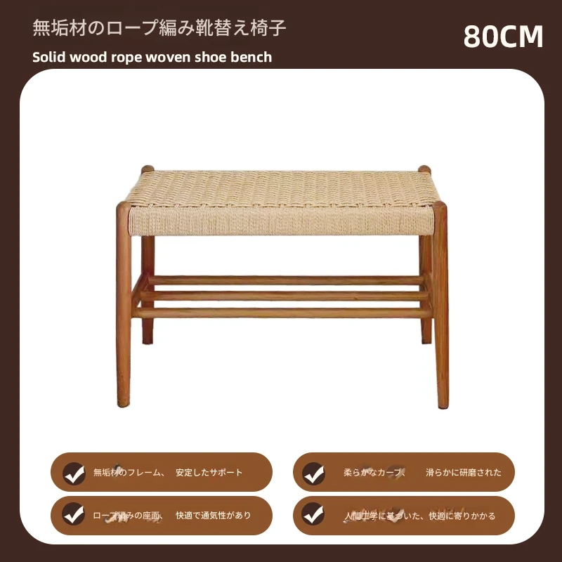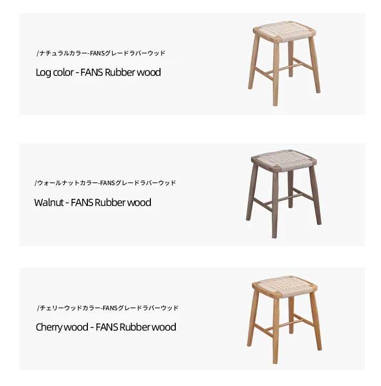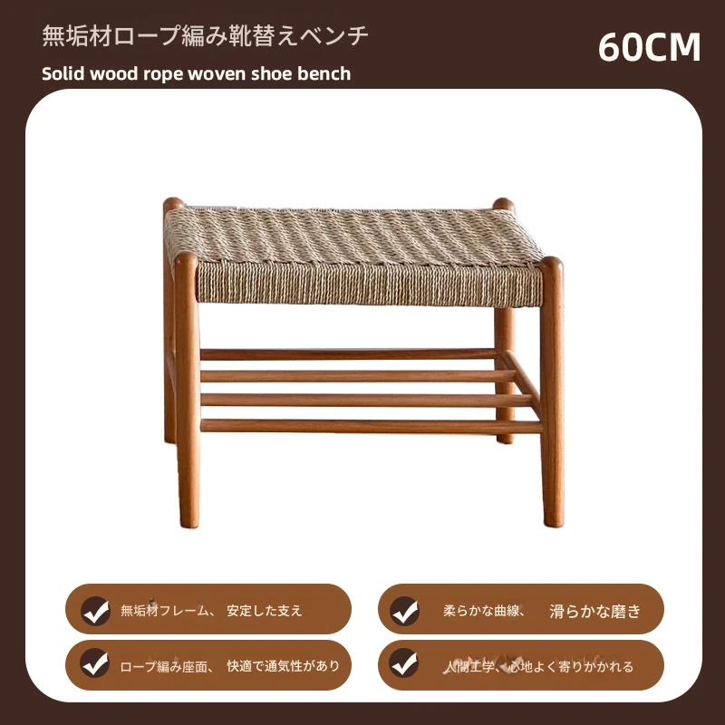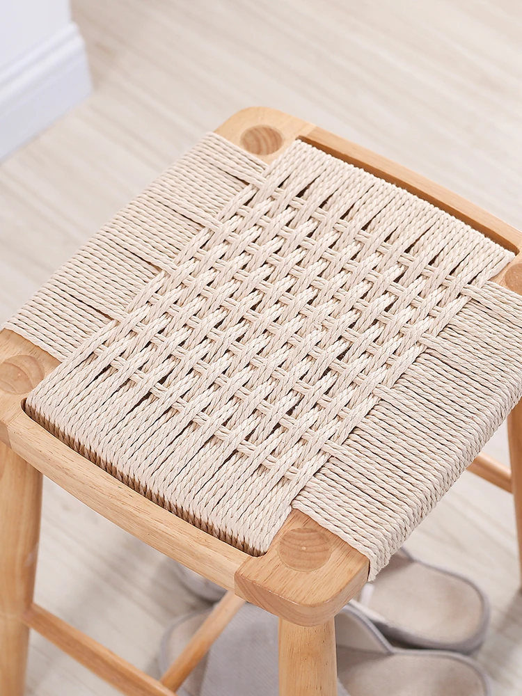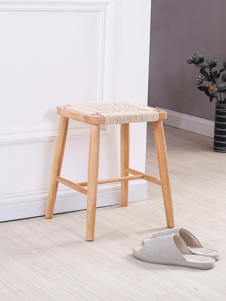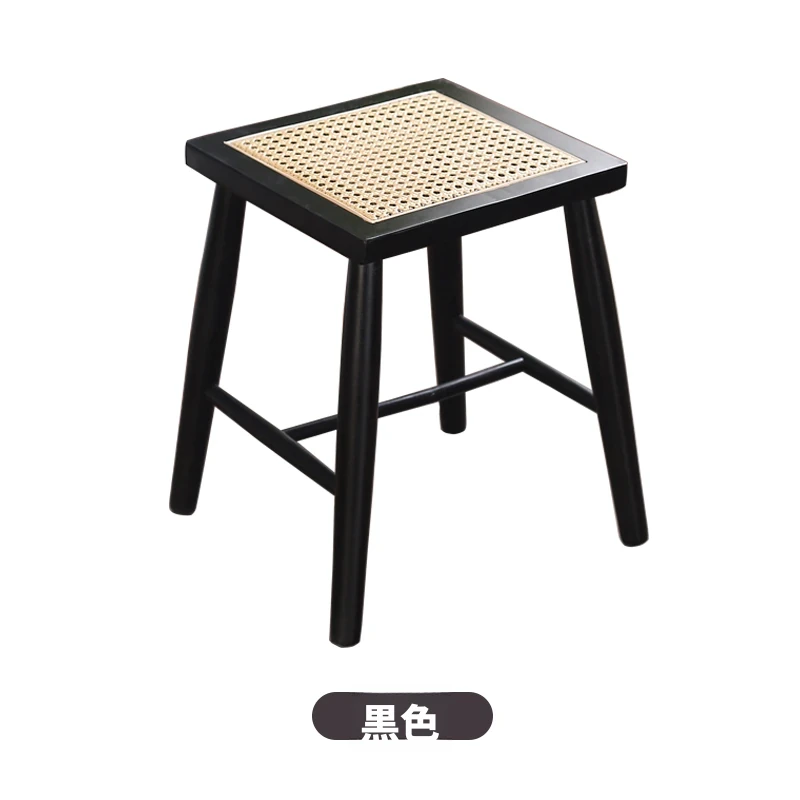 北欧スタイルの実木製ドレッシングスツール - 藤編みのシンプルなデザイン、リビングや寝室にぴったり!オーク材使用で高級感漂う小さな椅子。化粧やリラックスタイムに最適なアイテムです。