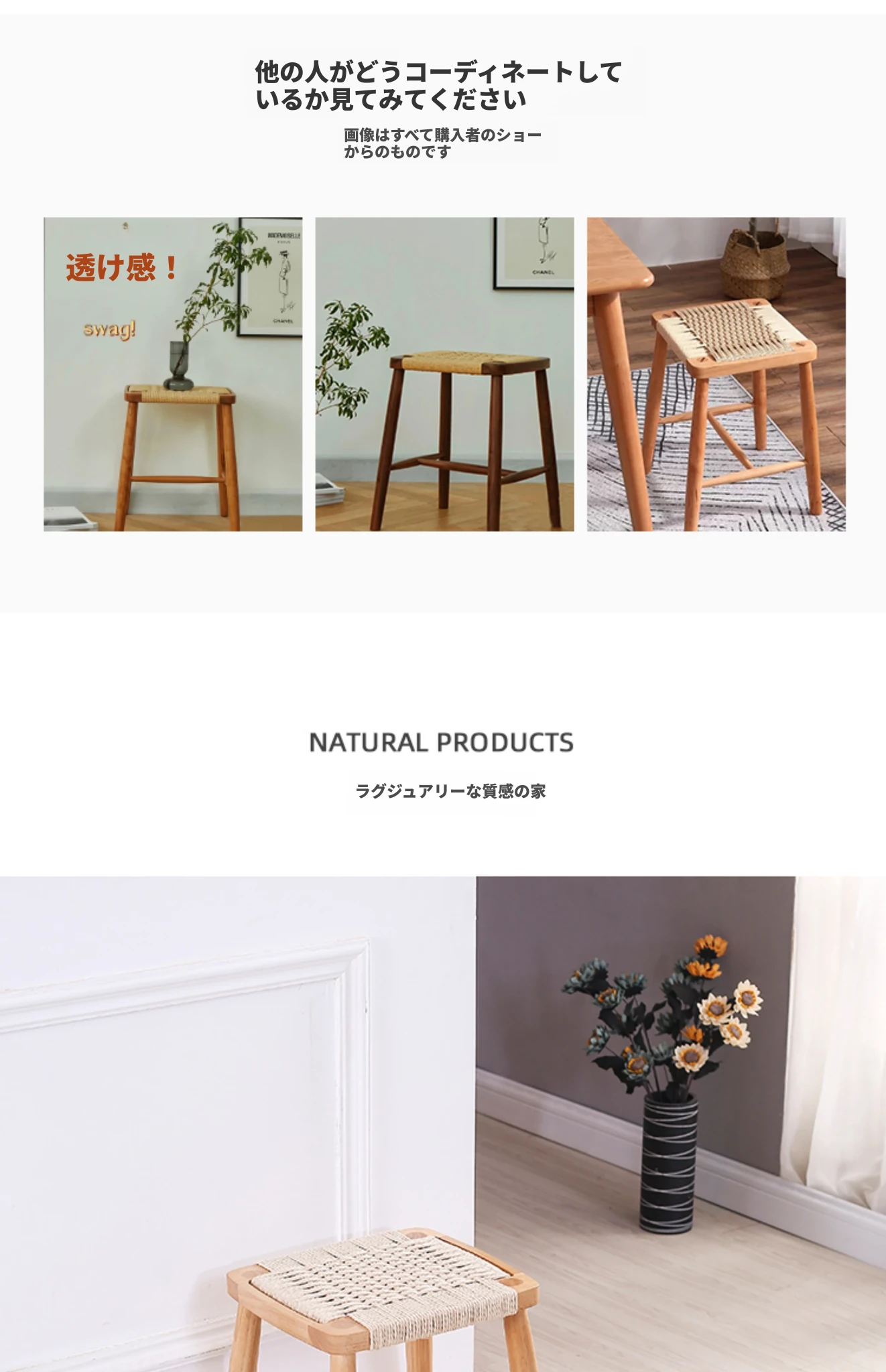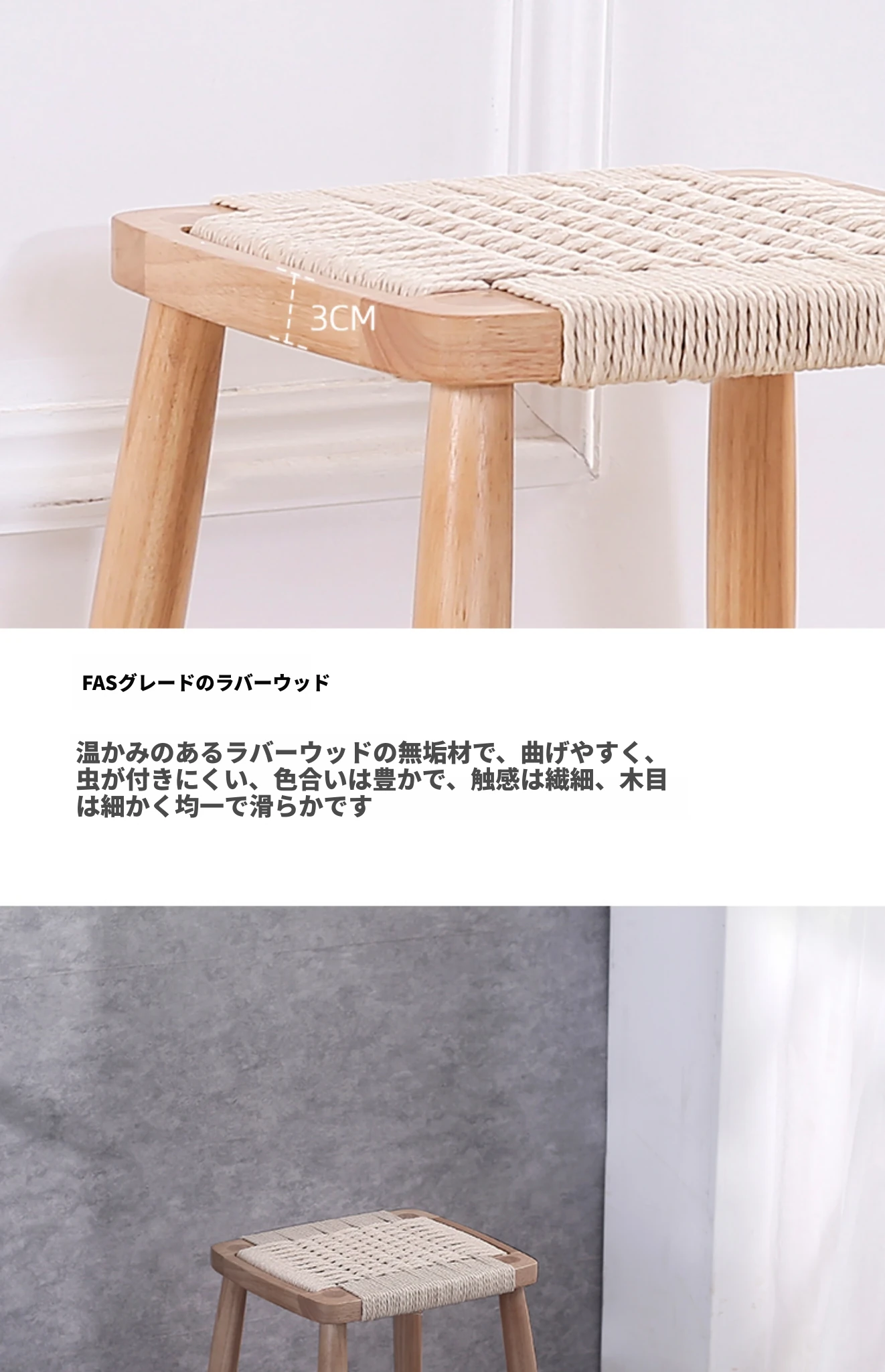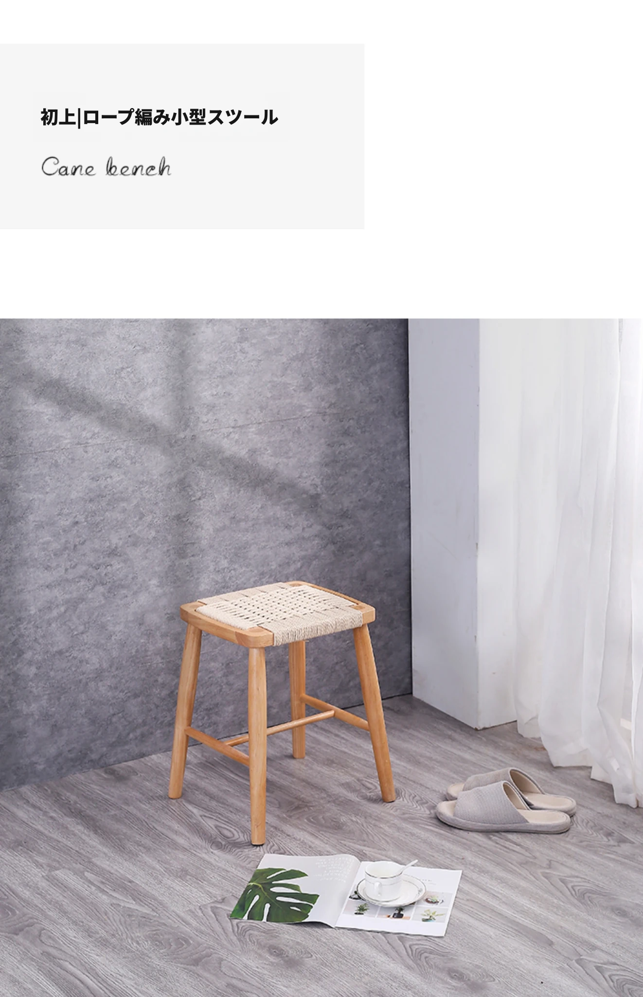 ロープ編み小型スツール原木色