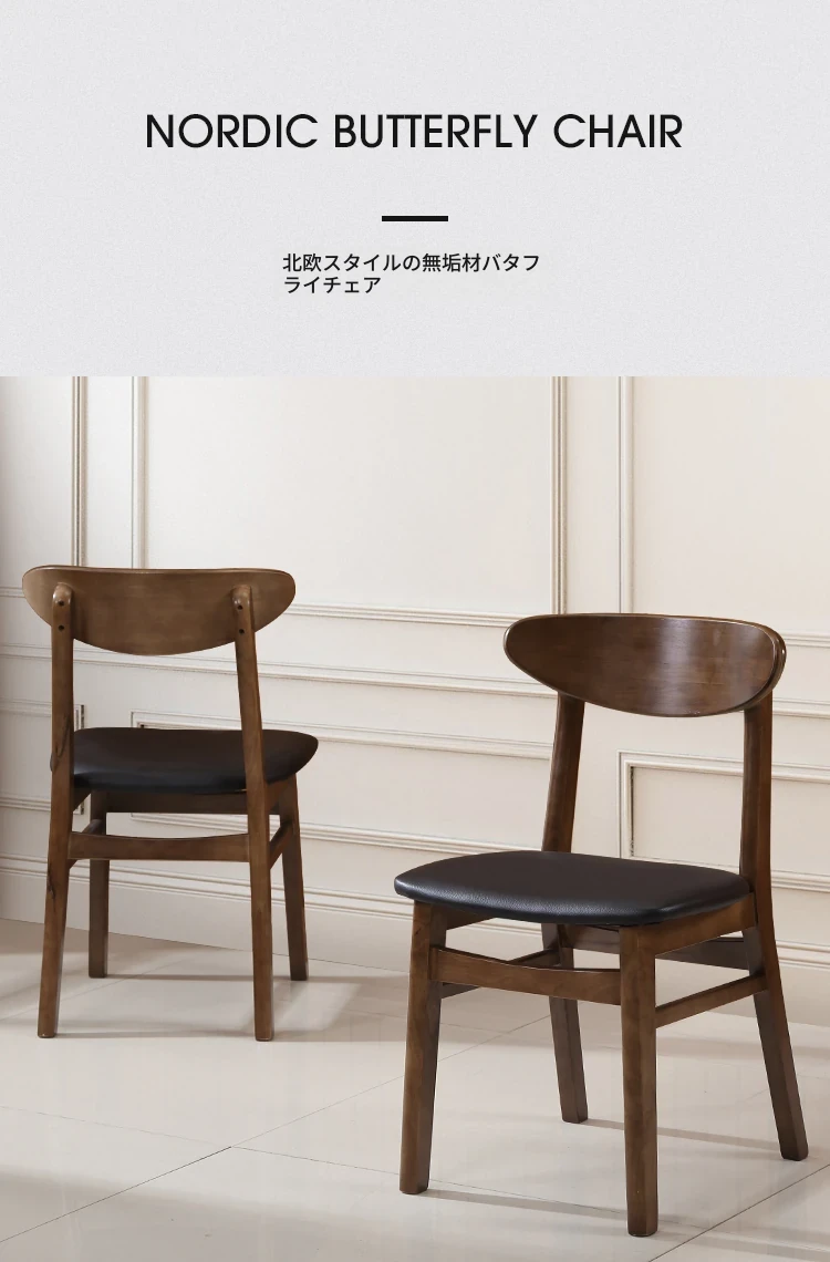 北欧スタイルの無垢材バタフライチェア - シンプルで洗練されたデザイン、モダンアメリカンのダイニングにぴったり!家庭用の快適な背もたれ付きリラックスチェア。おしゃれで機能的な一品をお見逃しなく!