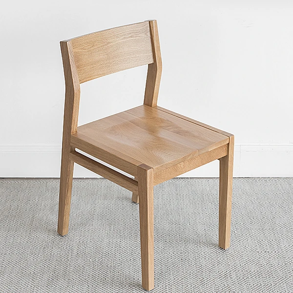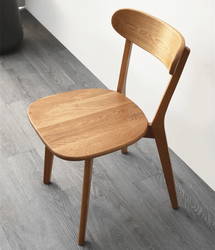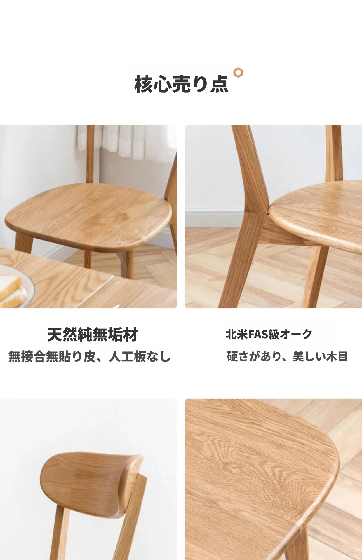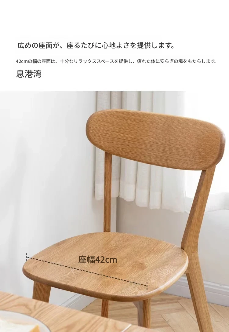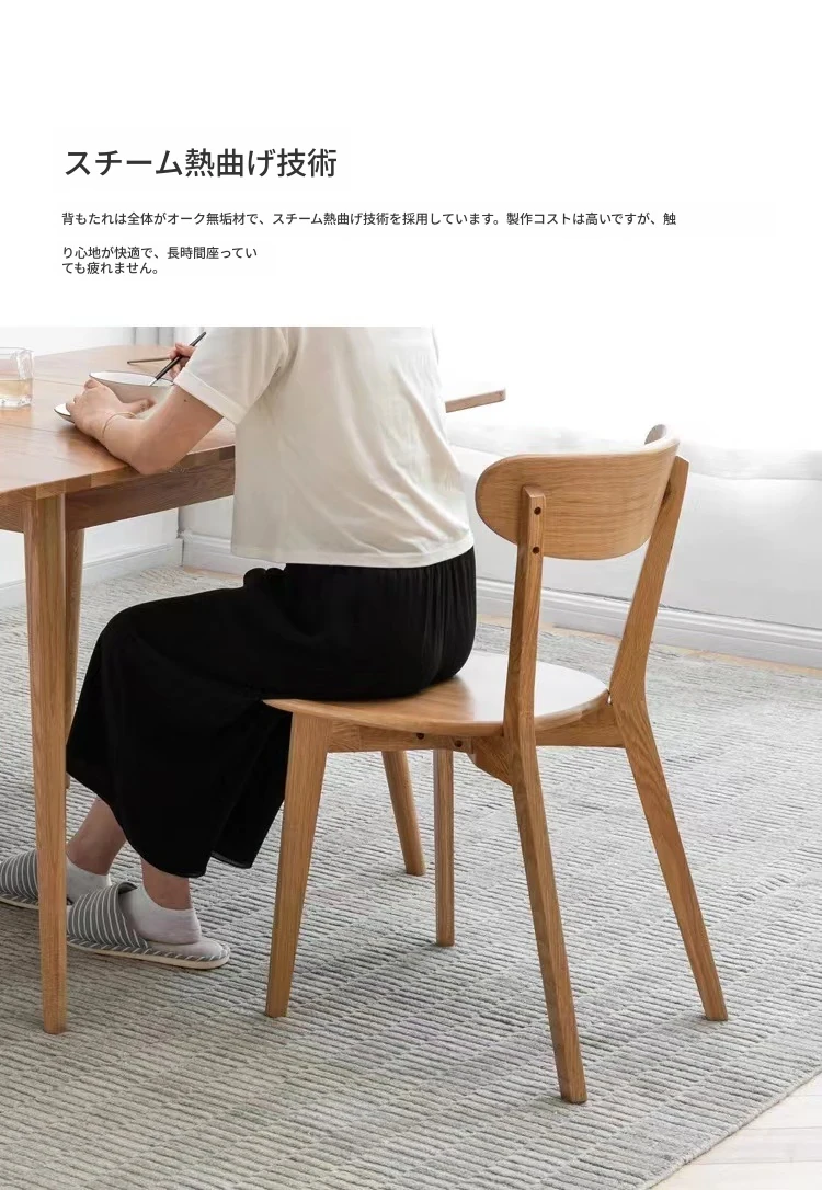 北欧スタイルの全木製ダイニングチェア - ホワイトオークのシンプルで快適な背もたれ付き、リラックスできる交差デザインのルイーズチェア。おしゃれなダイニング空間を演出し、食事のひとときを特別に!