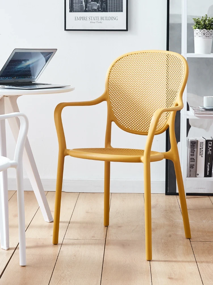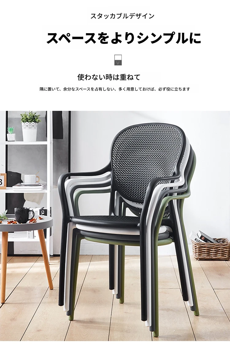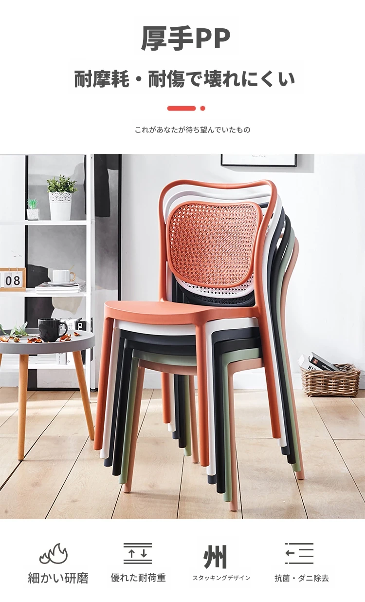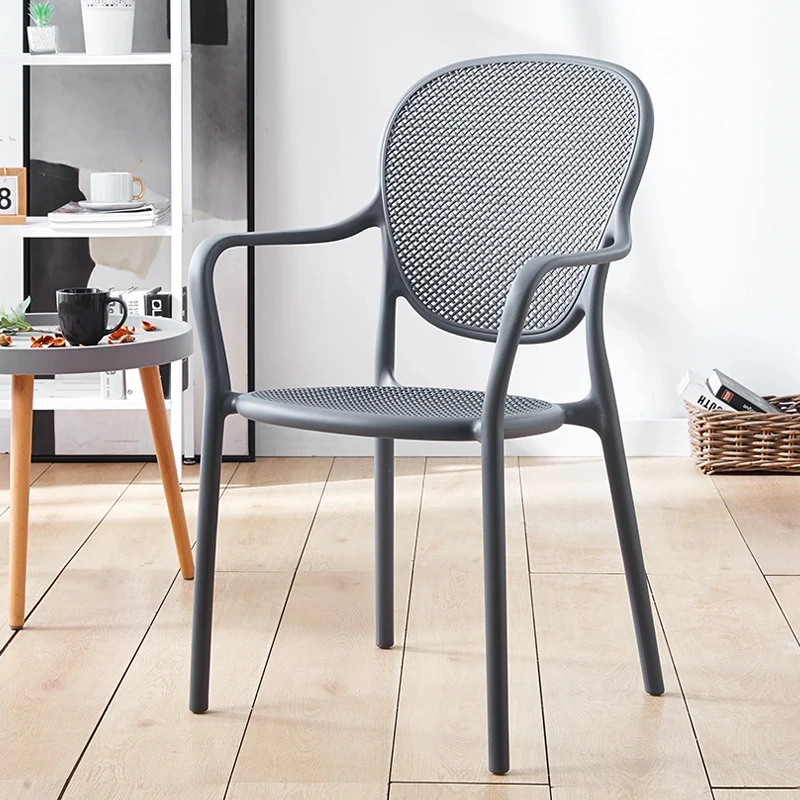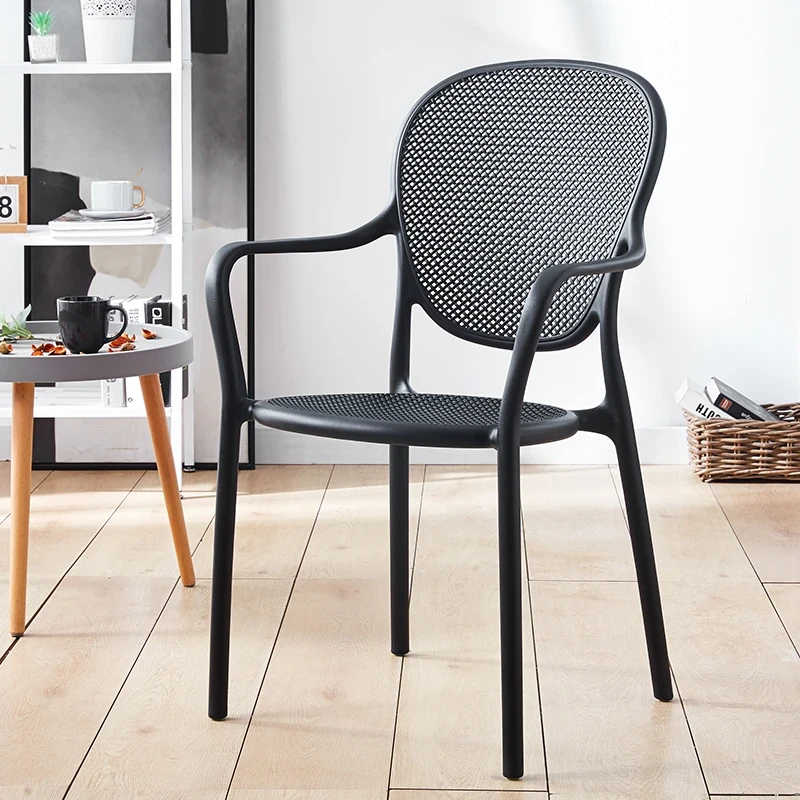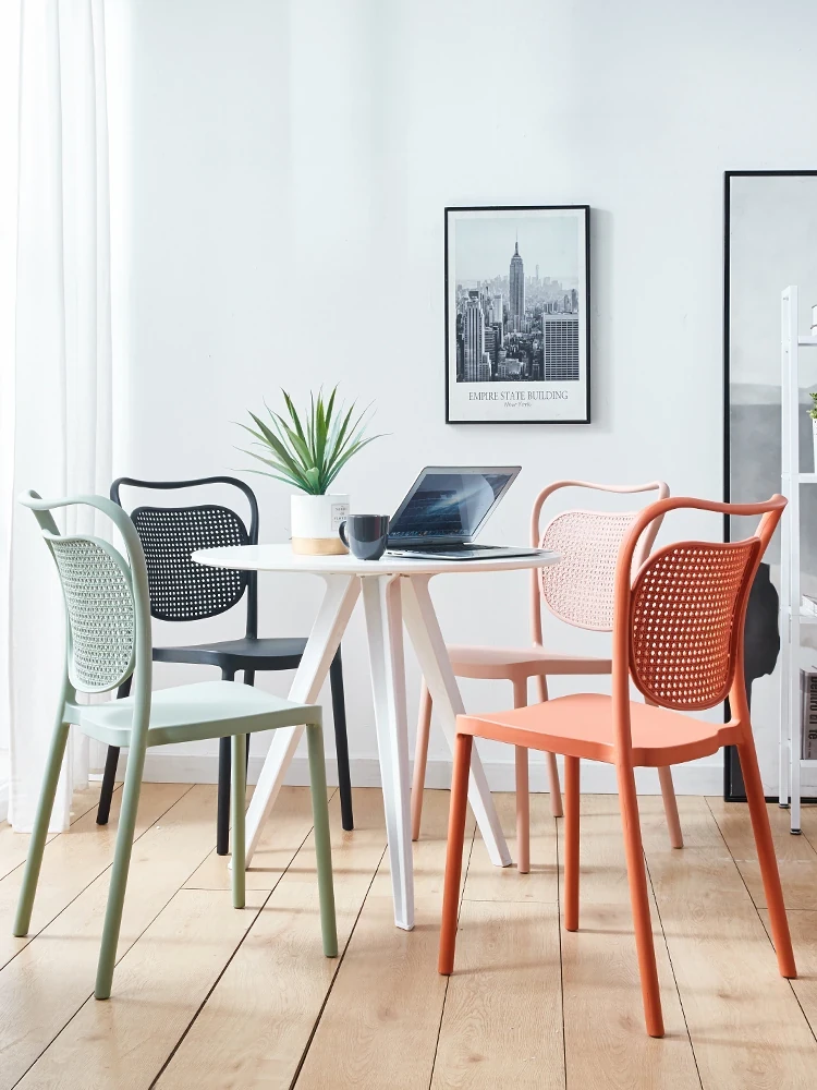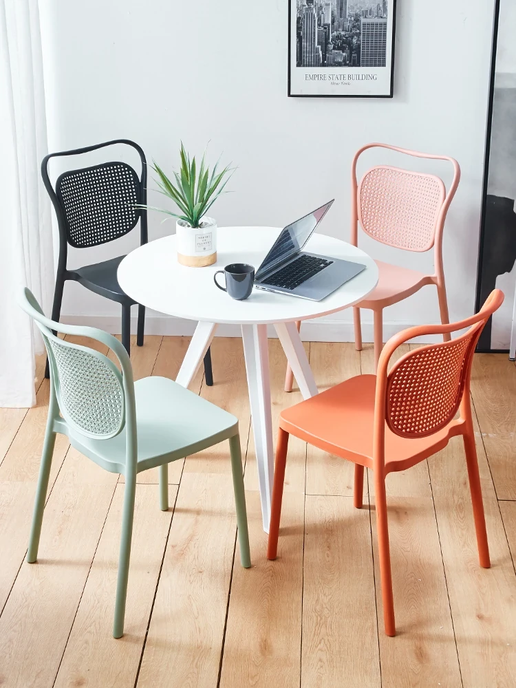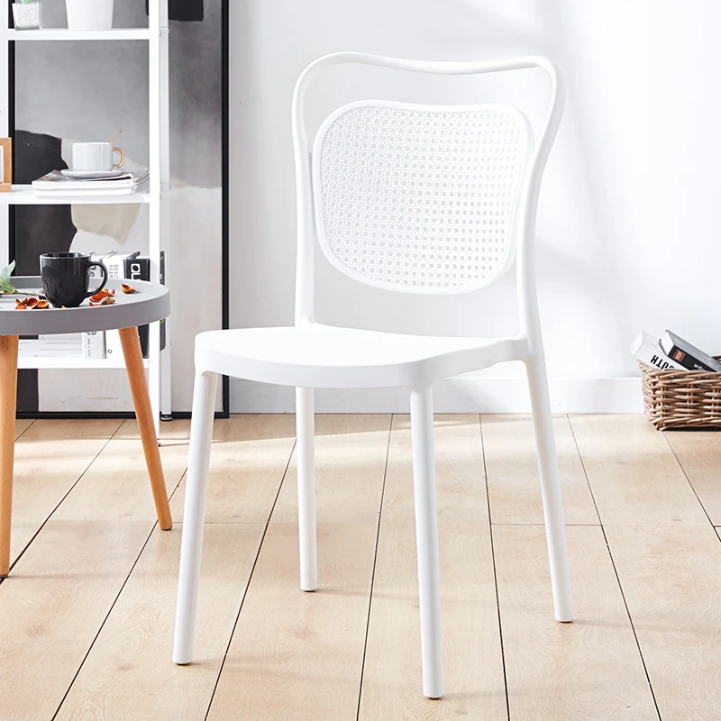 北欧風デザインの家庭用プラスチック製チェア、背もたれ付きのスタイリッシュな厚手シート!流行のレーザーカットデザインで、スタッキング可能なモダンな会議用チェア。シンプルでありながら機能的、あなたのスペースに最適な一脚です!