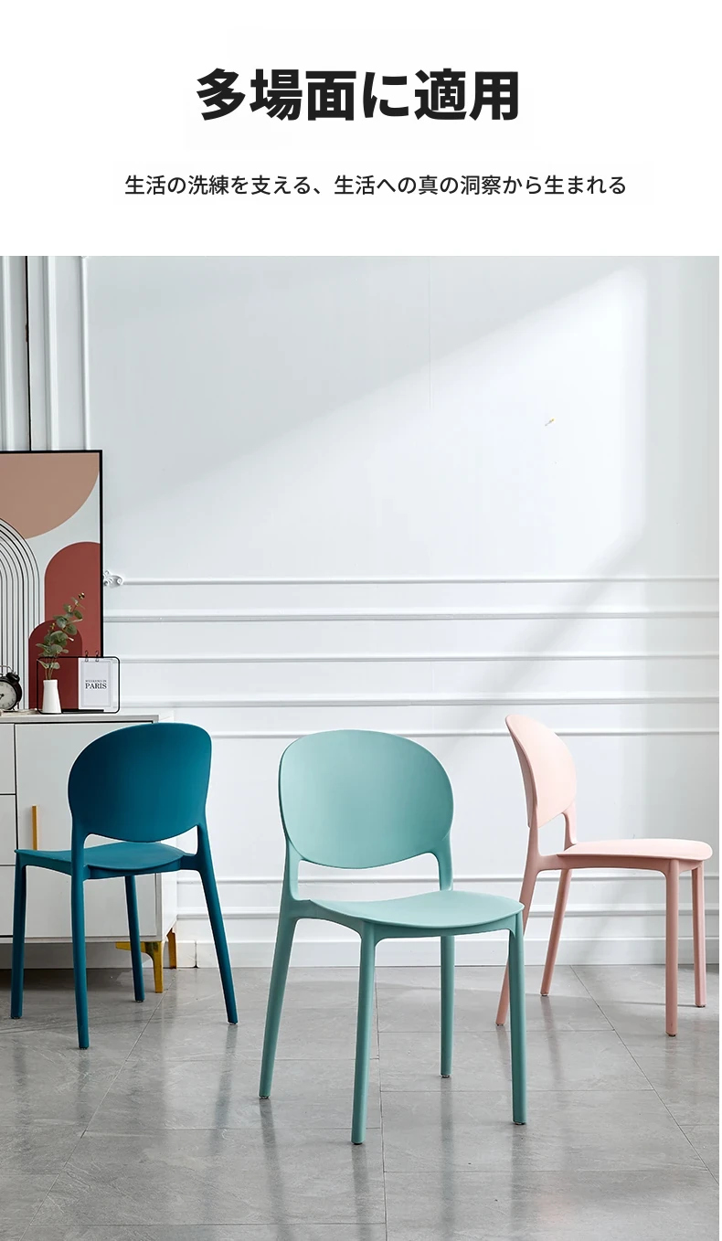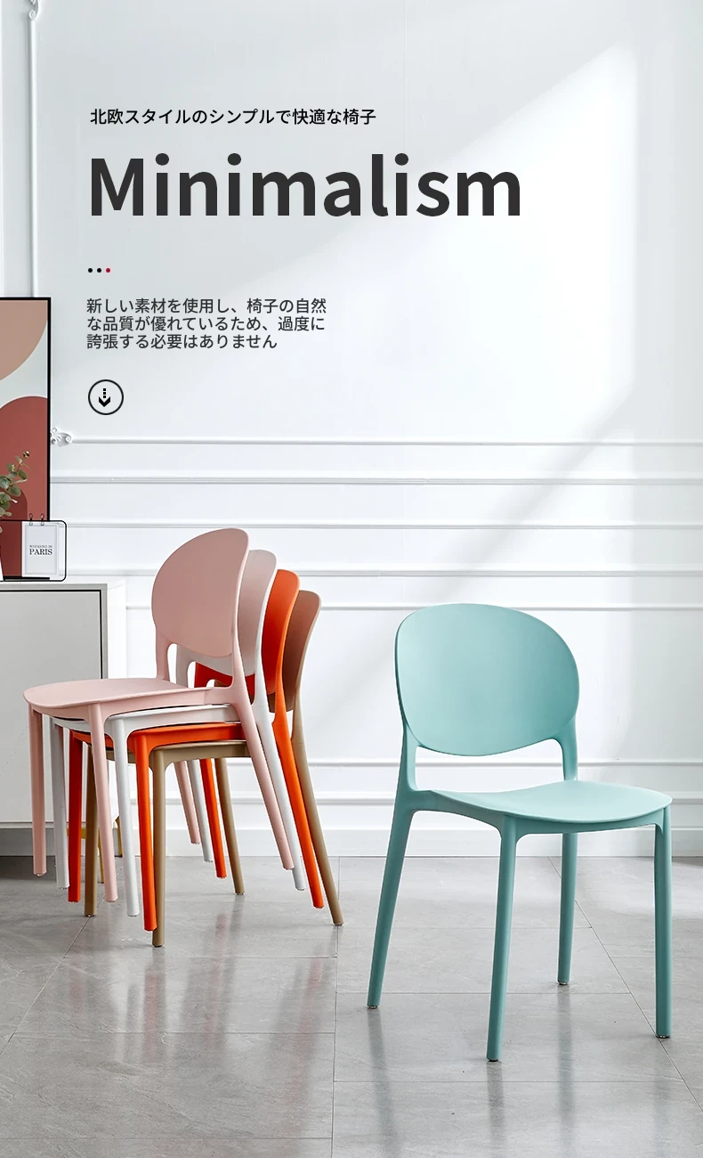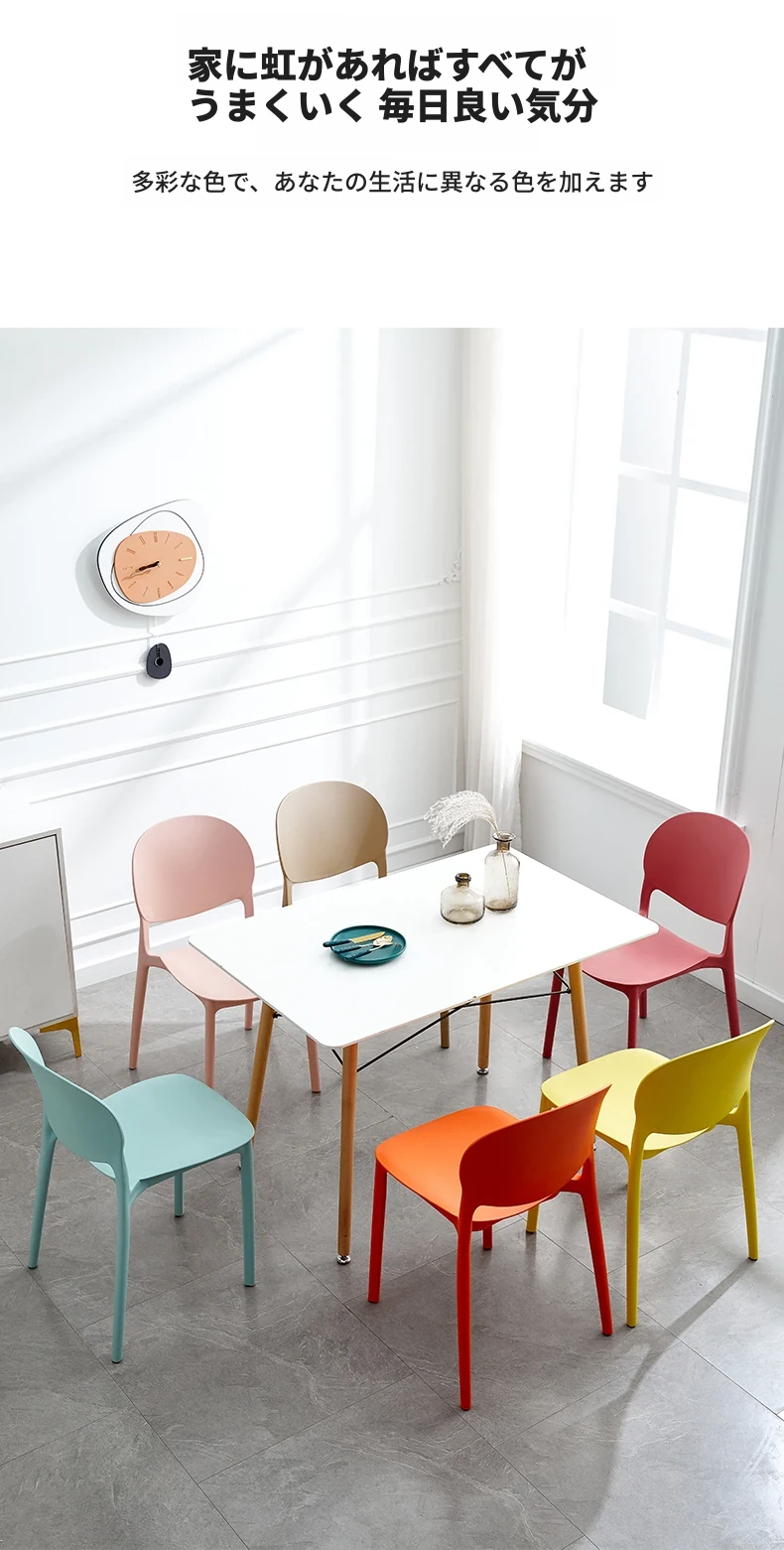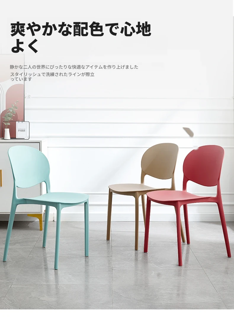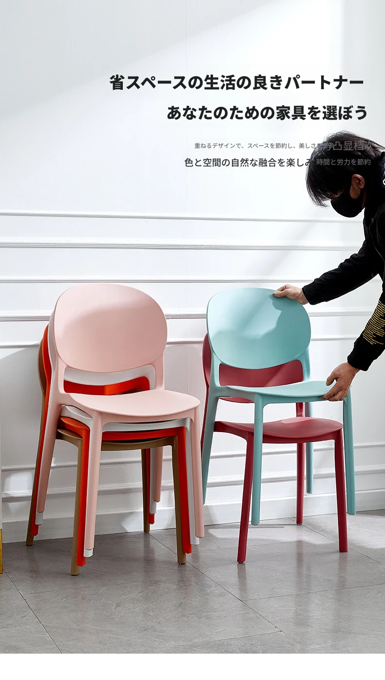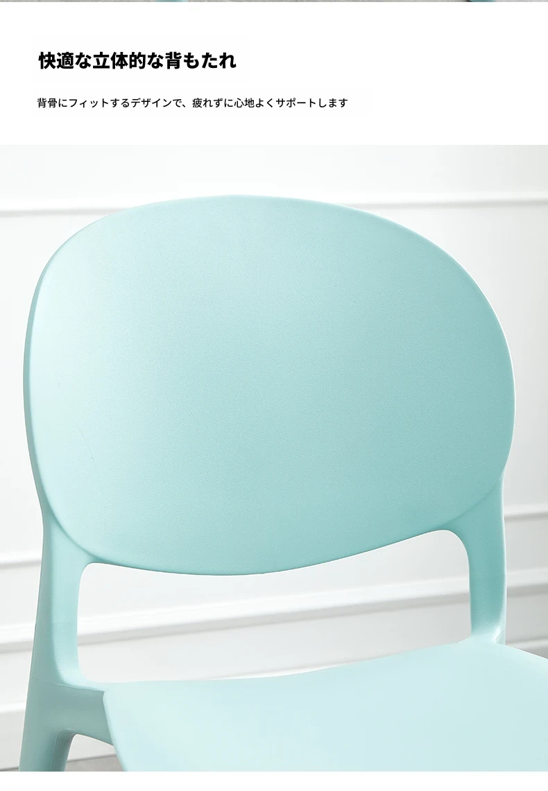 北欧スタイルの厚手プラスチック製ダイニングチェア - スタッキング可能で快適な背もたれ付き、大人向けのシンプルなデザイン、長時間座っても疲れない! おしゃれなリビングに最適な一品。