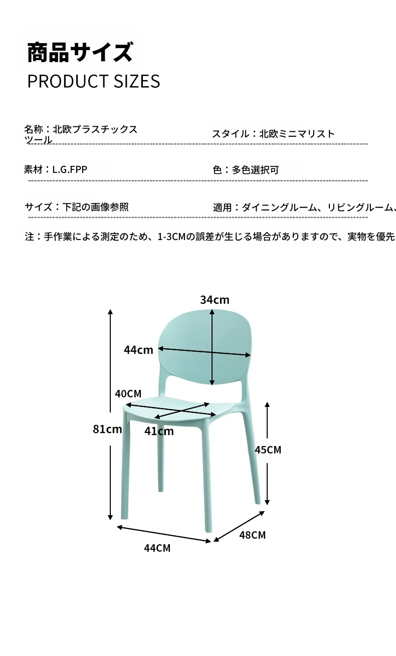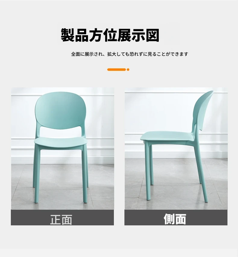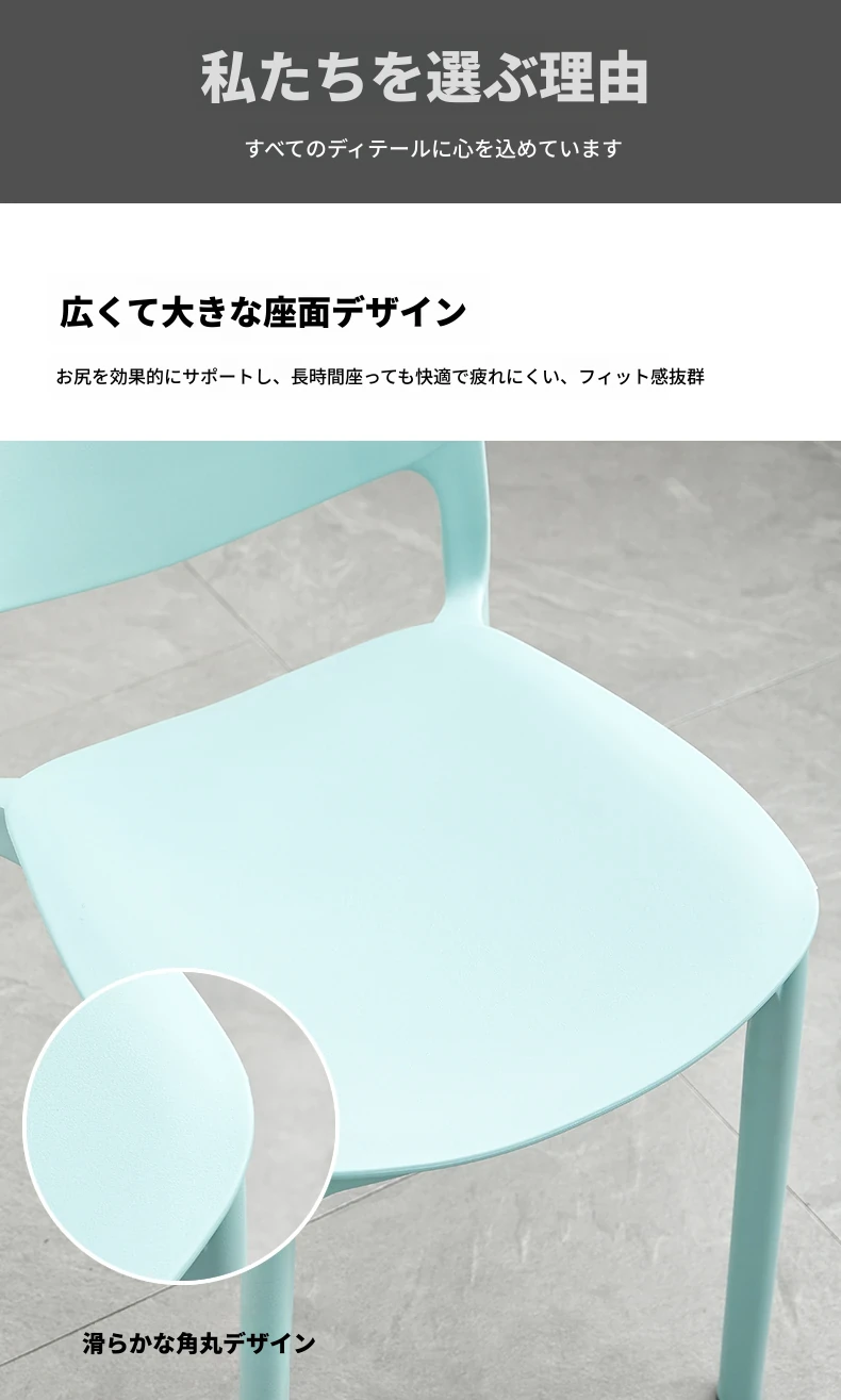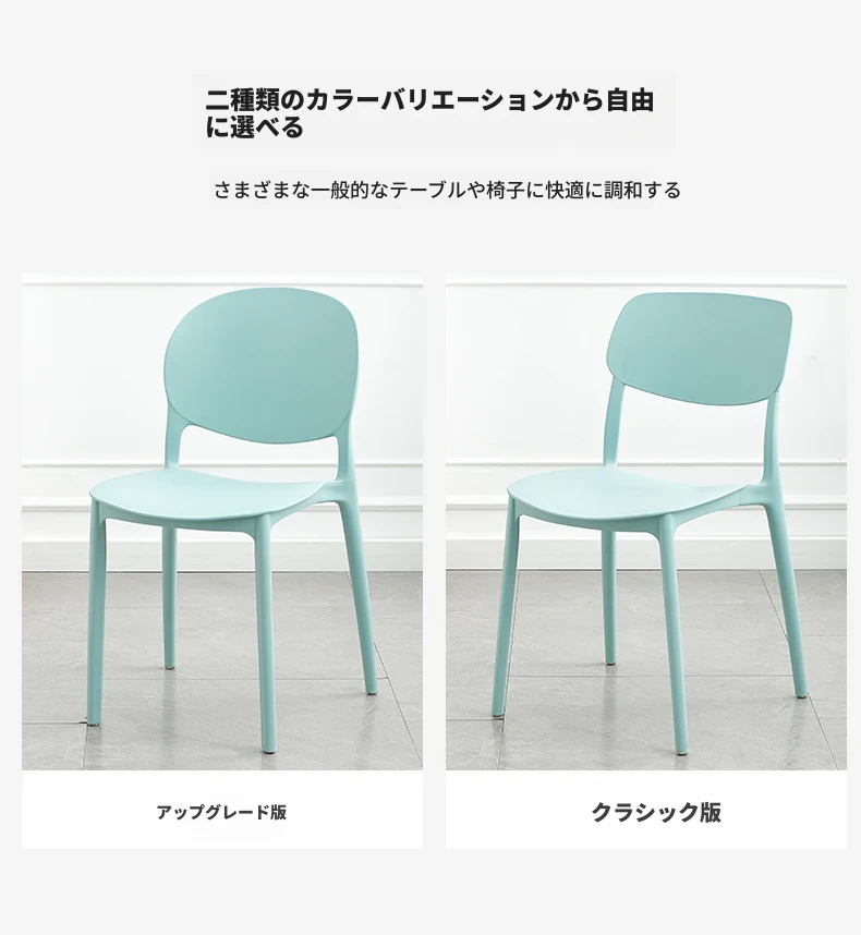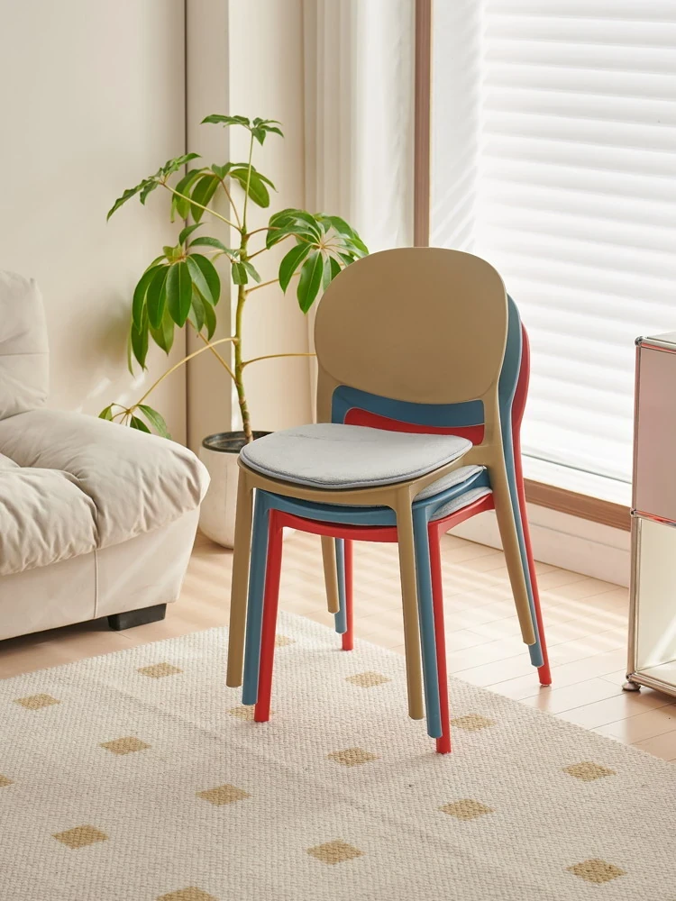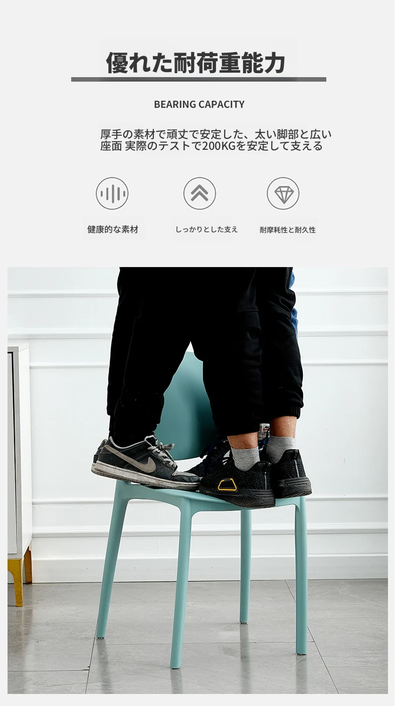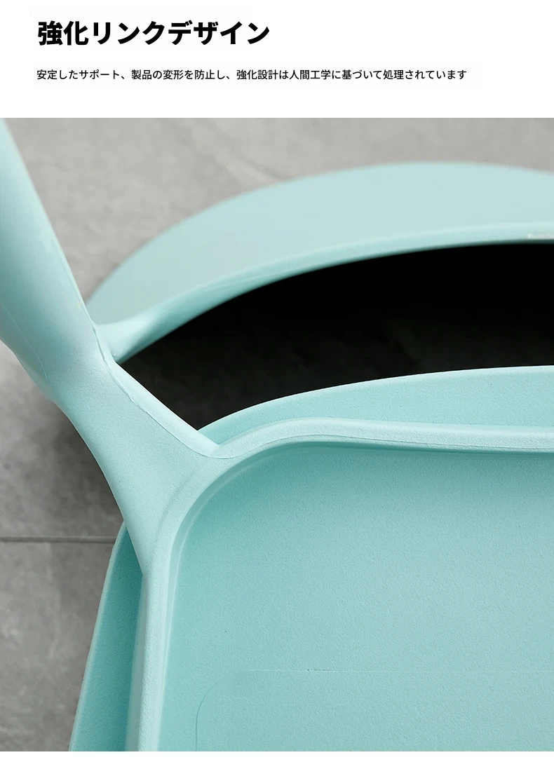 北欧スタイルの厚手プラスチック製ダイニングチェア - スタッキング可能で快適な背もたれ付き、大人向けのシンプルなデザイン、長時間座っても疲れない! おしゃれなリビングに最適な一品。