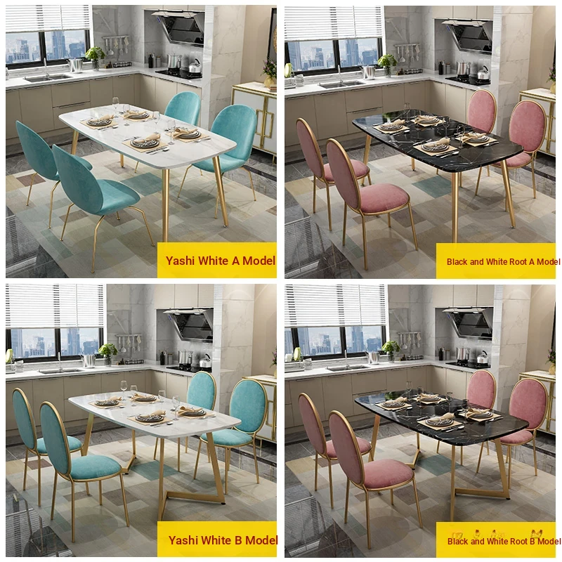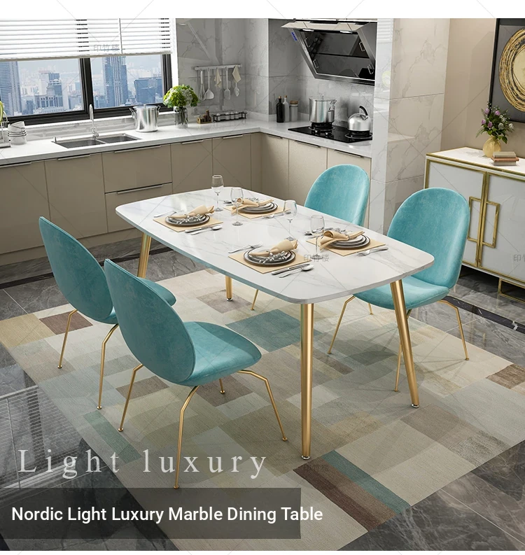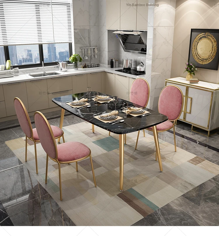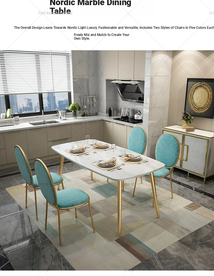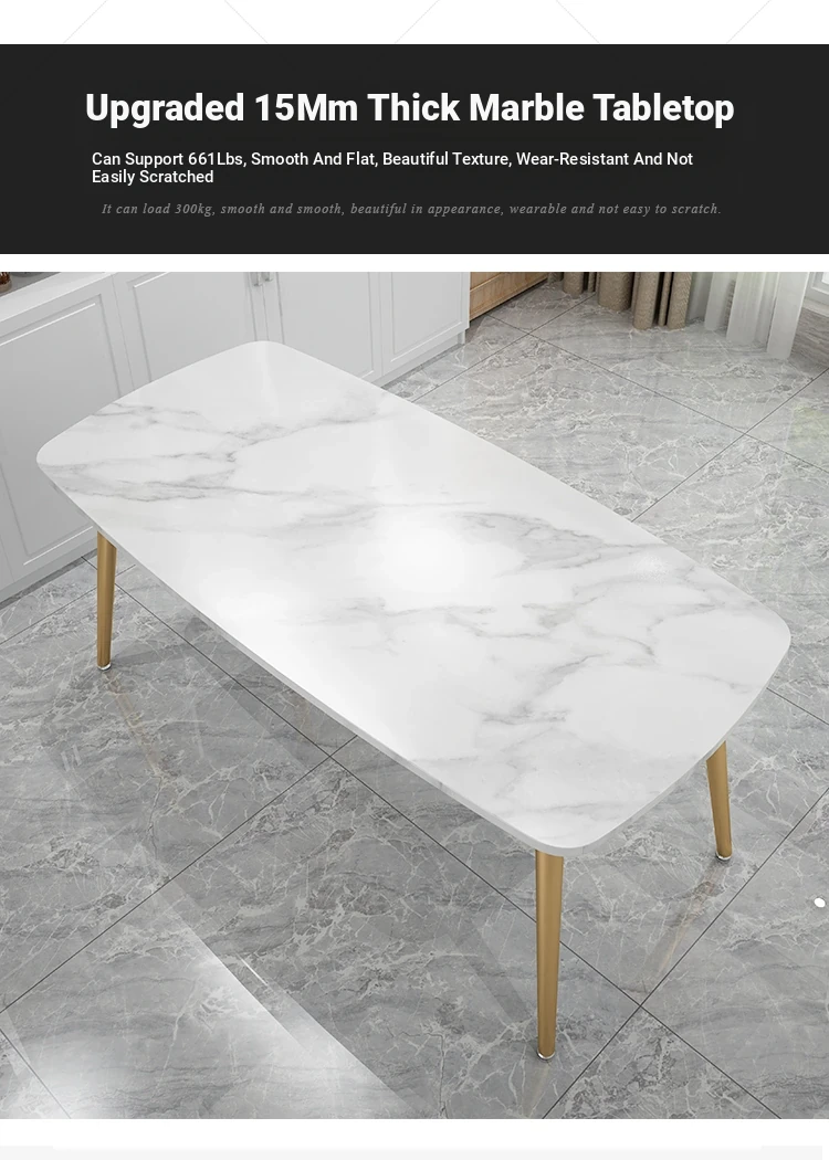 Nordic Style Iron Dining Table and Chair Set - Modern Minimalist Rectangular Marble Dining Table for Small Spaces, Perfect for Home Use