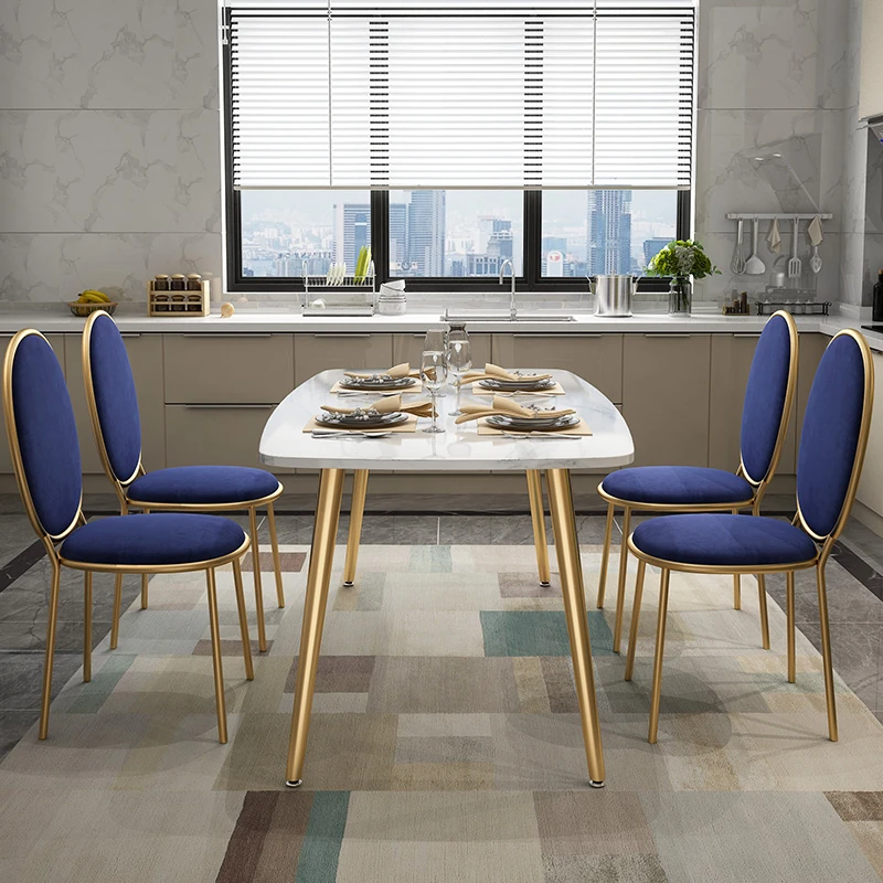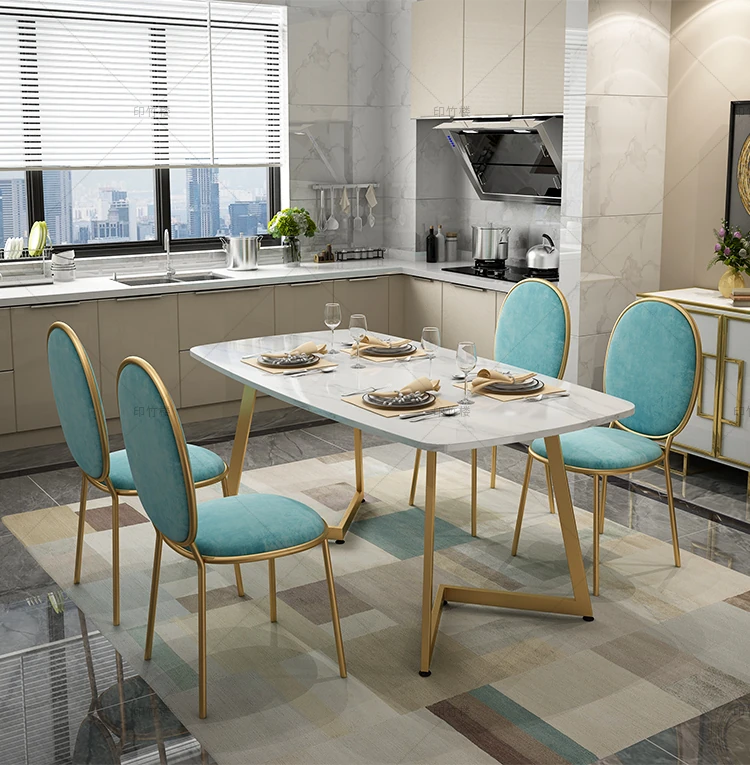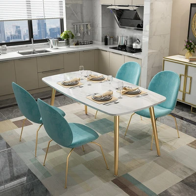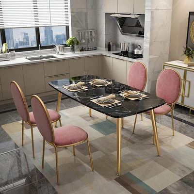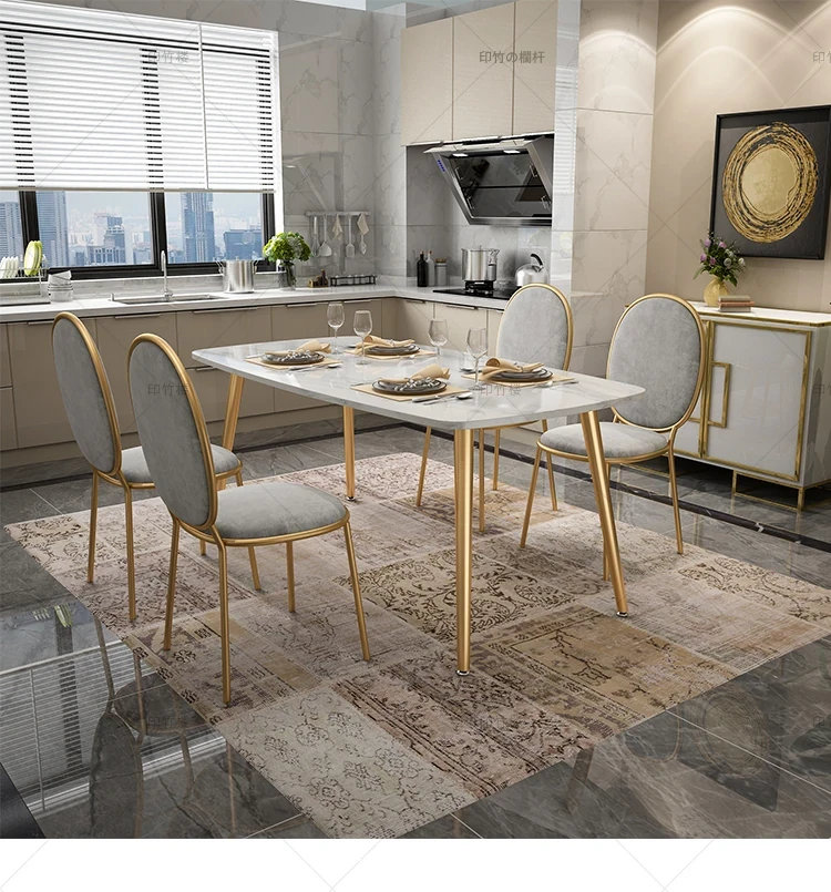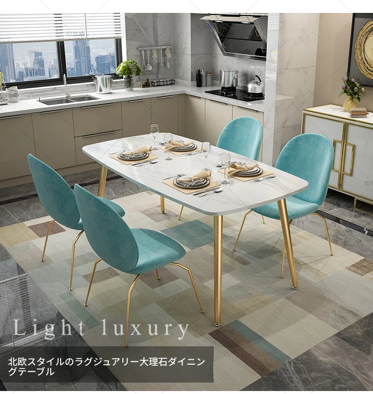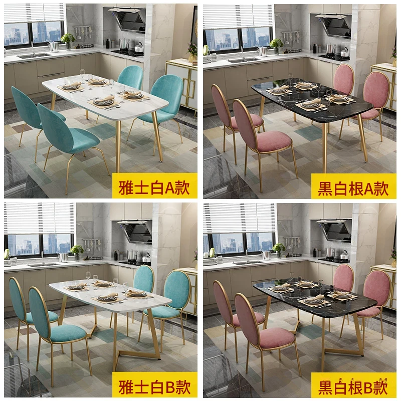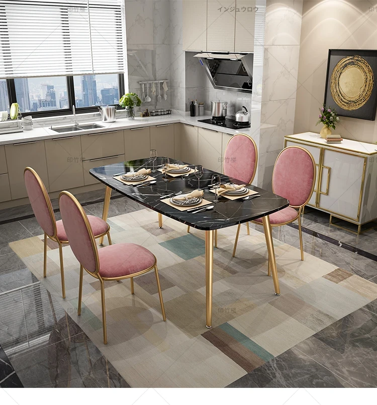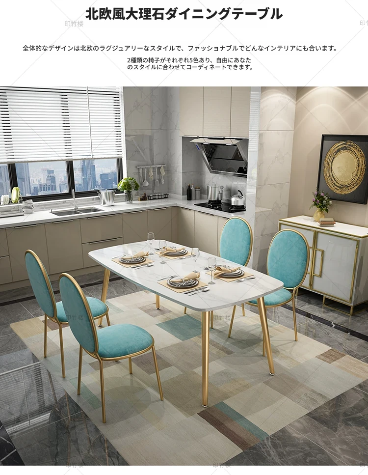 北欧スタイルのアイアン製ダイニングテーブルとチェアセット - 現代的でシンプルなデザイン、小スペースに最適な長方形の大理石製テーブル、家庭用の快適な食事体験を提供します。
