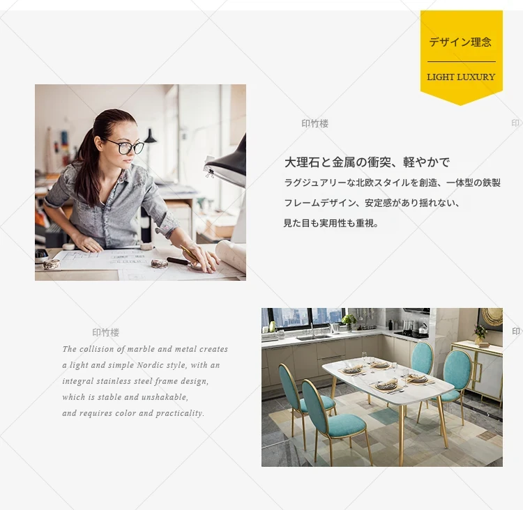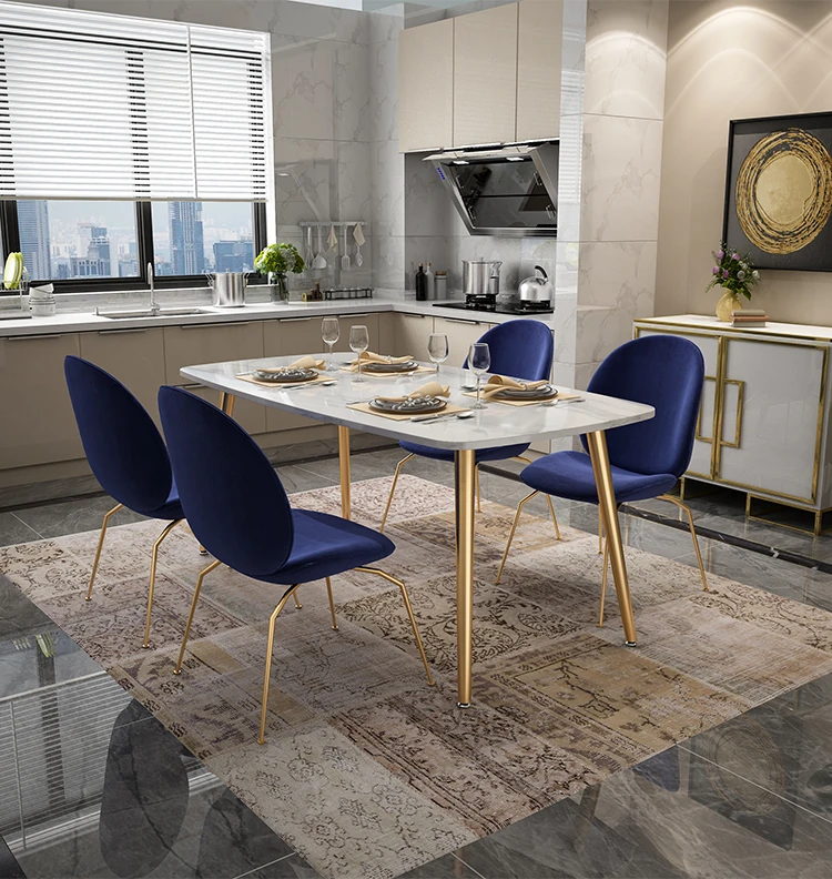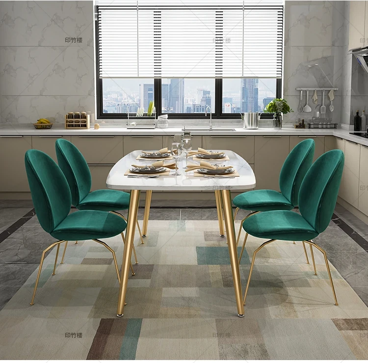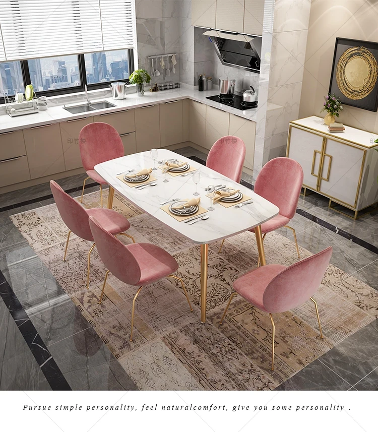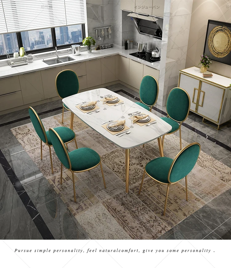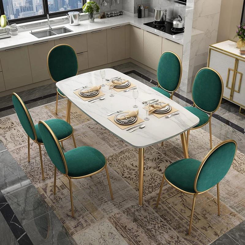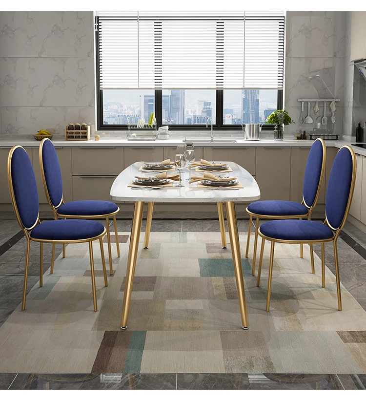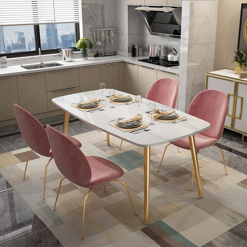 北欧スタイルのアイアン製ダイニングテーブルとチェアセット - 現代的でシンプルなデザイン、小スペースに最適な長方形の大理石製テーブル、家庭用の快適な食事体験を提供します。