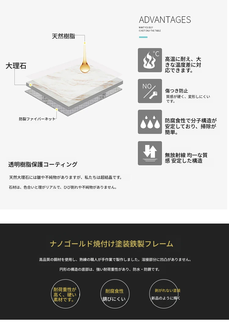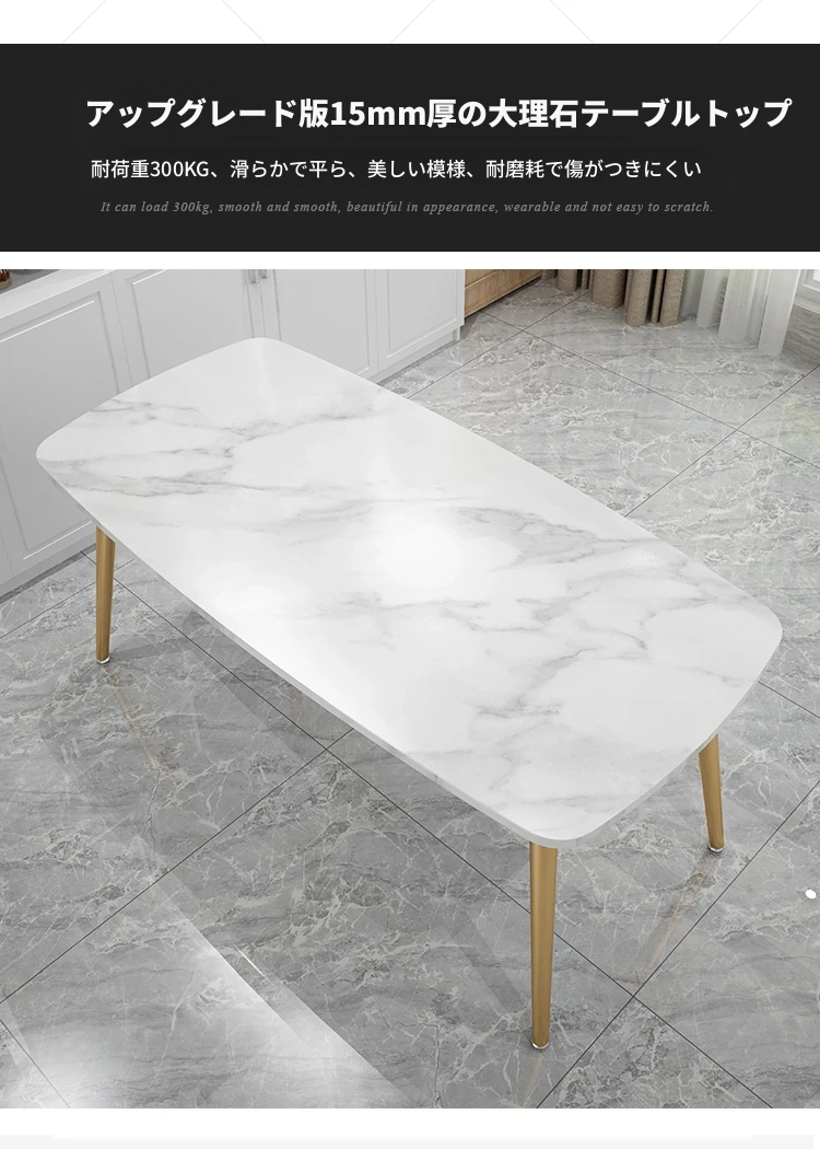 雅士ホワイト大理石ダイニングテーブル180*80*75