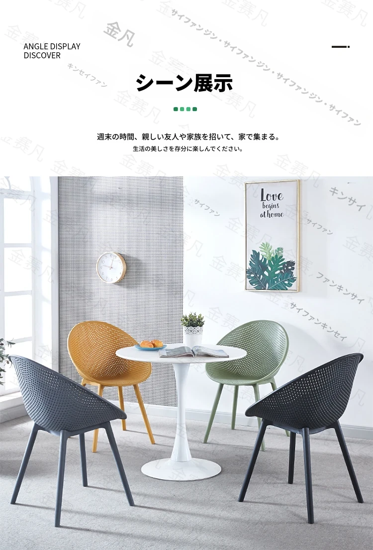 北欧風モダンデザインの家庭用ダイニングチェア - シンプルでスタイリッシュ、オフィスやリラックスした会話にも最適!厚手プラスチック製で耐久性抜群、レストランやリビングルームの接待にもぴったりです。