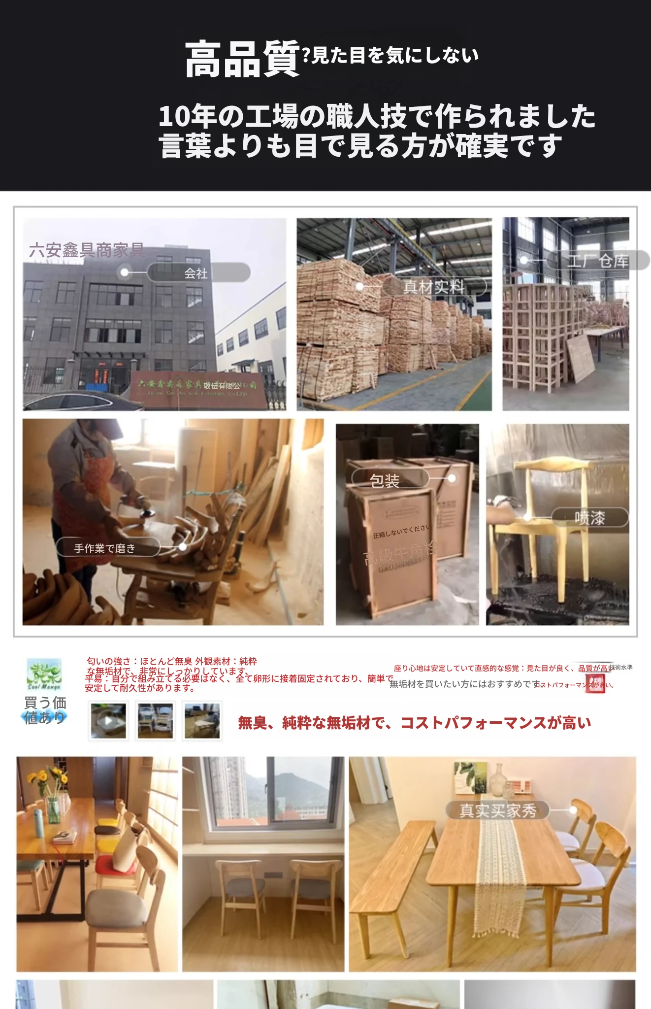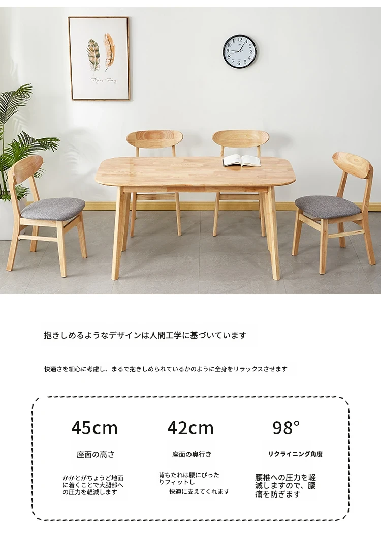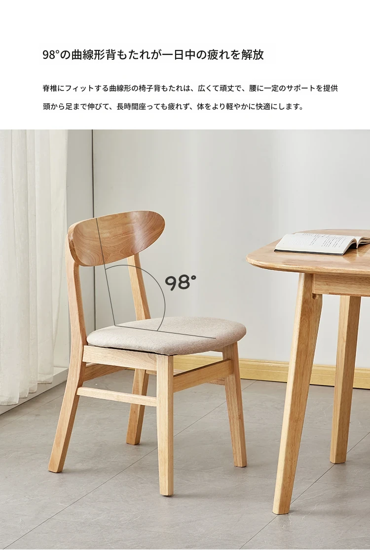 北欧デザインの無垢材ダイニングチェア - シンプルでモダンな軽奢感が魅力!リラックスできる背もたれ付き、快適な座り心地で、ダイニングルームをおしゃれに演出します。原木テーブルと完璧にマッチ!