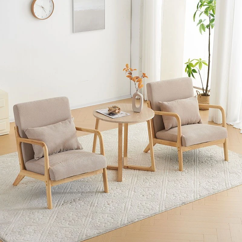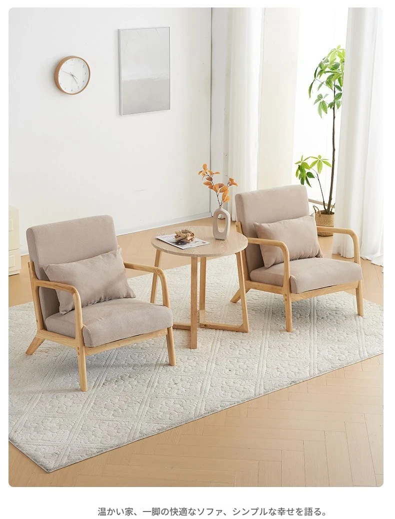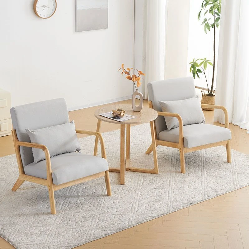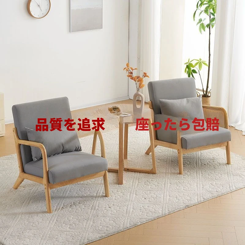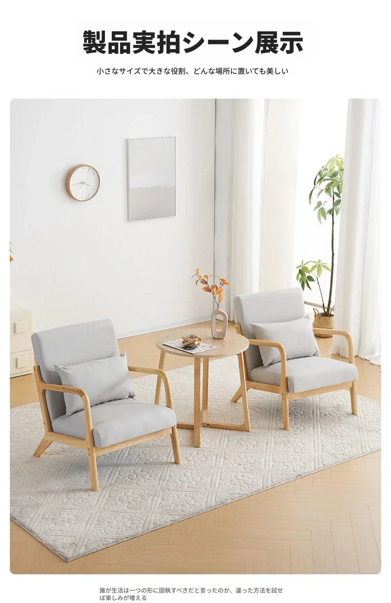 2脚1テーブル/【淡灰色のコットンリネン】クッション付き
