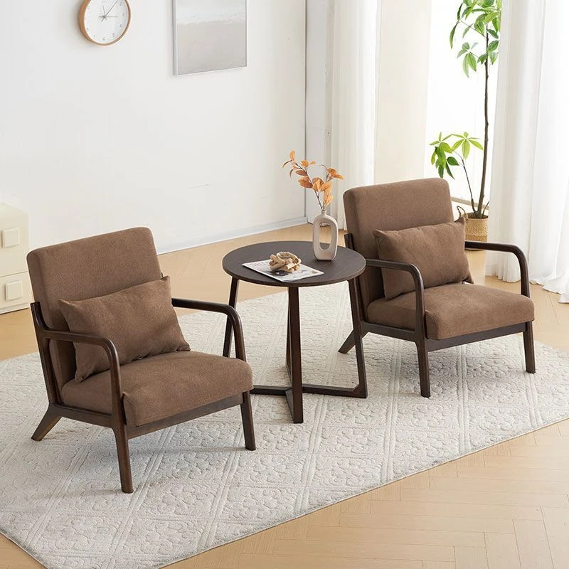 2脚1テーブル/【ダークブラウンのコットンリネン】クッション付き
