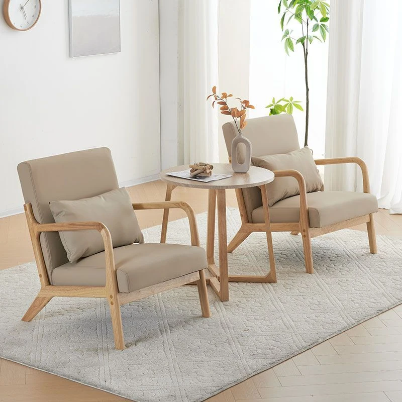 2脚1テーブル/【無垢の木製テーブル】クッション付き