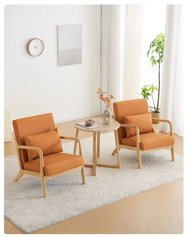 2脚1テーブル/【オレンジのPU皮】クッション付き