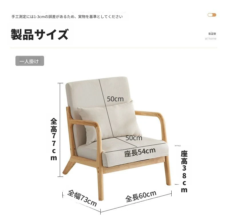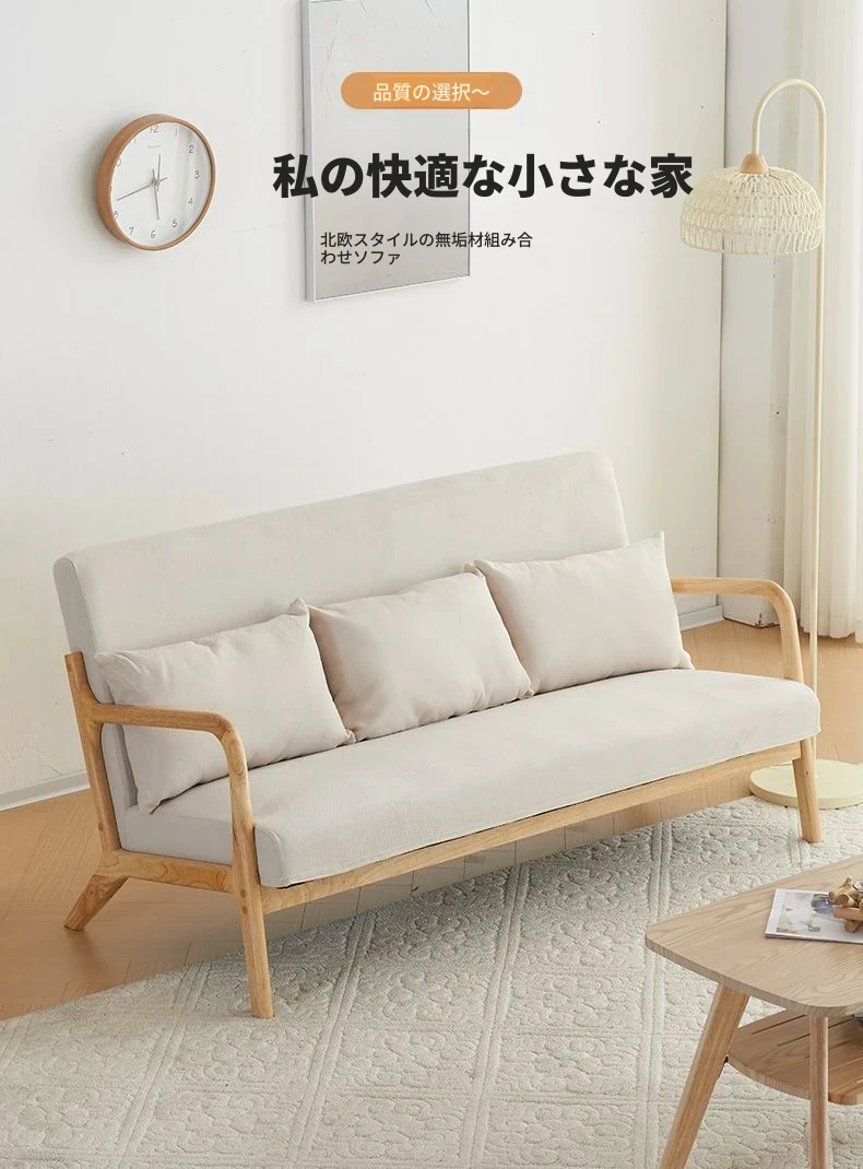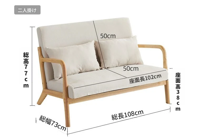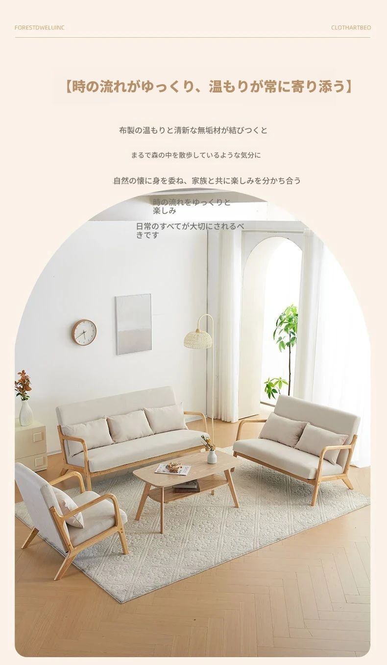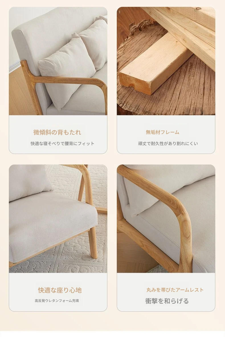 2脚1テーブル/【アイボリーのコットンリネン】クッション付き