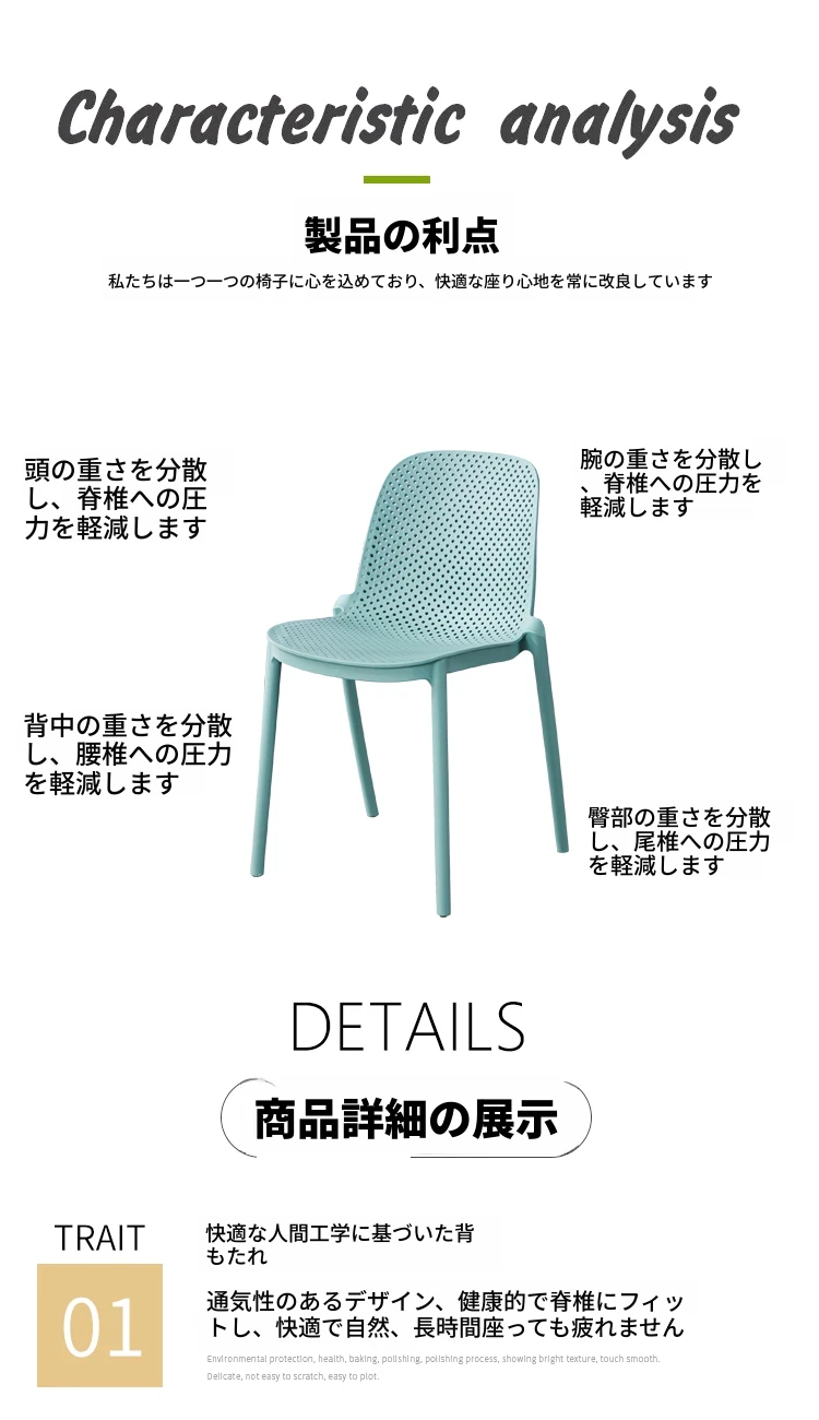 北欧スタイルの厚手プラスチック製背もたれチェア|人気のオフィスチェア・デスクチェア|大人向けの快適なダイニングチェア|シンプルで使いやすい家庭用家具