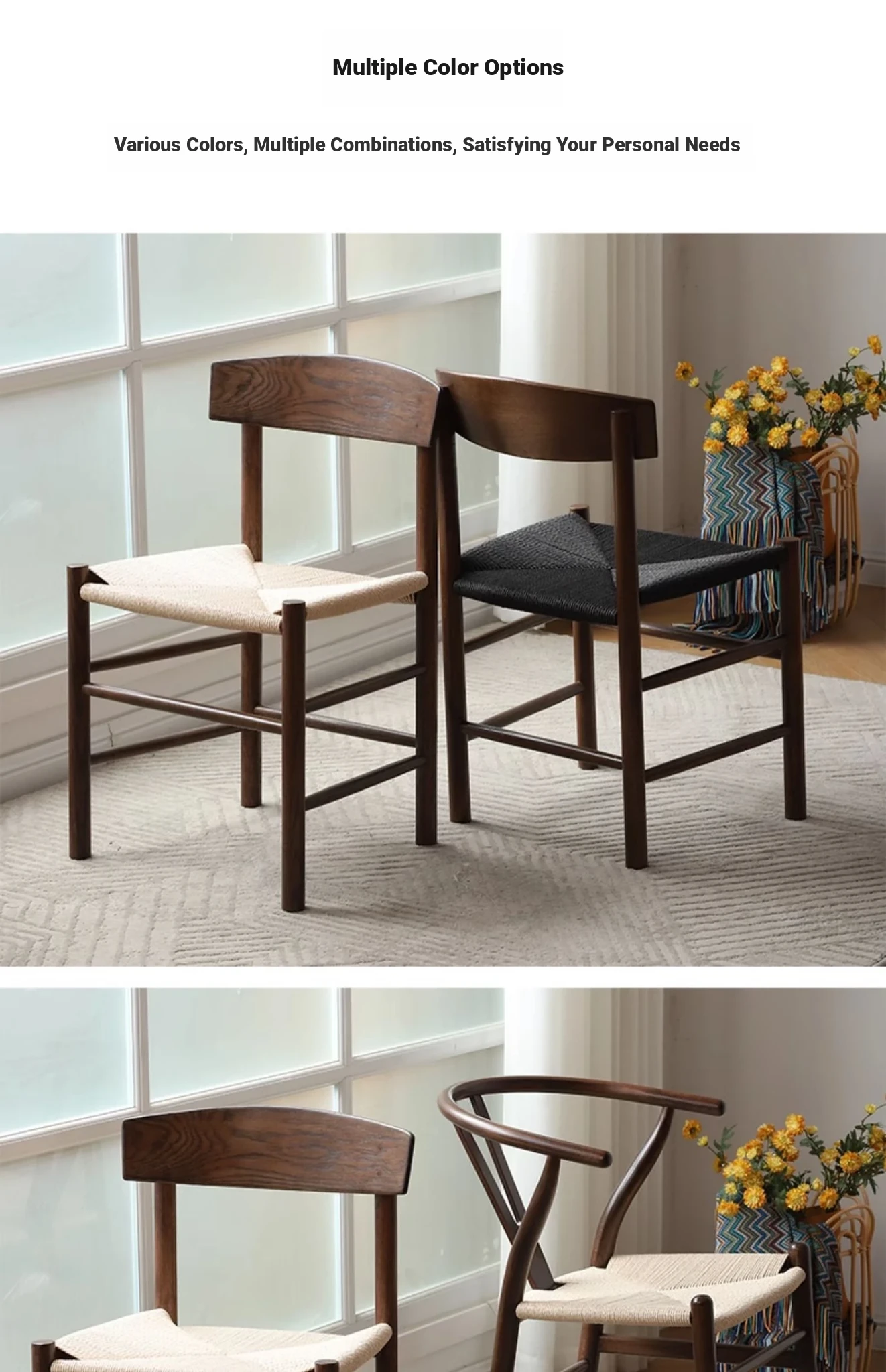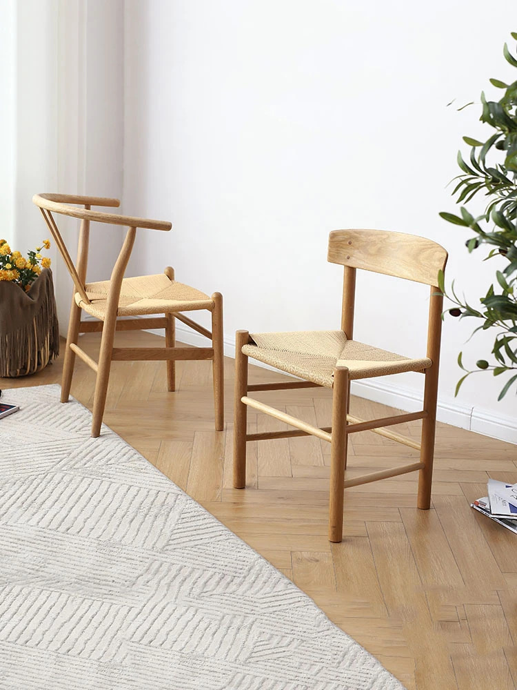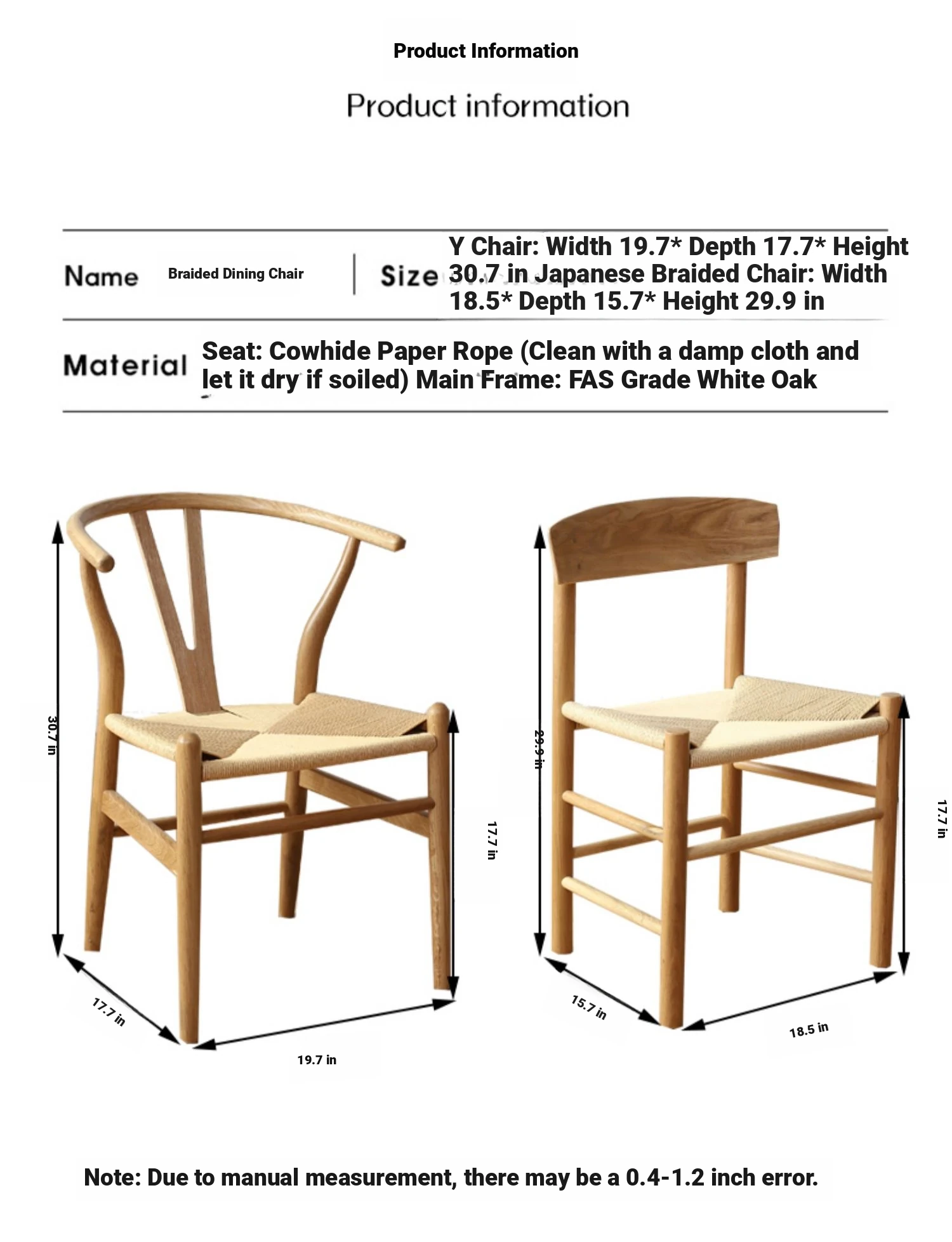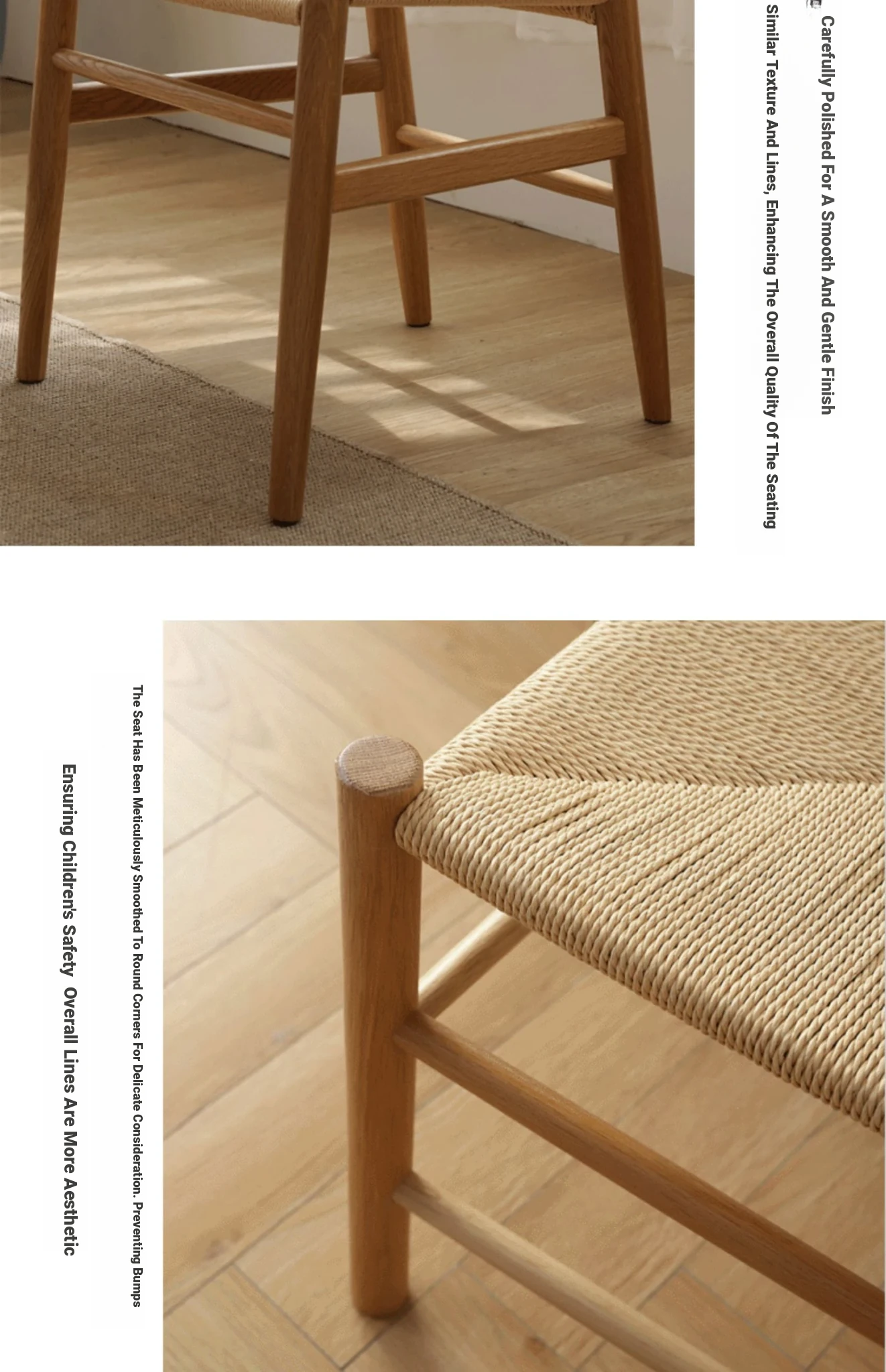 Nordic White Oak Solid Wood Dining Chair - Vintage Retro Lounge Chair with Backrest, Chinese Style Woven Circle Chair, Japanese Leather and Hemp Rope Seat - Perfect for Tea Houses and Cozy Spaces