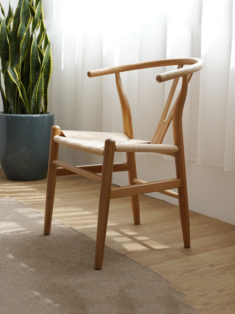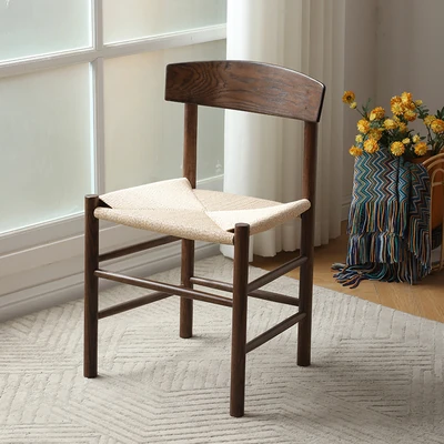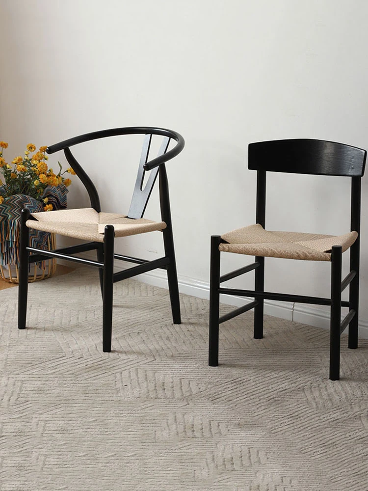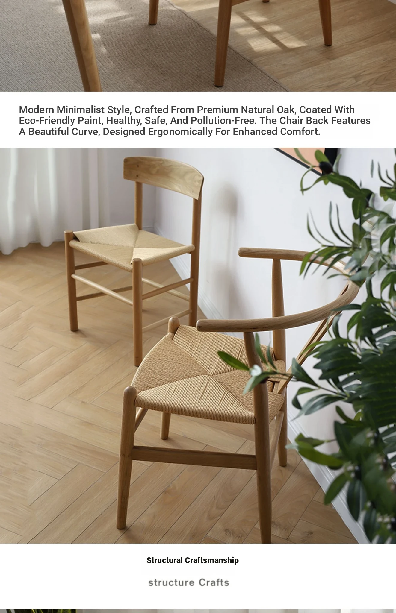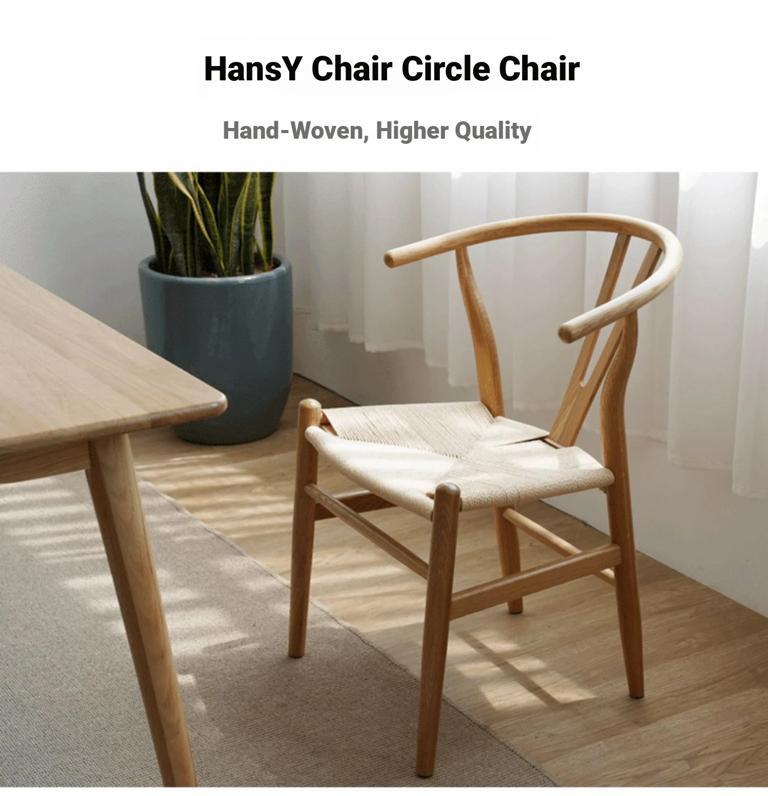 Nordic White Oak Solid Wood Dining Chair - Vintage Retro Lounge Chair with Backrest, Chinese Style Woven Circle Chair, Japanese Leather and Hemp Rope Seat - Perfect for Tea Houses and Cozy Spaces