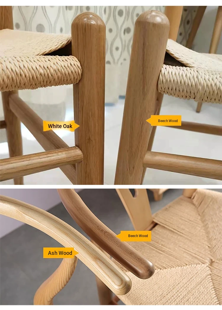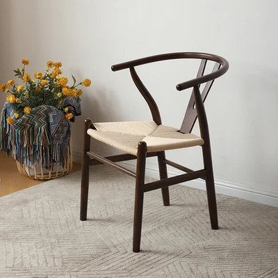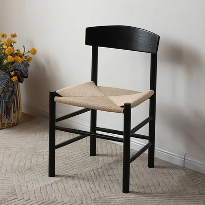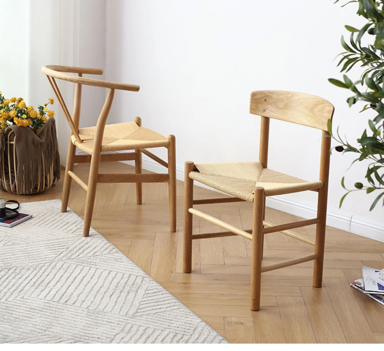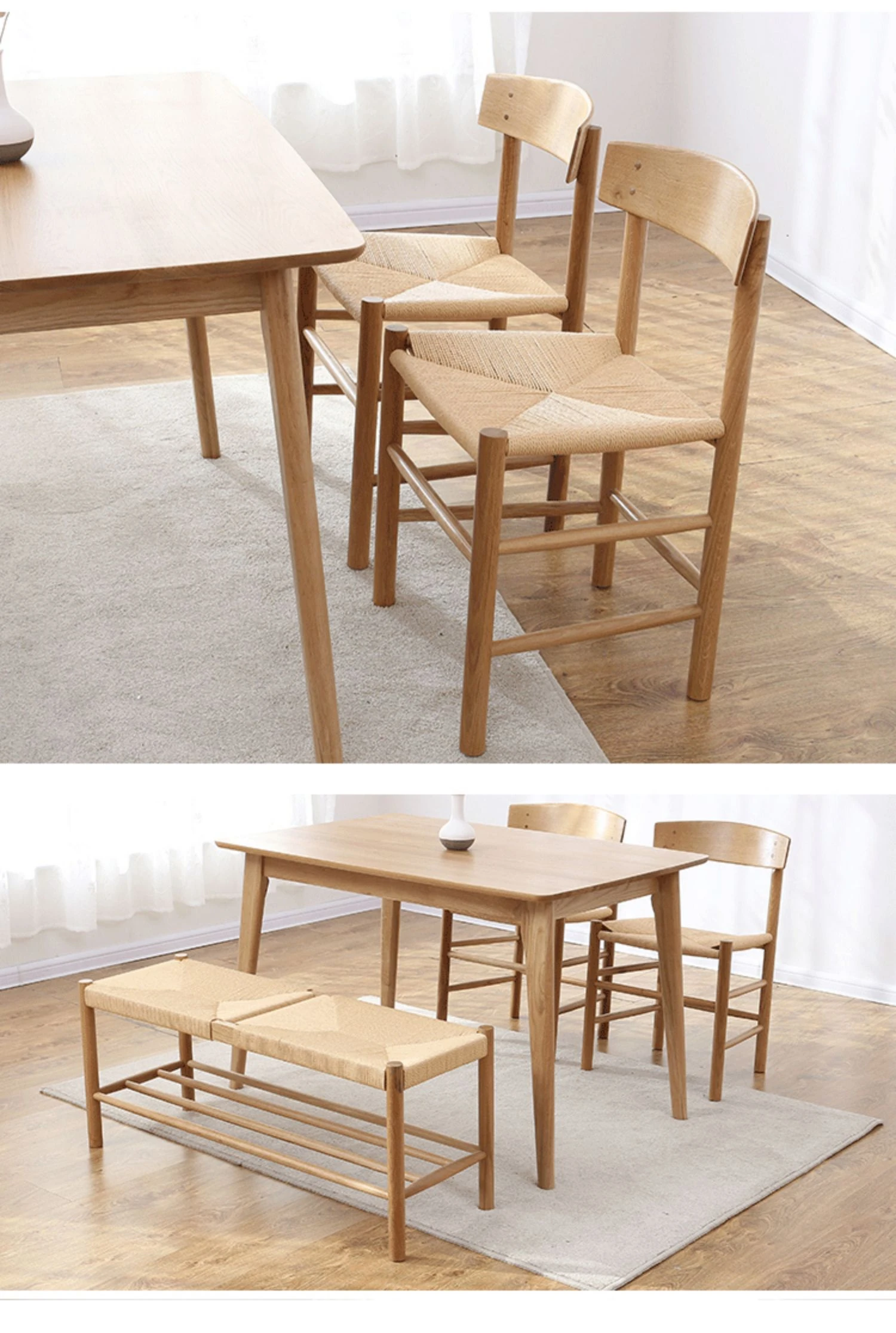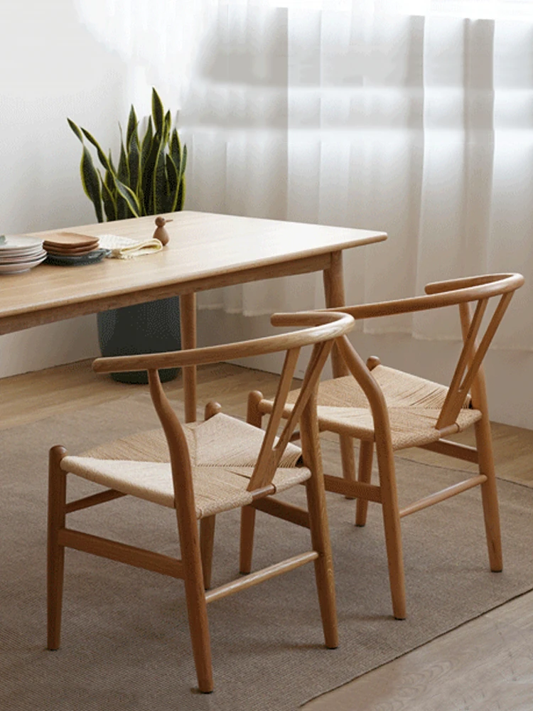 Nordic White Oak Solid Wood Dining Chair - Vintage Retro Lounge Chair with Backrest, Chinese Style Woven Circle Chair, Japanese Leather and Hemp Rope Seat - Perfect for Tea Houses and Cozy Spaces