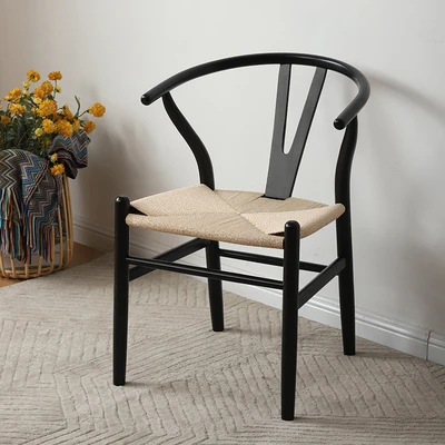 Japanese Round Chair (Black) White Rubber Pure Wood