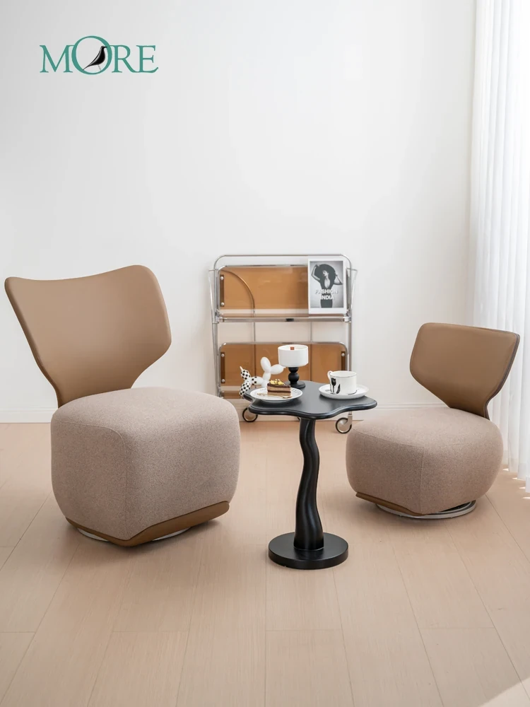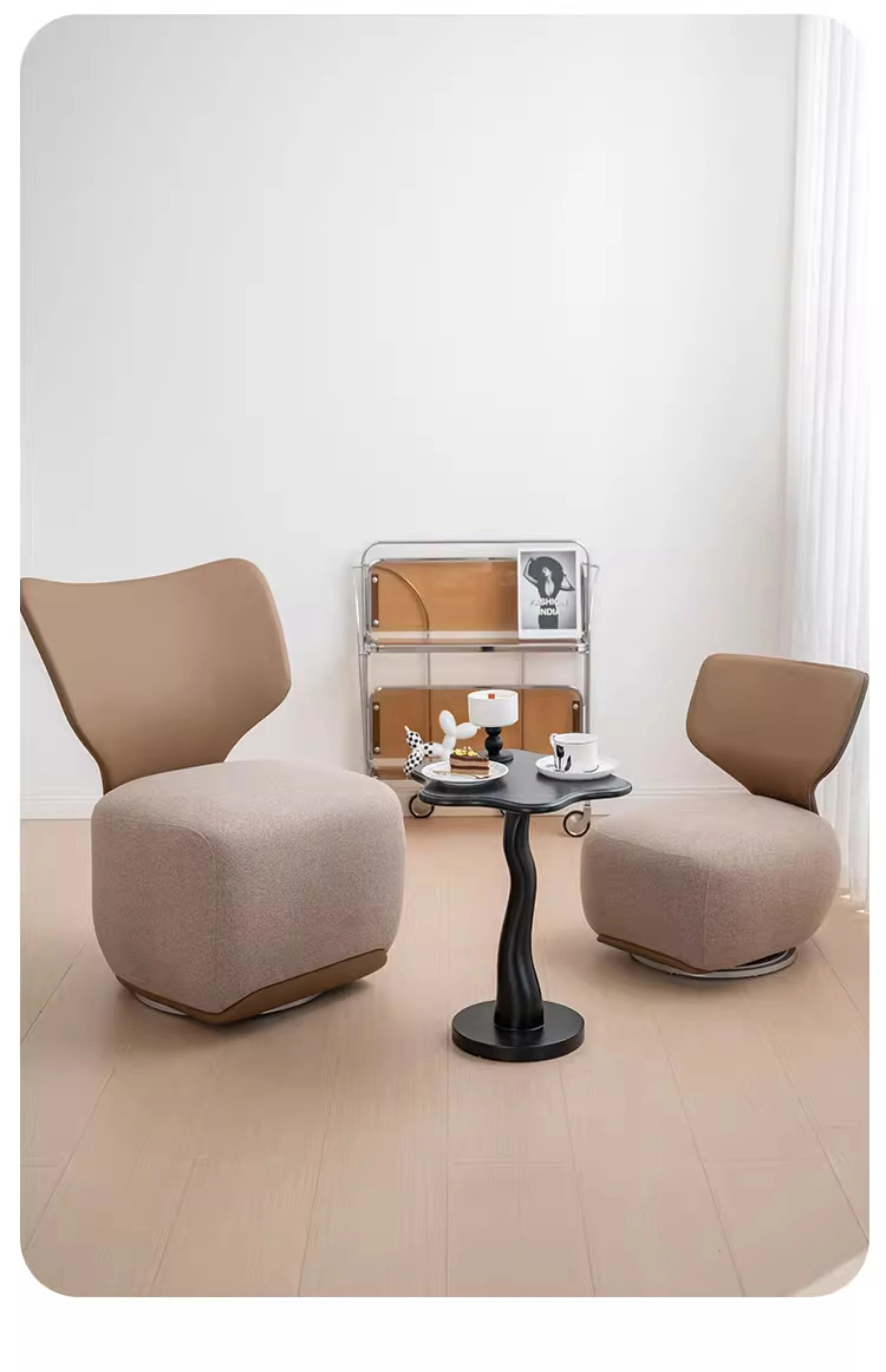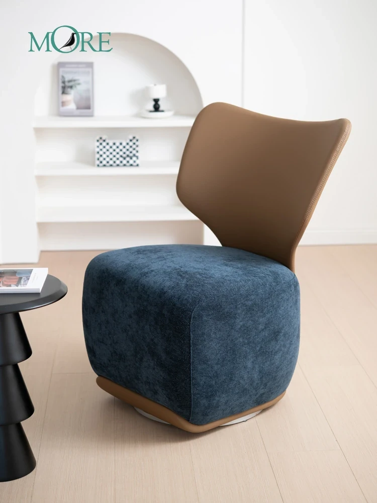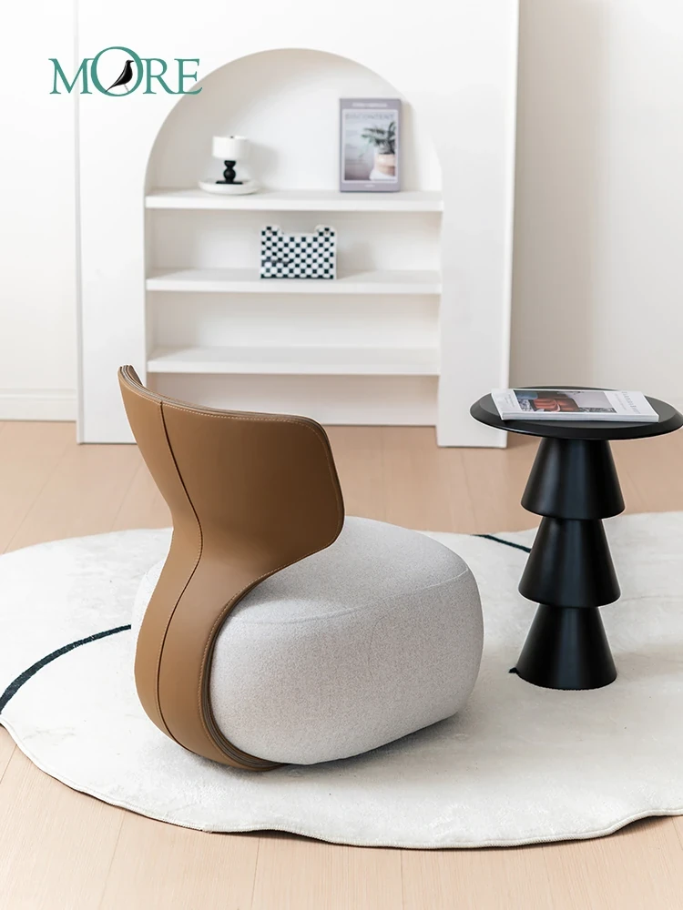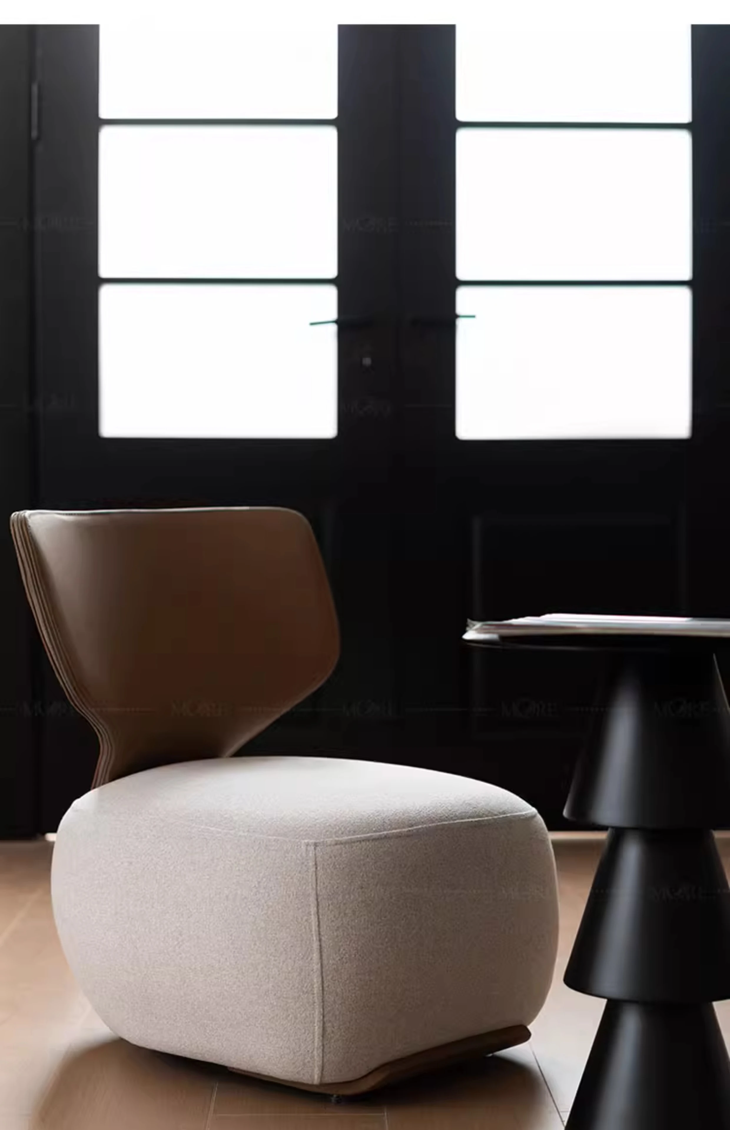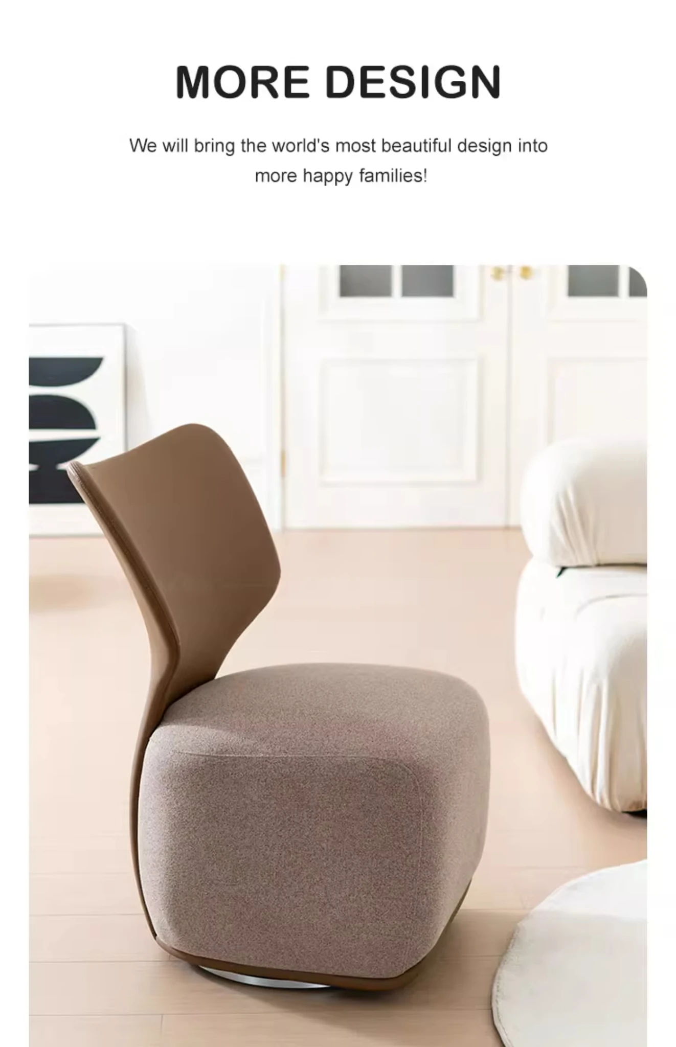 北欧デザインの一人掛けソファチェア - リビングにぴったりな軽やかでラグジュアリーな高級感、小型住宅にも最適な布製リラックスチェアで、背もたれ付きの快適なひとときをお楽しみください。