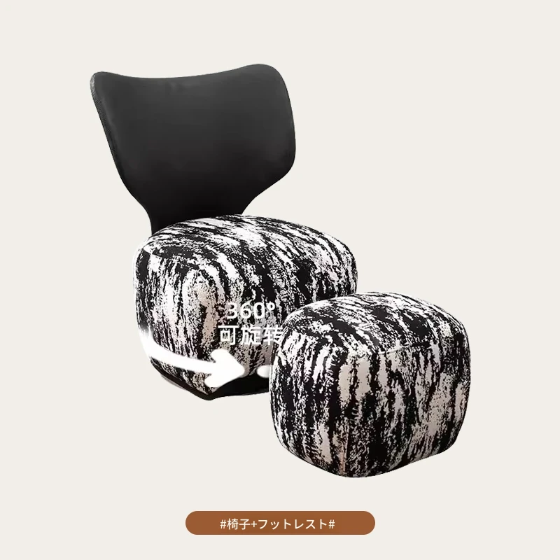 椅子+フットスツール ブラック(墨色の細いミンクファブリック)