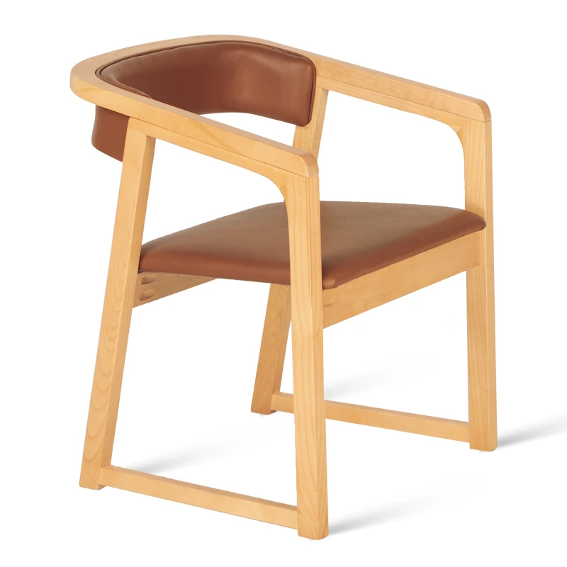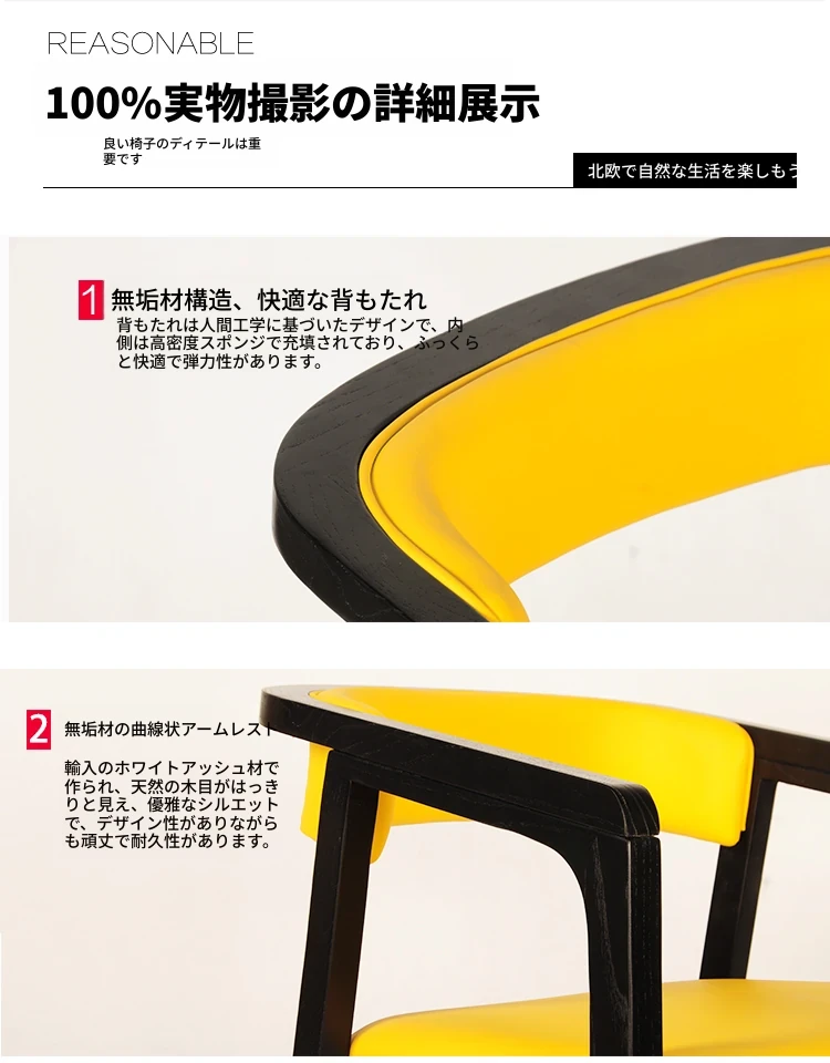 北欧スタイルの無垢材ダイニングチェア|モダンでシンプルなデザイン|ホテルやレストラン、サロンに最適|肘掛け付きで快適な座り心地|新中式の軽奢華な雰囲気を演出する椅子