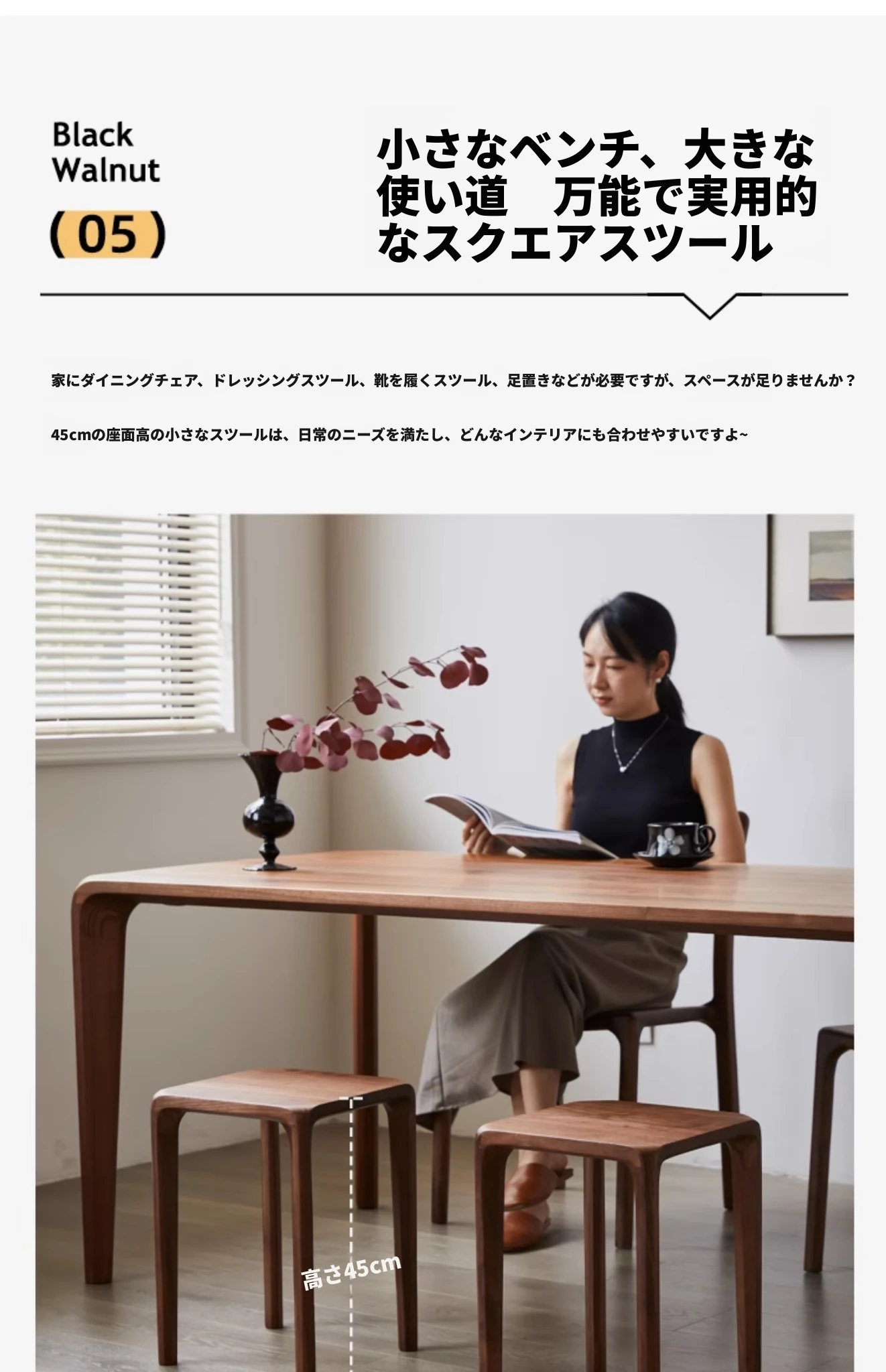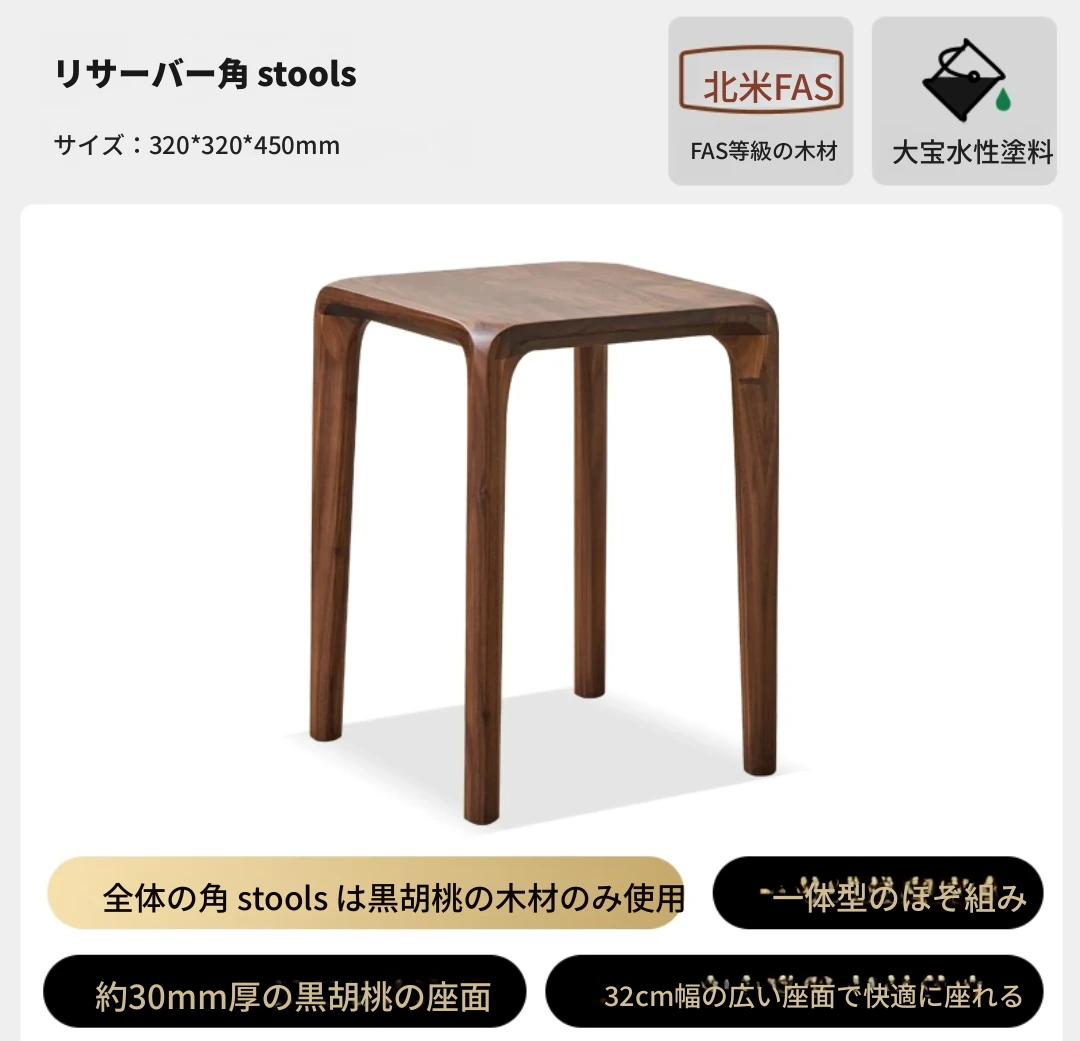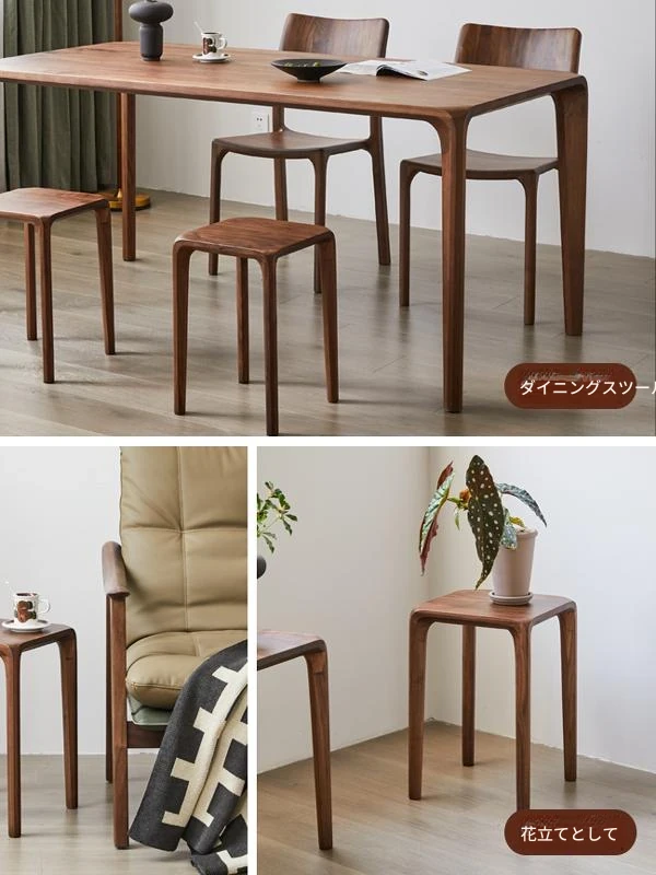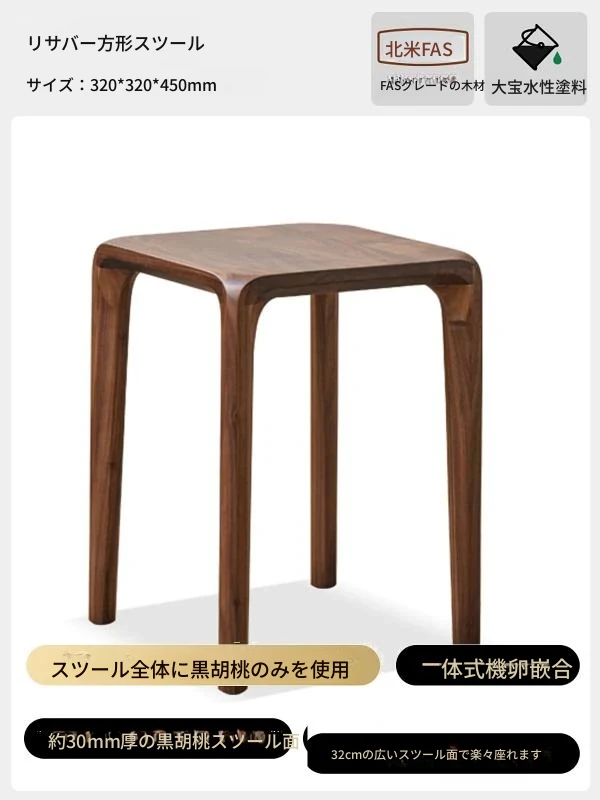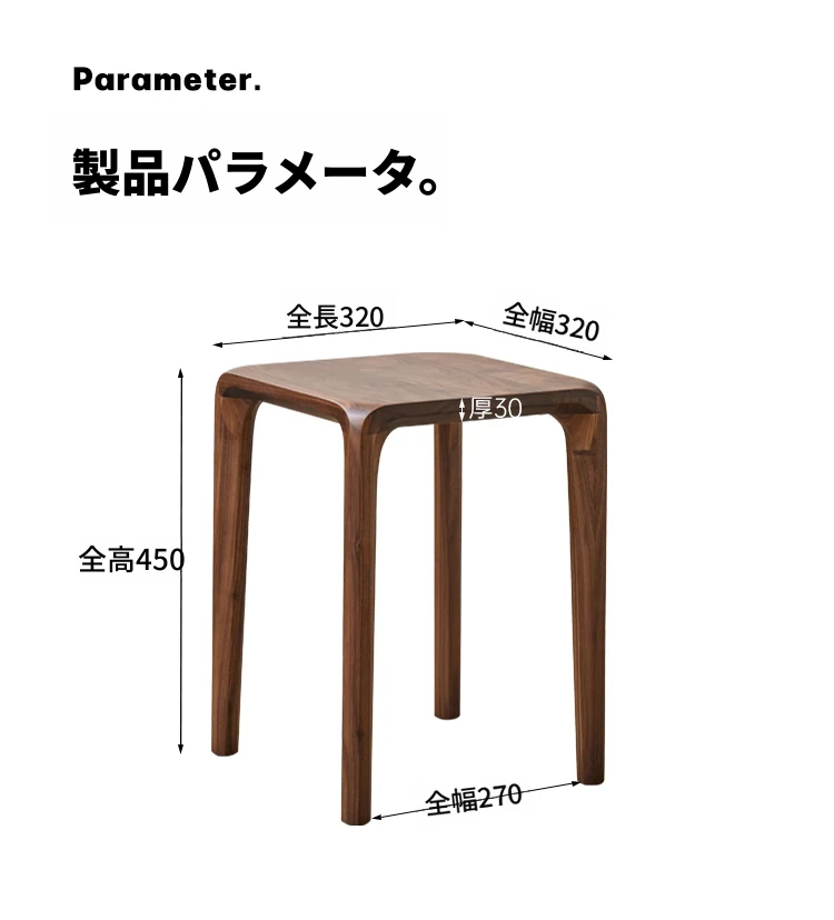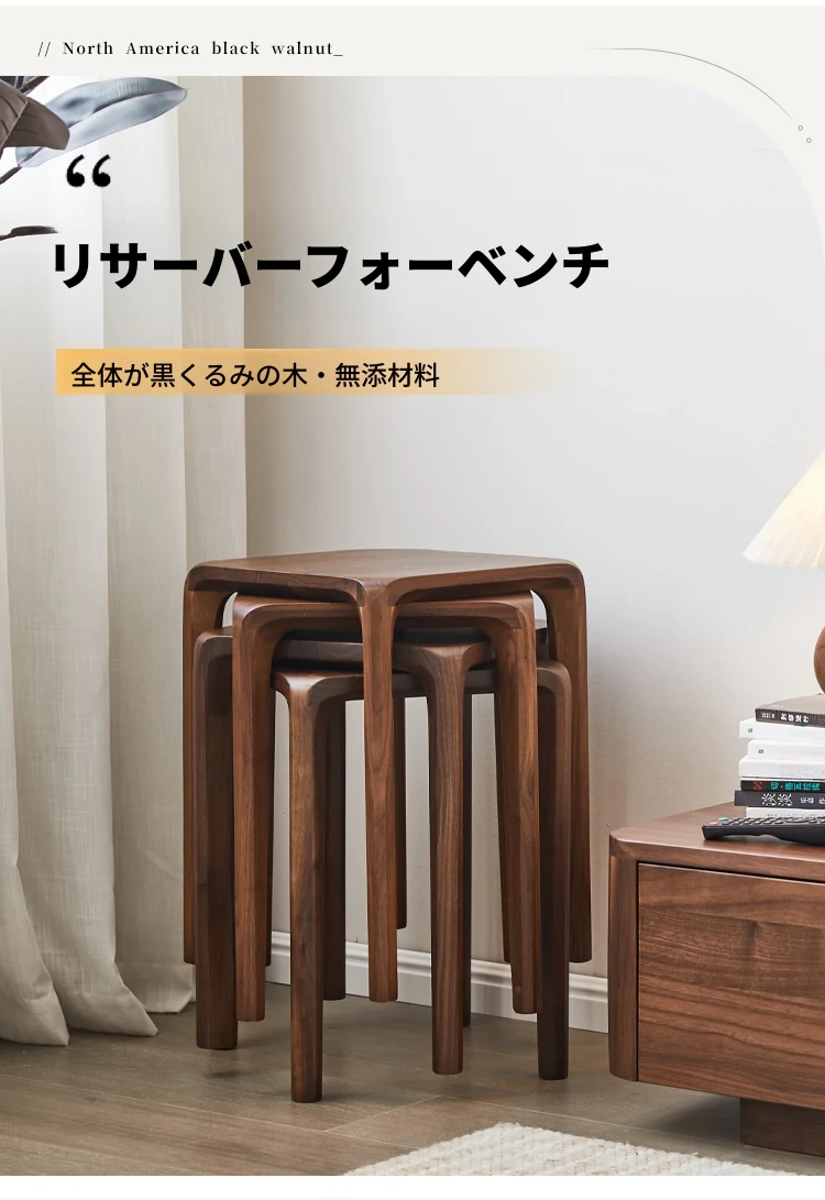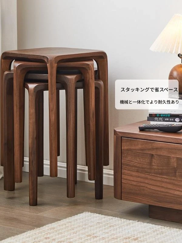 北米産ブラックウォルナット無垢材使用!スタッキング可能な小さな四角いスツール。リビングやダイニングに最適な全榫卯工法の美しいティーテーブルスツール。高品質でおしゃれな空間を演出します!
