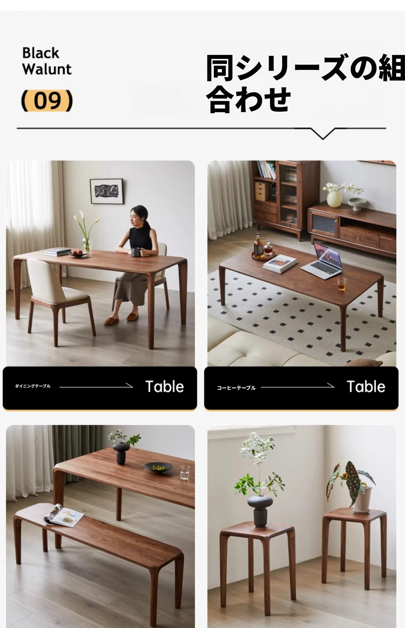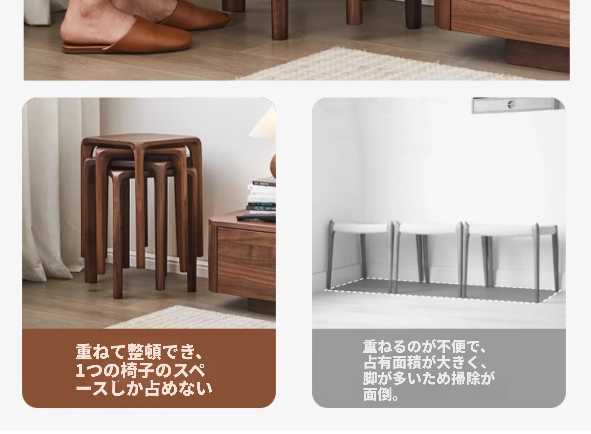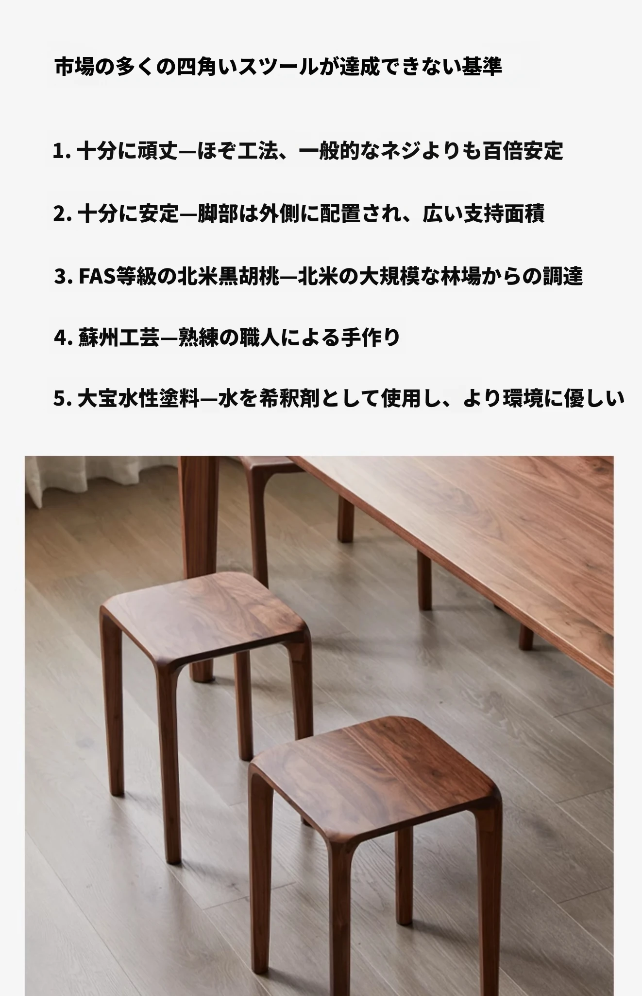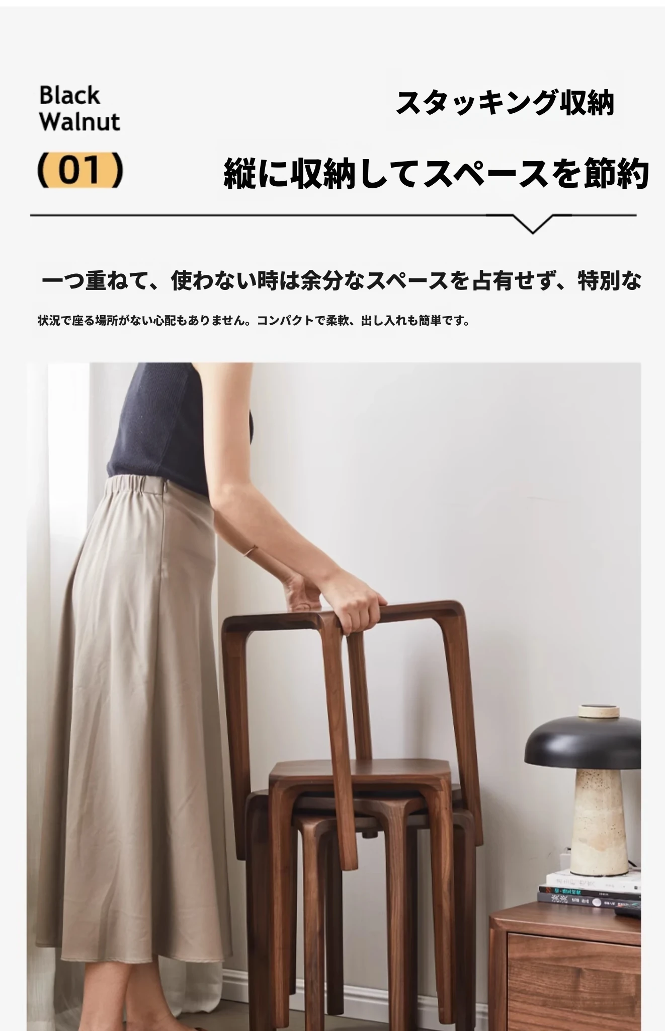 北米産ブラックウォルナット無垢材使用!スタッキング可能な小さな四角いスツール。リビングやダイニングに最適な全榫卯工法の美しいティーテーブルスツール。高品質でおしゃれな空間を演出します!