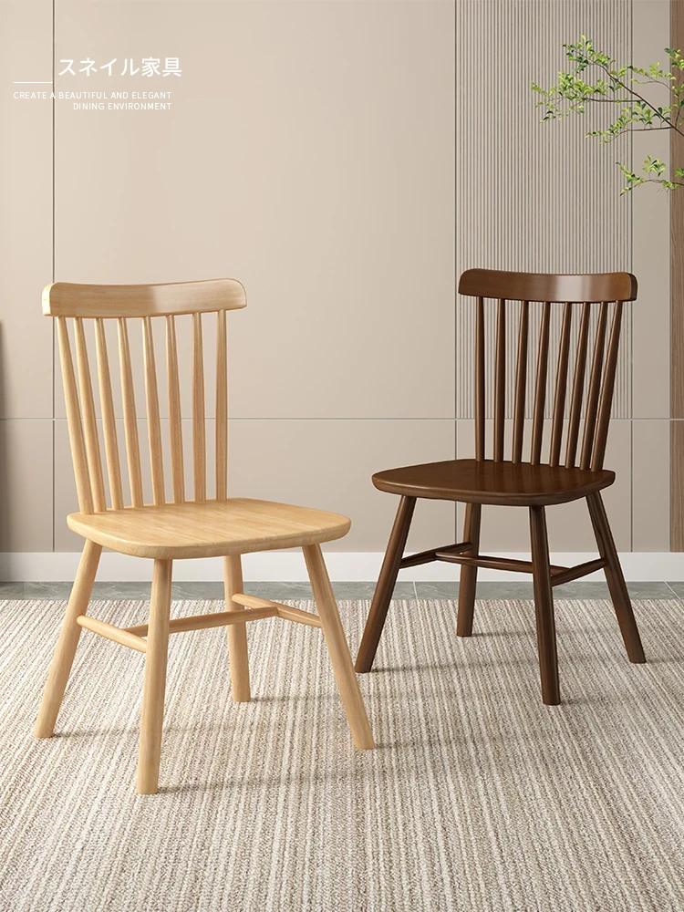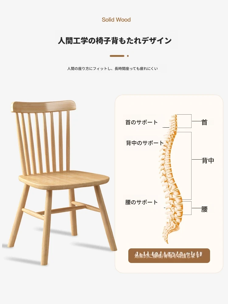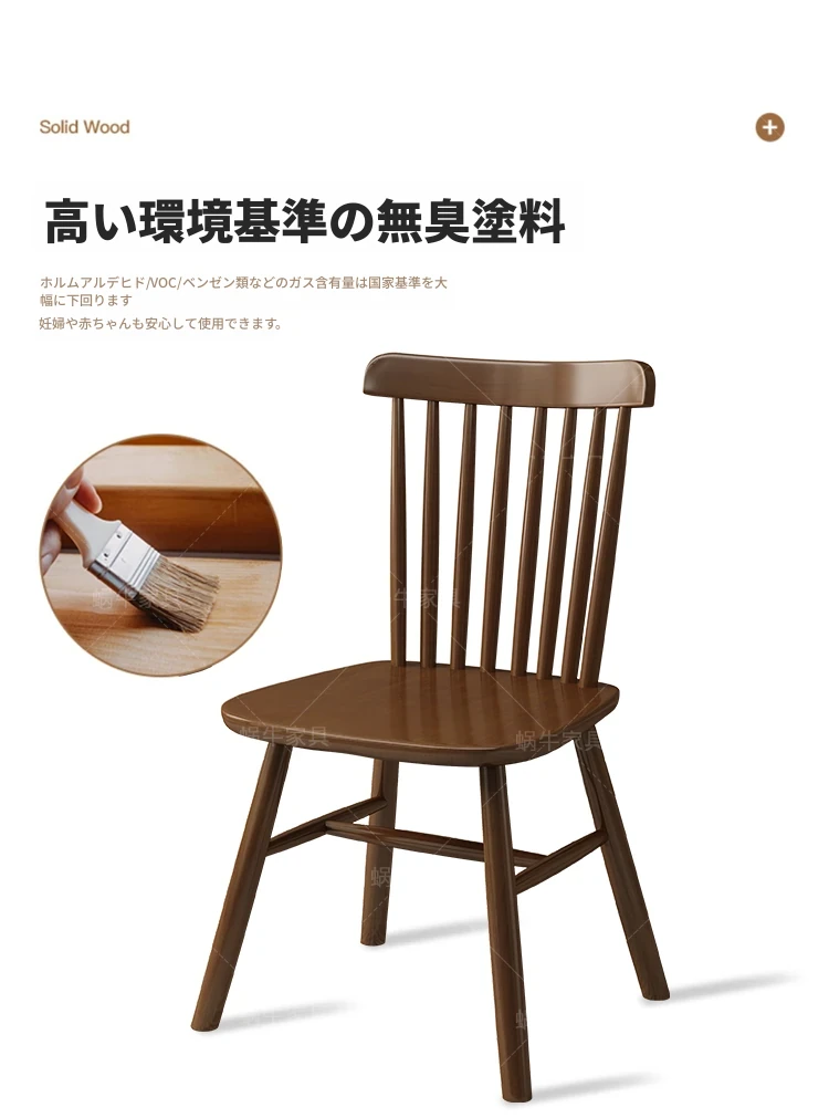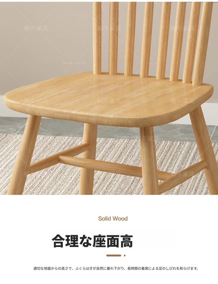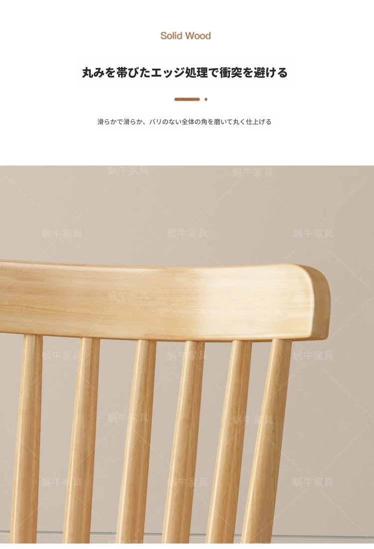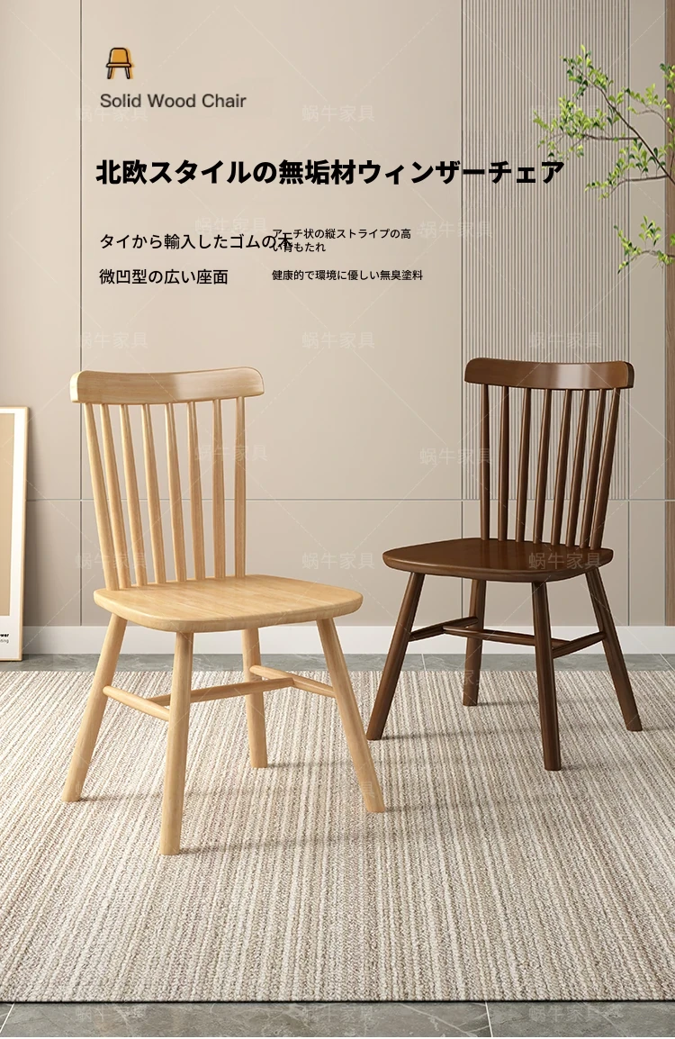 北欧スタイルの無垢材ダイニングチェア - 家庭用、レストランや書斎にも最適!快適な背もたれ付きで、モダンなウィンザーチェア。おしゃれな空間を演出し、毎日の食事を特別なひとときに。