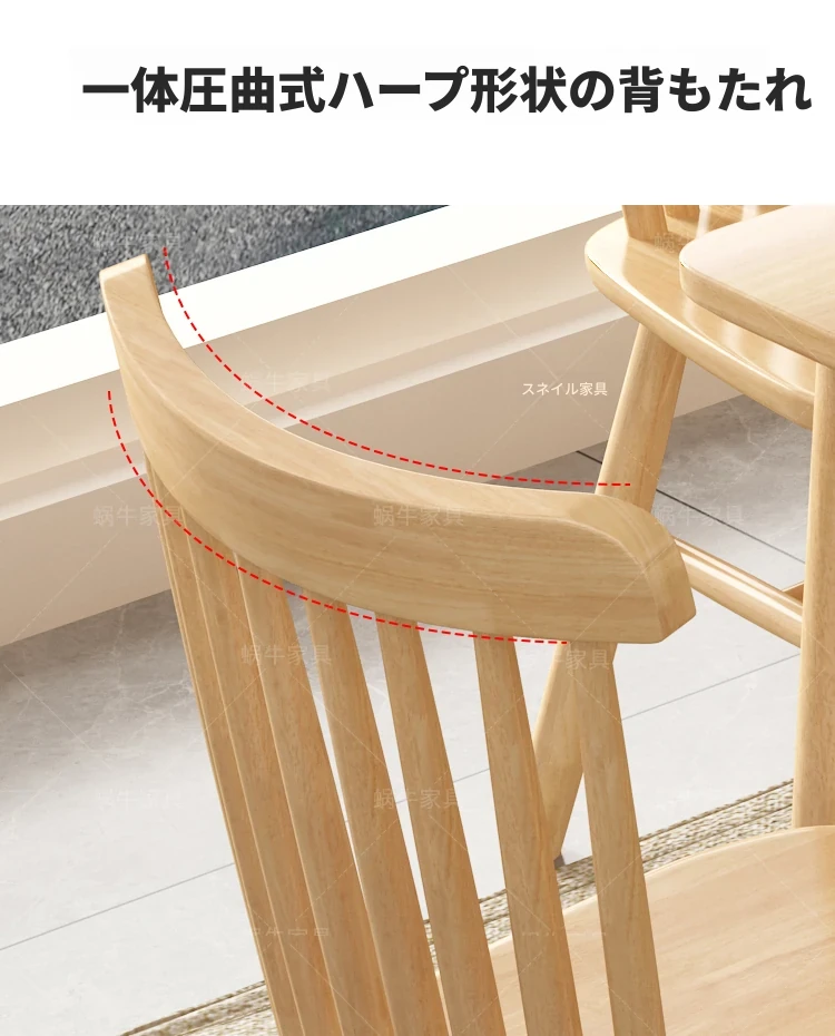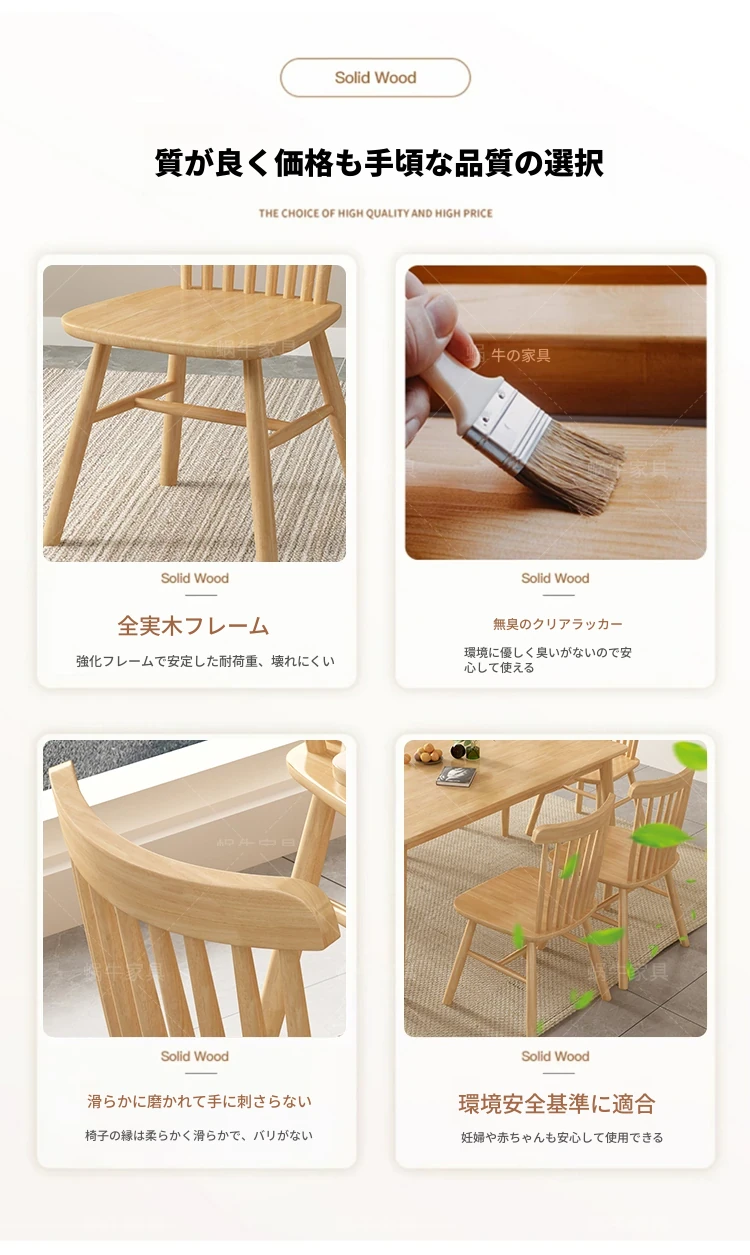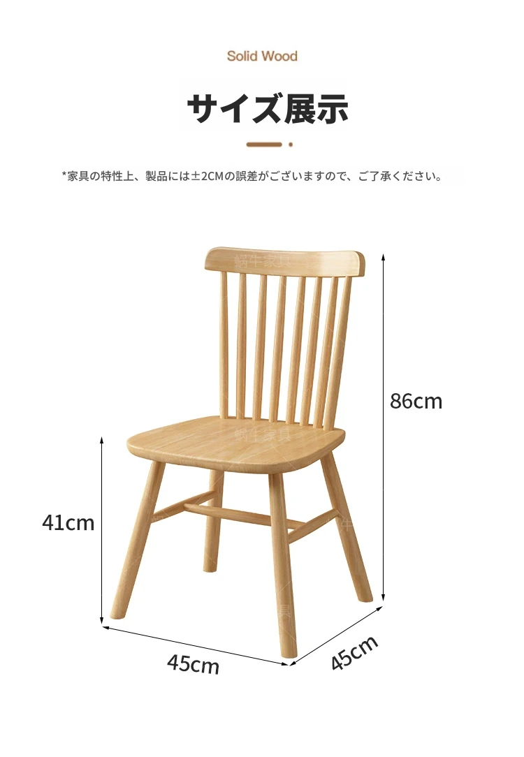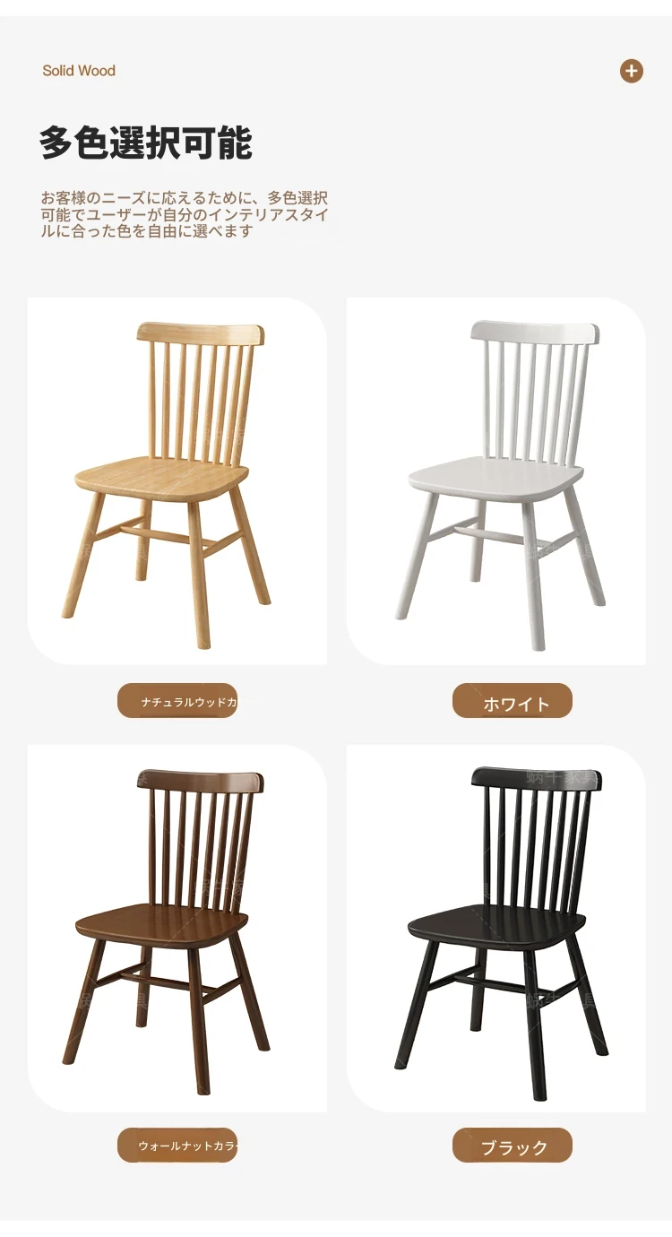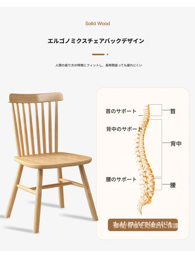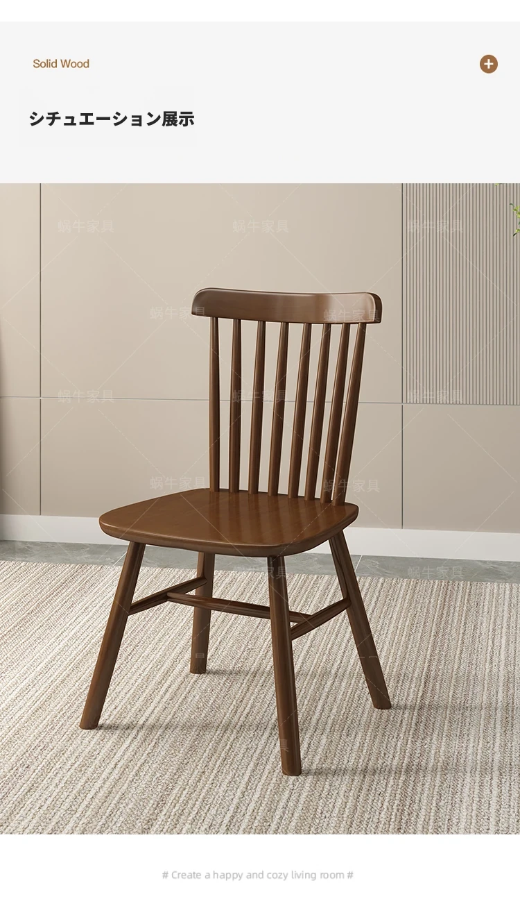 北欧スタイルの無垢材ダイニングチェア - 家庭用、レストランや書斎にも最適!快適な背もたれ付きで、モダンなウィンザーチェア。おしゃれな空間を演出し、毎日の食事を特別なひとときに。
