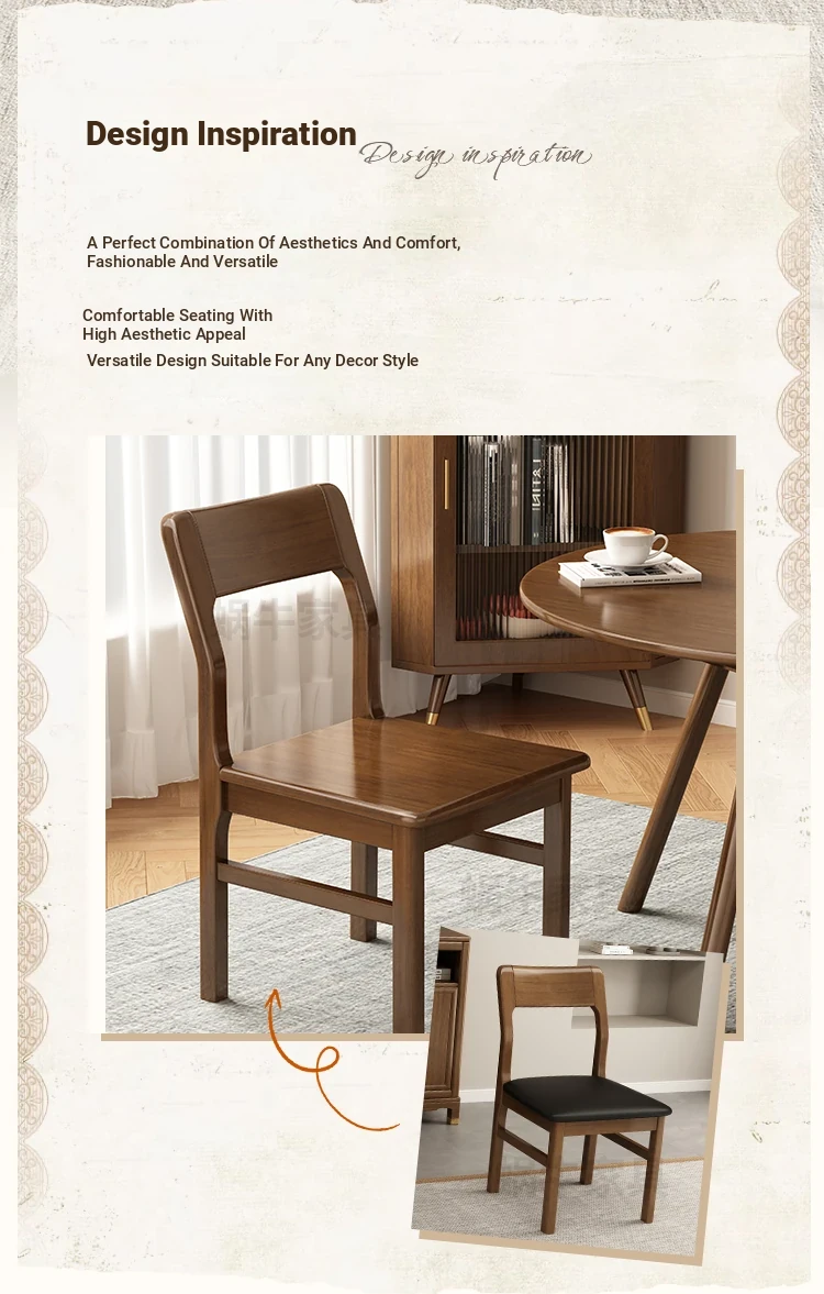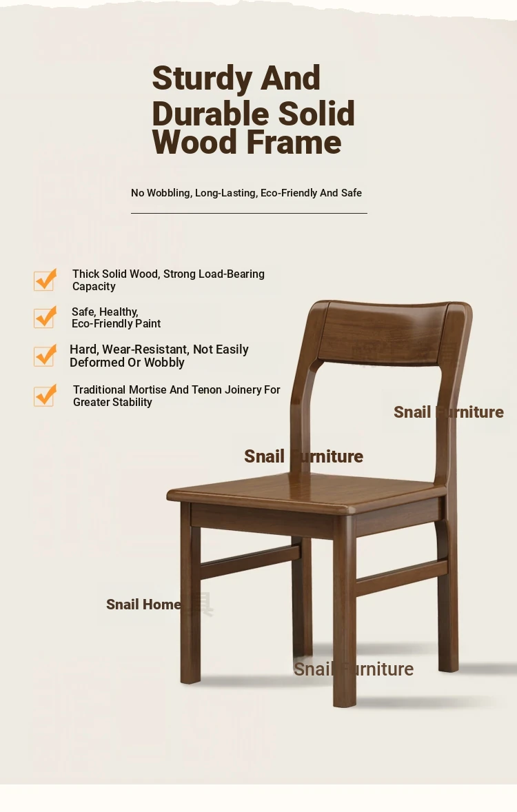 Solid Wood Dining Chairs for Restaurants and Home - Complete Set with Mortise and Tenon Joinery, Comfortable Backrest, Pure Solid Wood Design, Perfect for Hotels and Dining Rooms