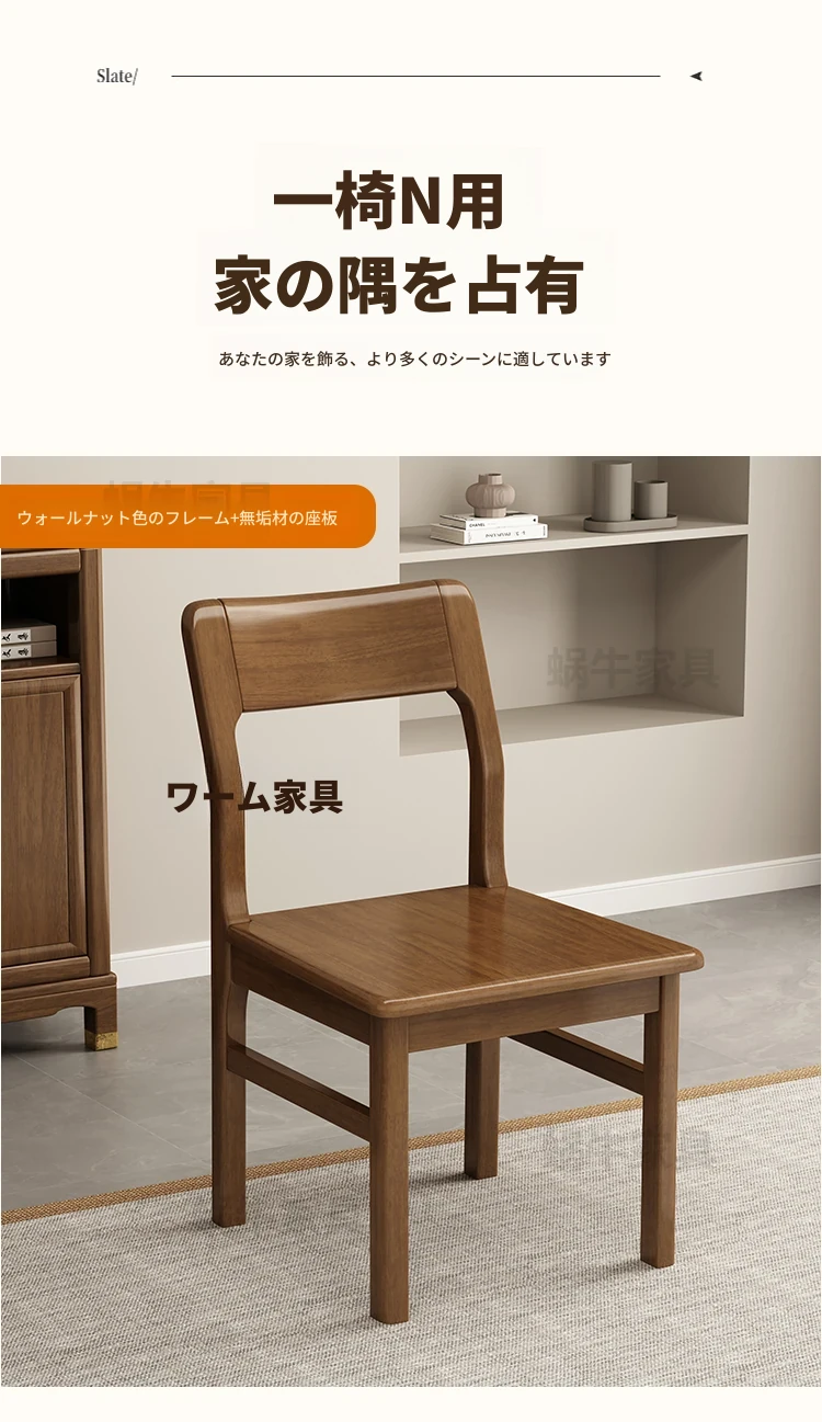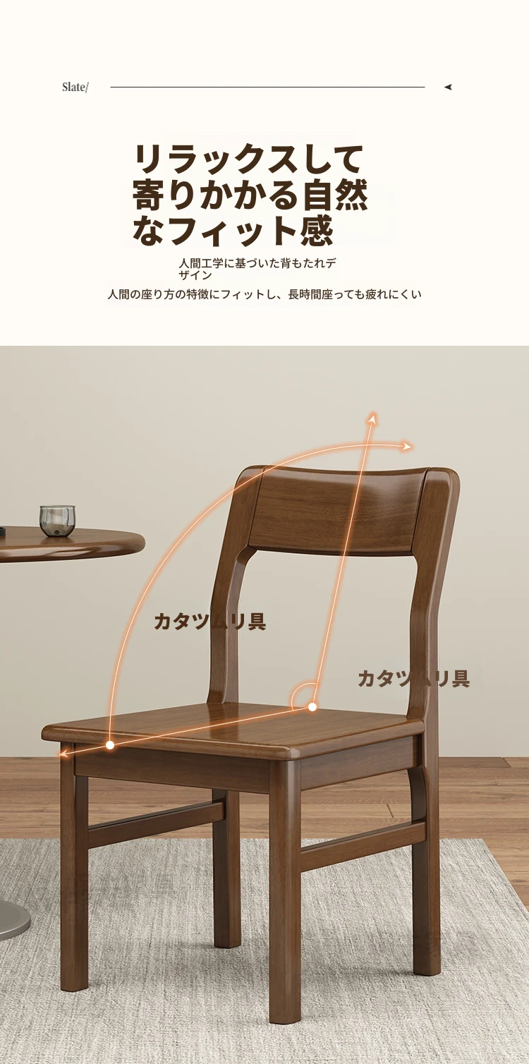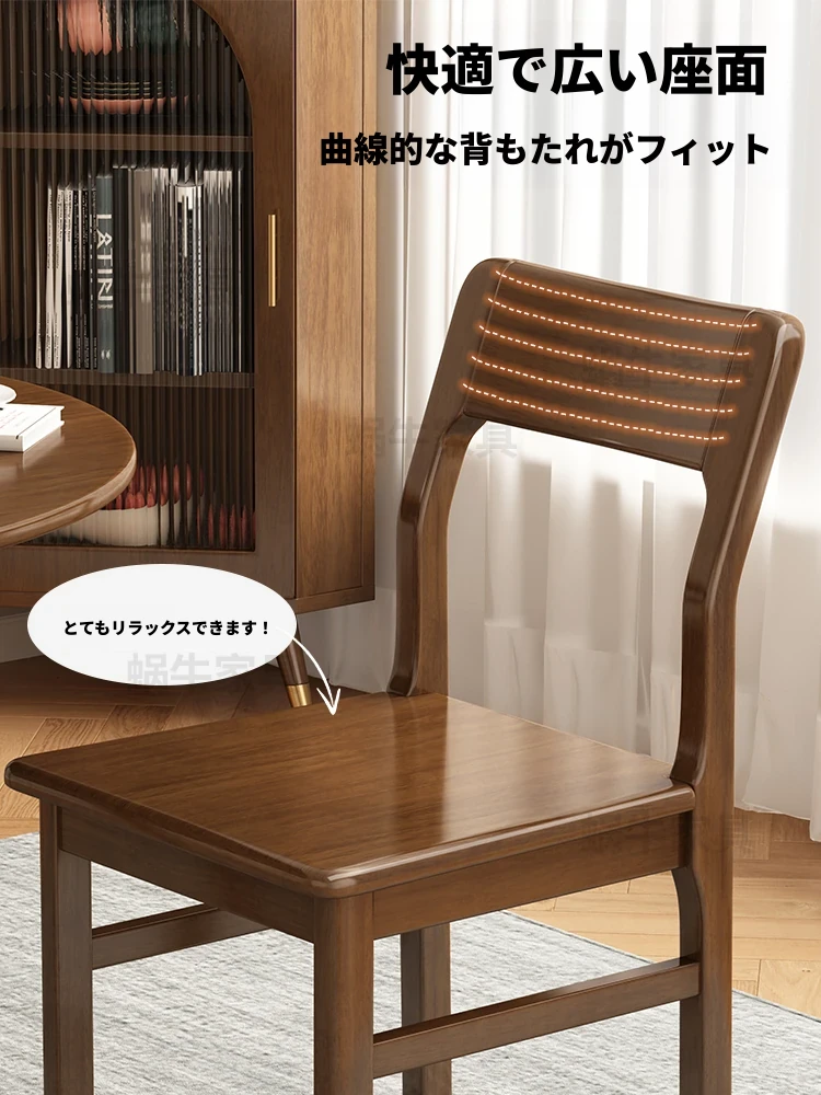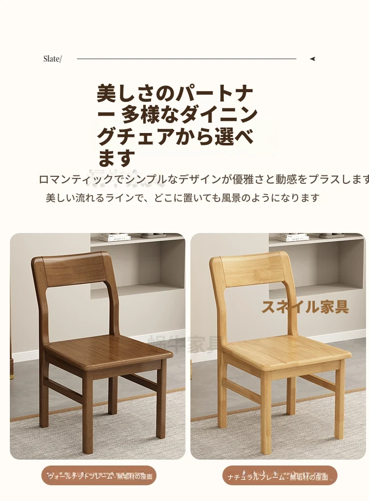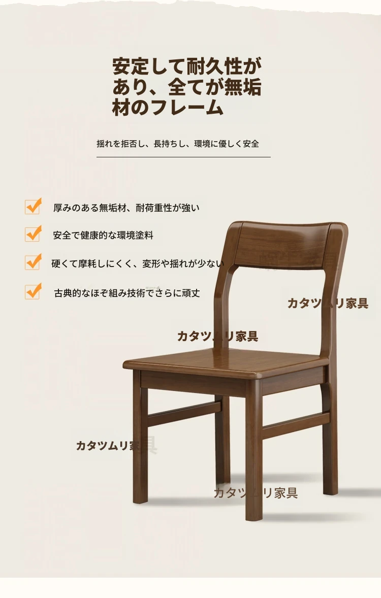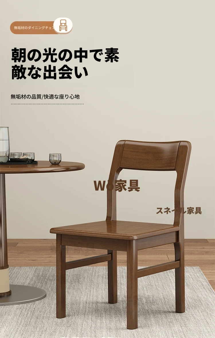 レストラン用無垢材ダイニングチェア|家庭用テーブルセットに最適|組み立て不要の一体型|背もたれ付きの快適な椅子|純正無垢材使用|ホテルでも使える高品質チェア