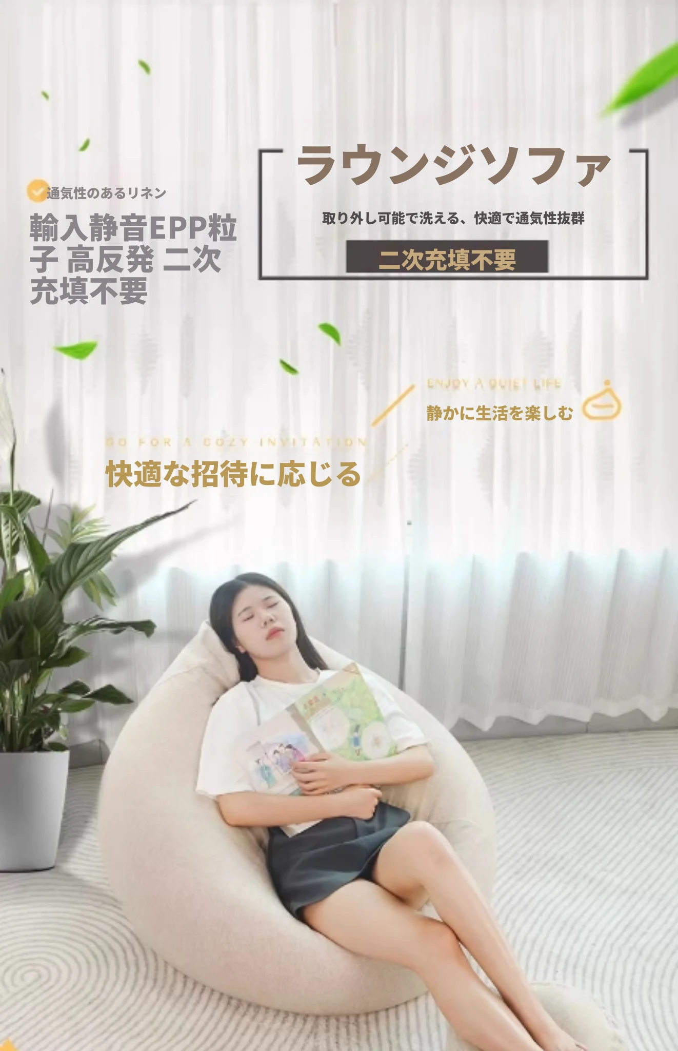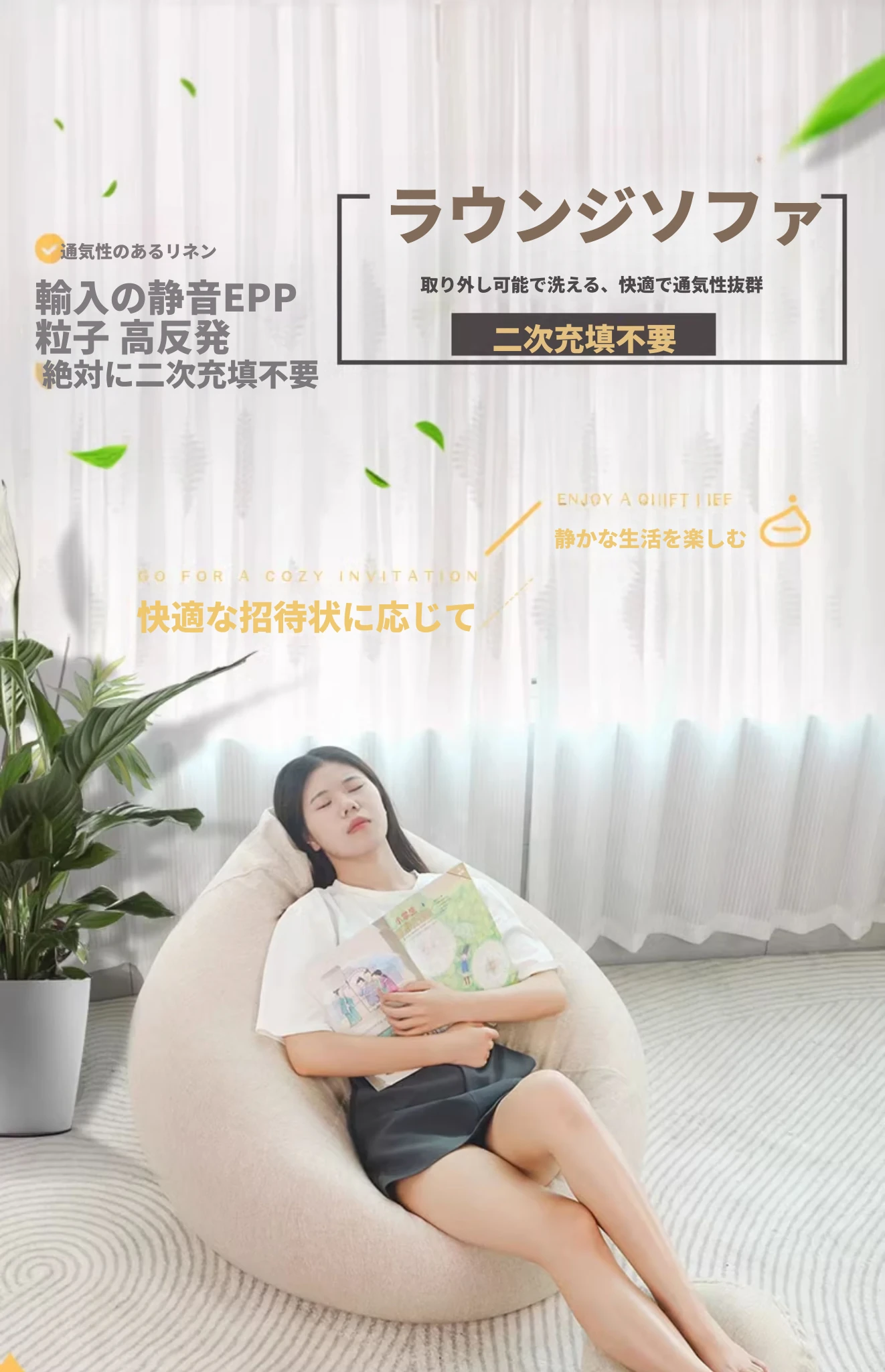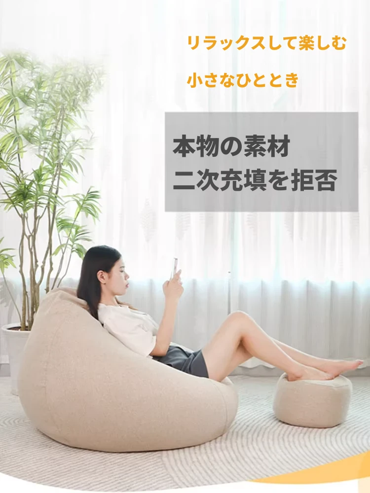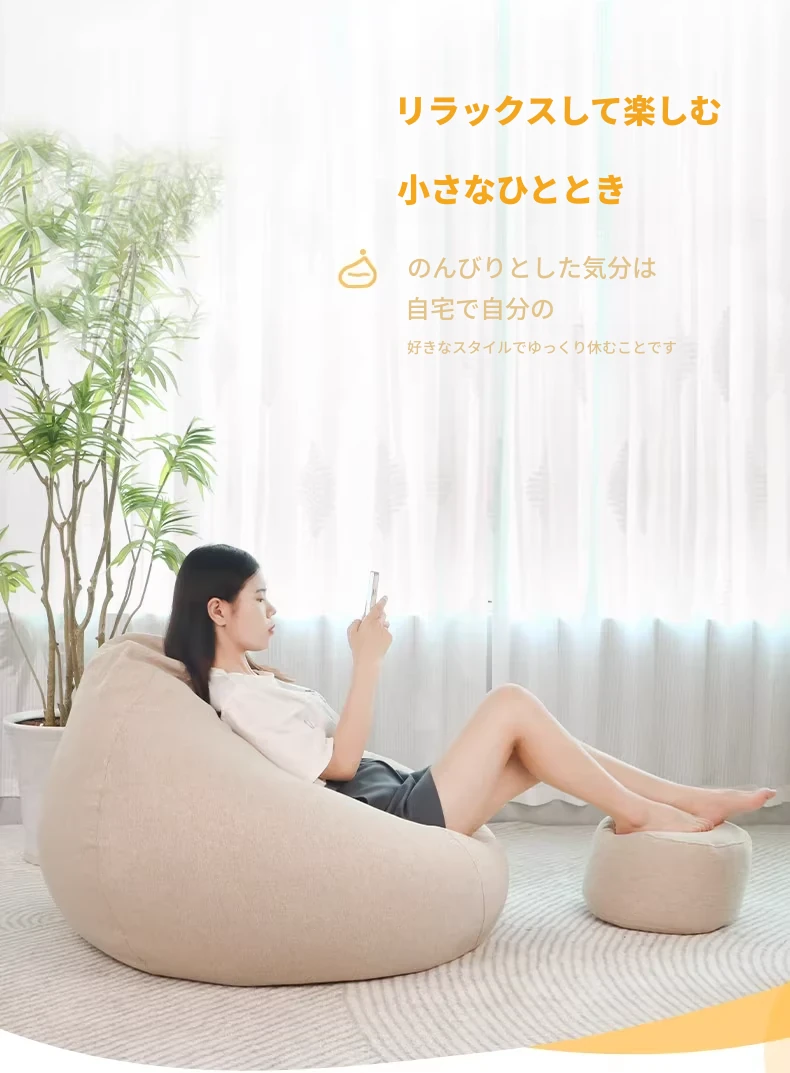 春のリラックス豆袋ソファ - 小スペースに最適!タタミやバルコニー、温泉でのくつろぎタイムにぴったり。快適な姿勢でリラックスできる、あなたのための特別なアイテムです。
