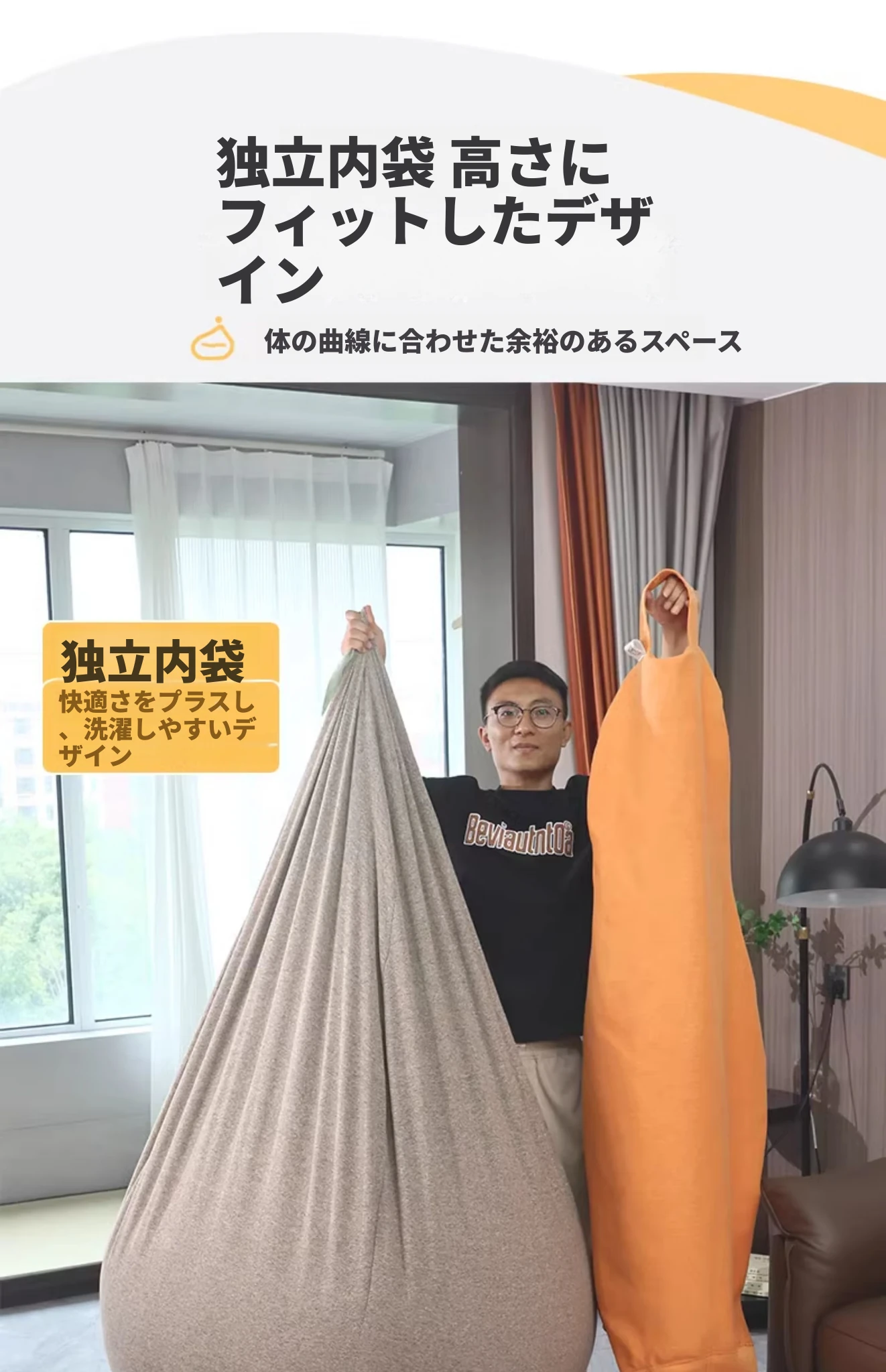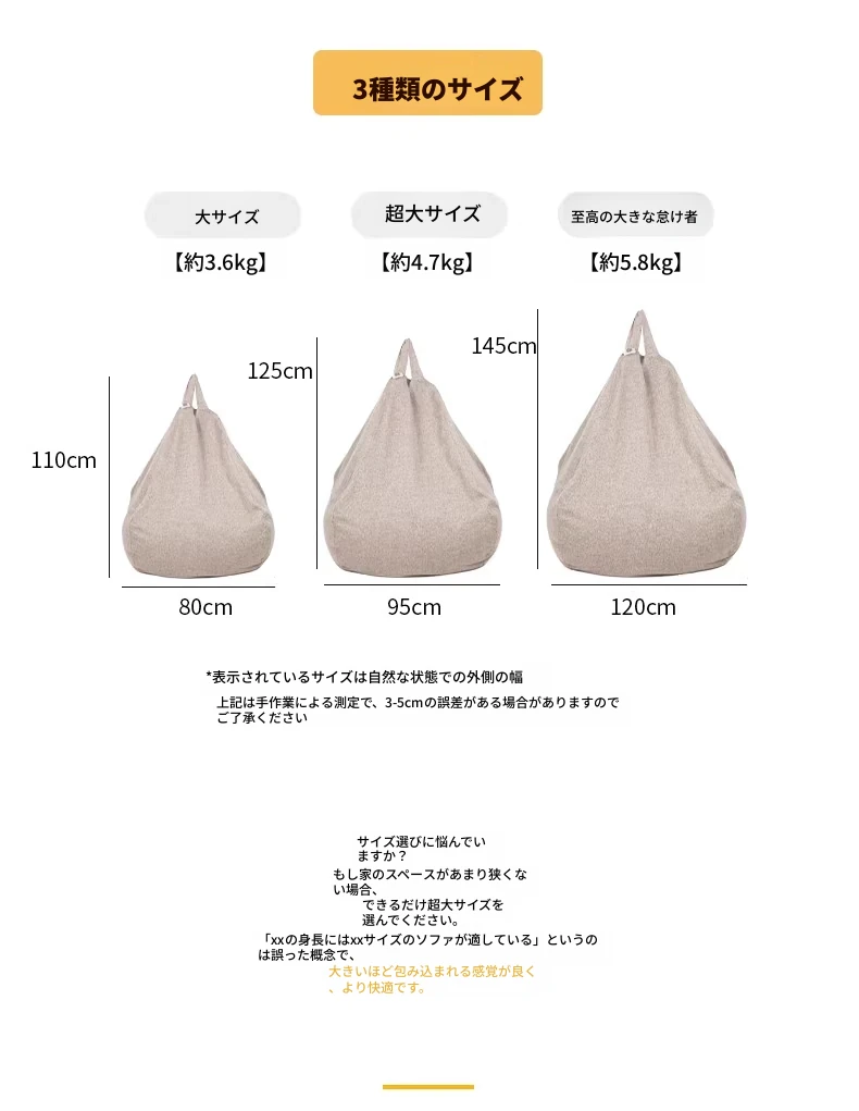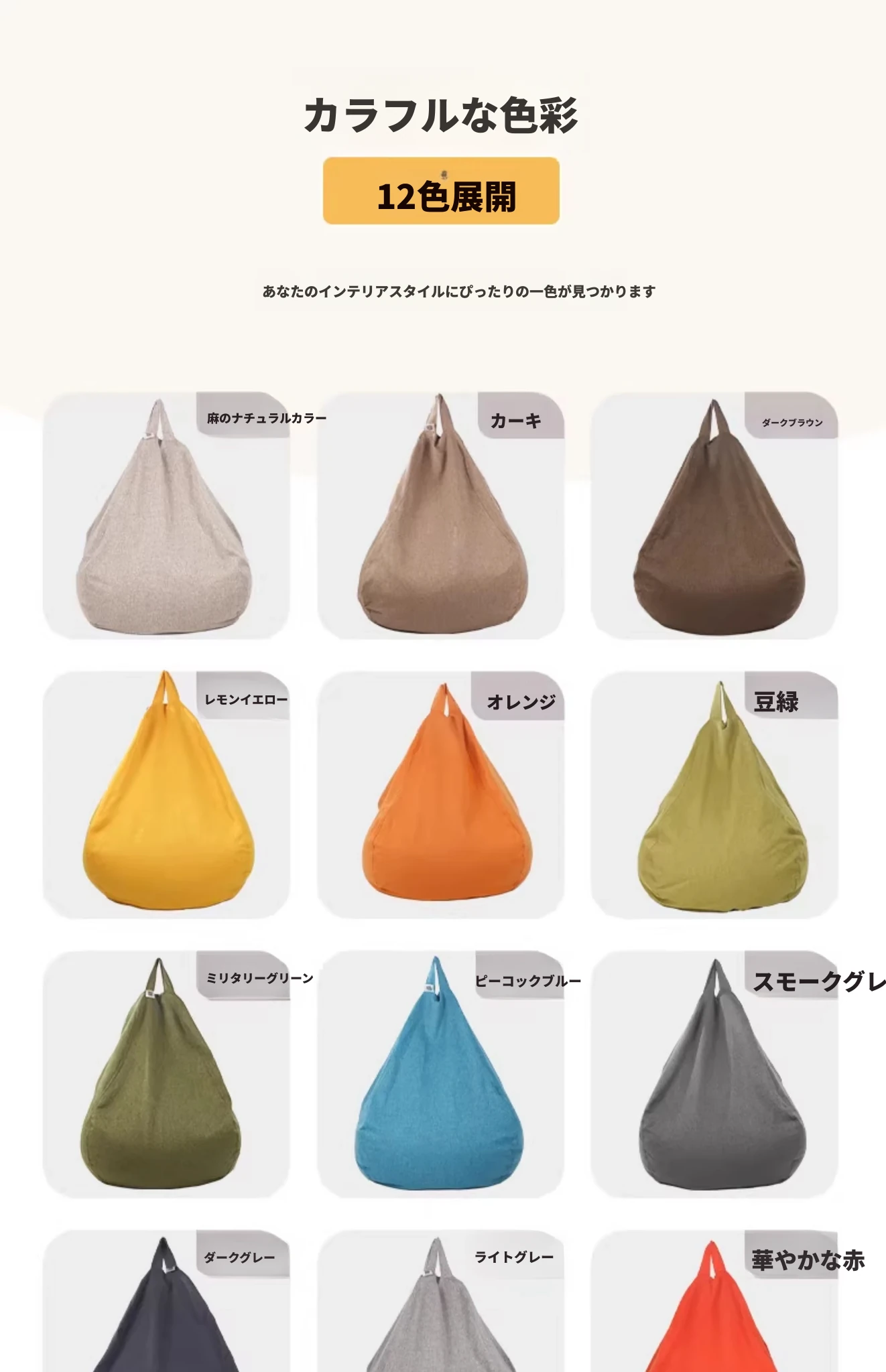 春のリラックス豆袋ソファ - 小スペースに最適!タタミやバルコニー、温泉でのくつろぎタイムにぴったり。快適な姿勢でリラックスできる、あなたのための特別なアイテムです。