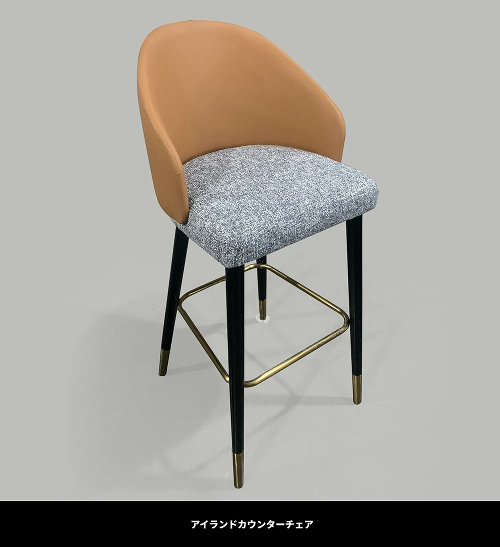 アイランドカウンターバースツール オレンジの皮+布 座面高75cm