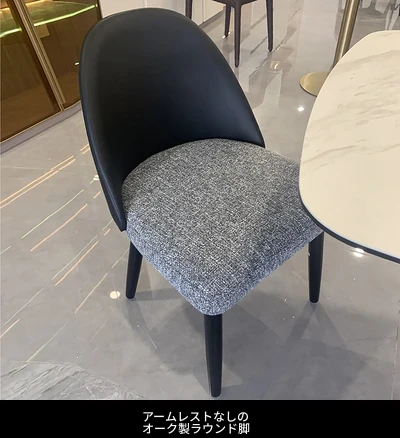 肘なしダイニングチェア ブラックの皮+布 オークの丸脚