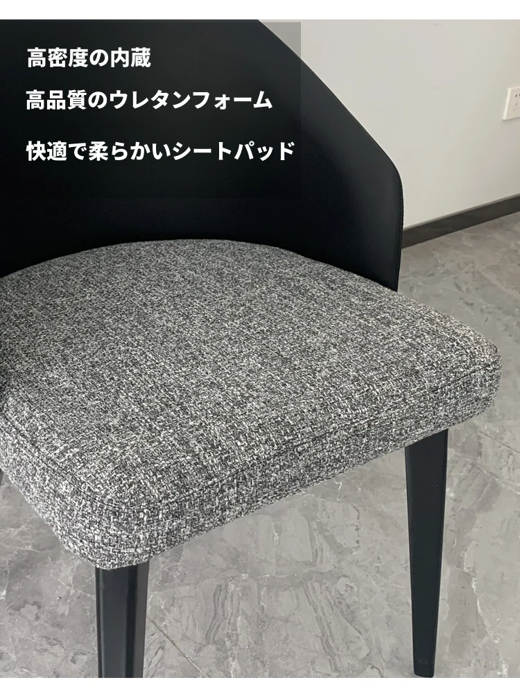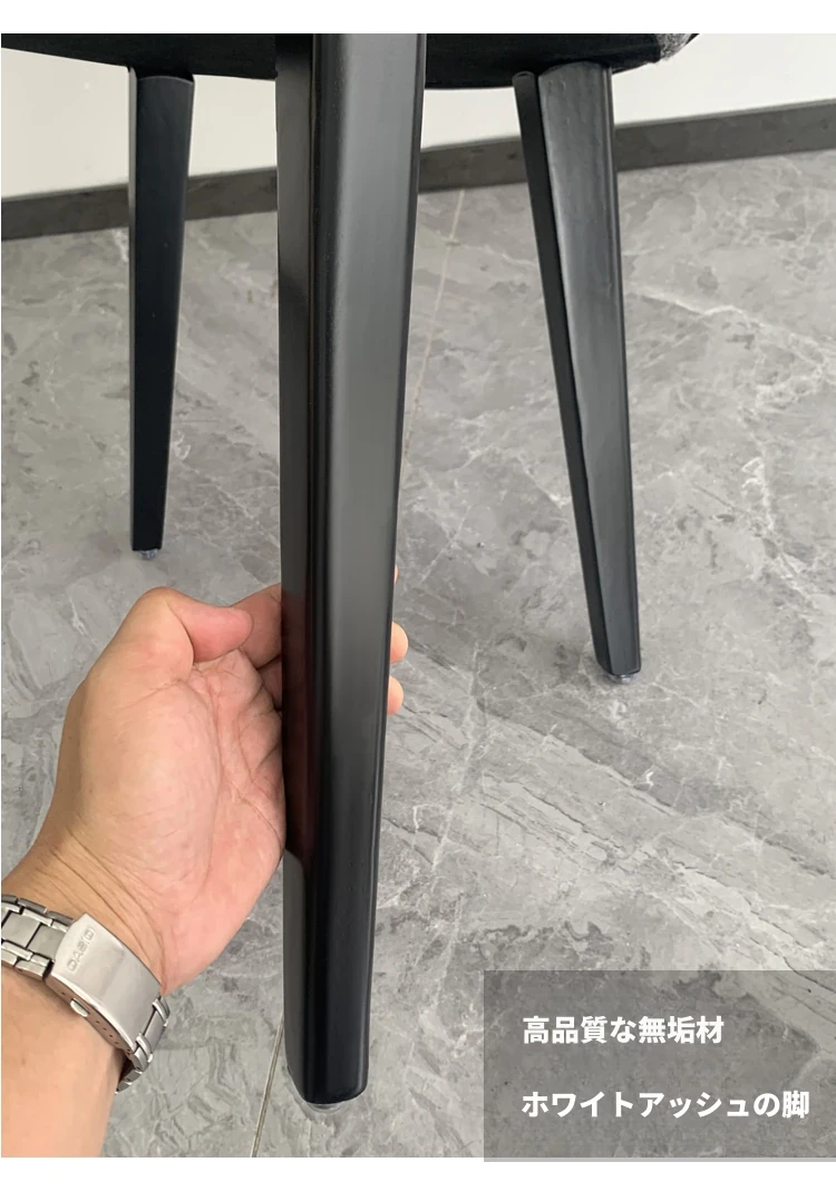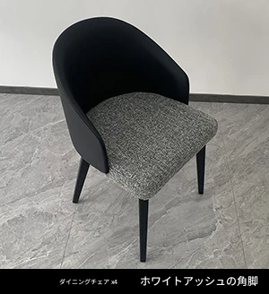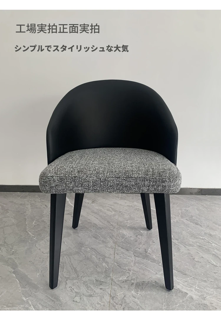 肘付きダイニングチェア ブラックの皮+布 アップグレード版 インポートホワイトアッシュ木製四角脚