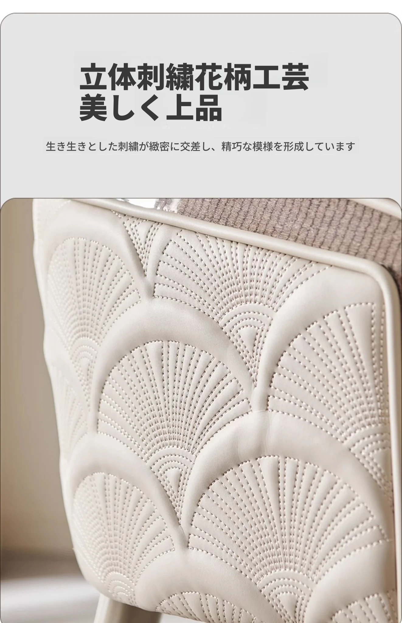 米グレーのレザー【背面扇形刺繍】