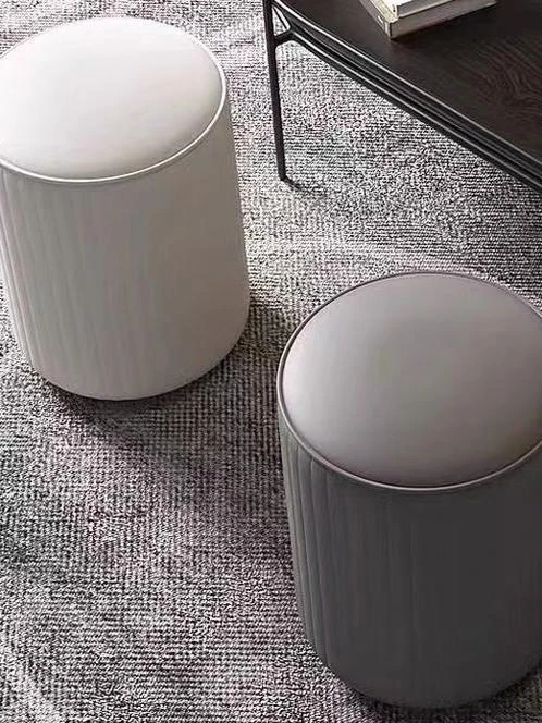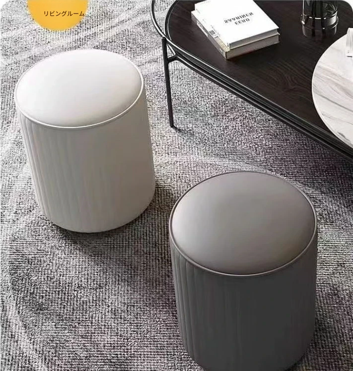 家用スリッパチェンジベンチ - コンパクトでスタイリッシュな丸いスツール。玄関や寝室、リビングでの使用に最適!軽やかなデザインで、化粧台やソファのサイドテーブルとしても活躍。快適さとエレガンスを兼ね備えた一品です。
