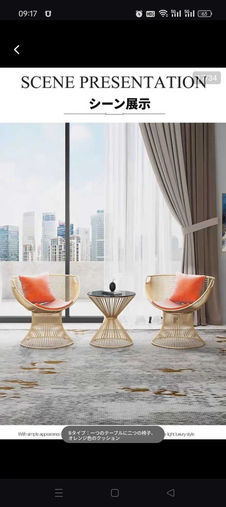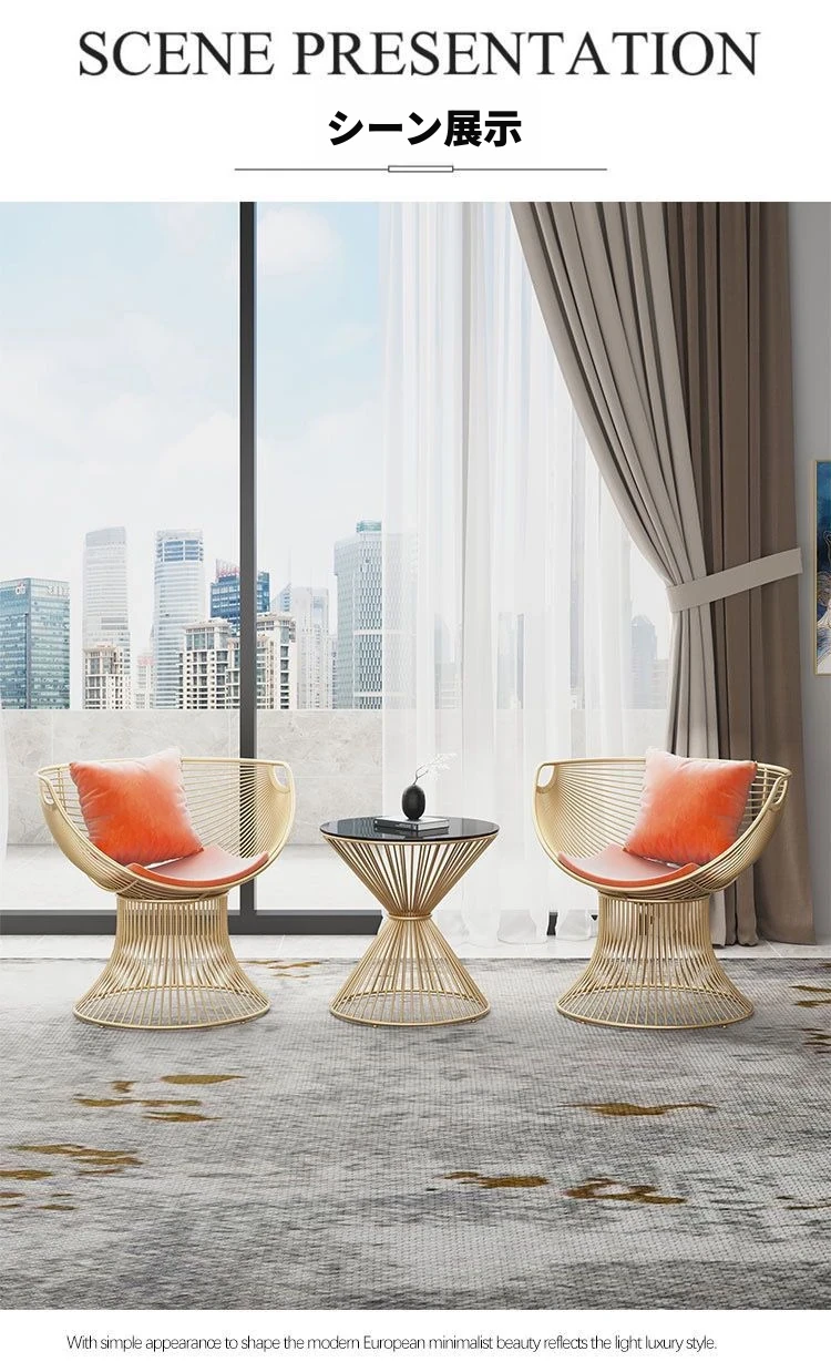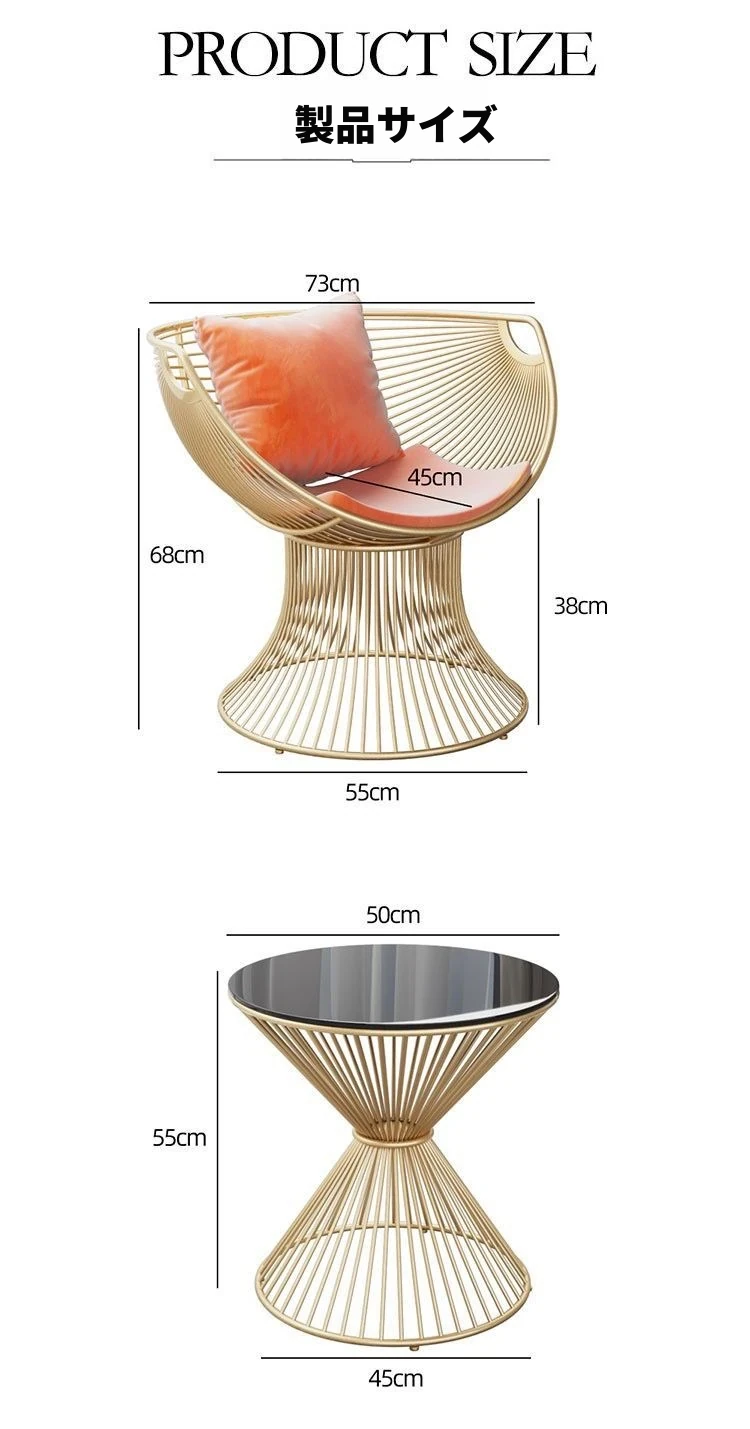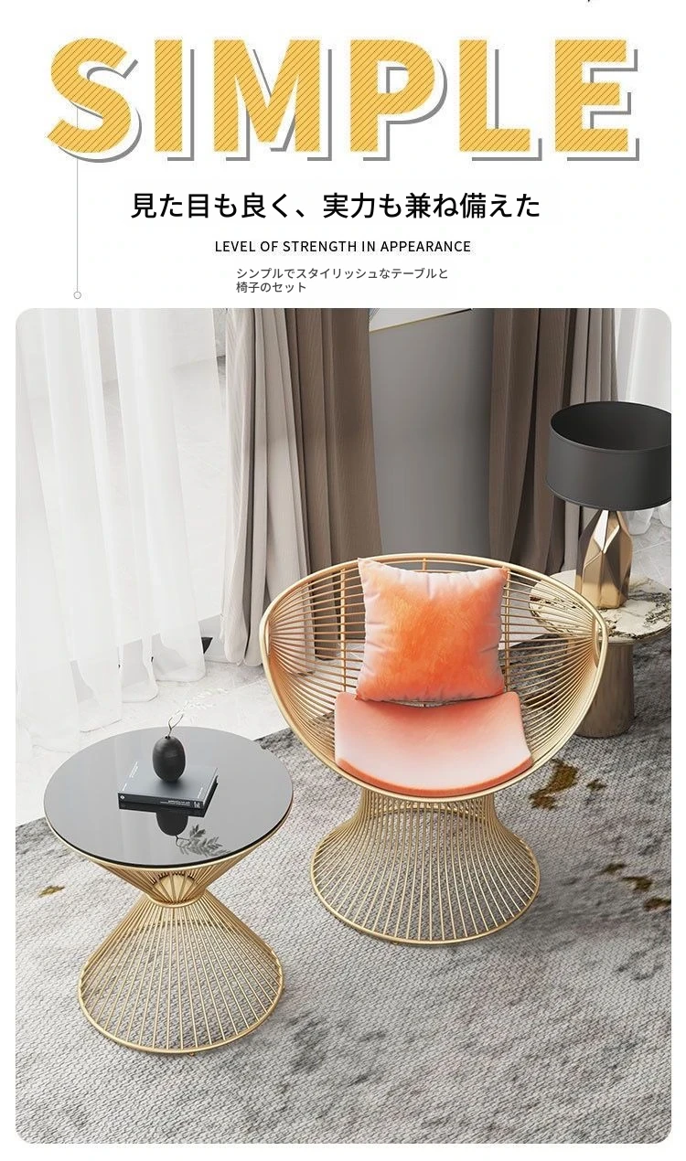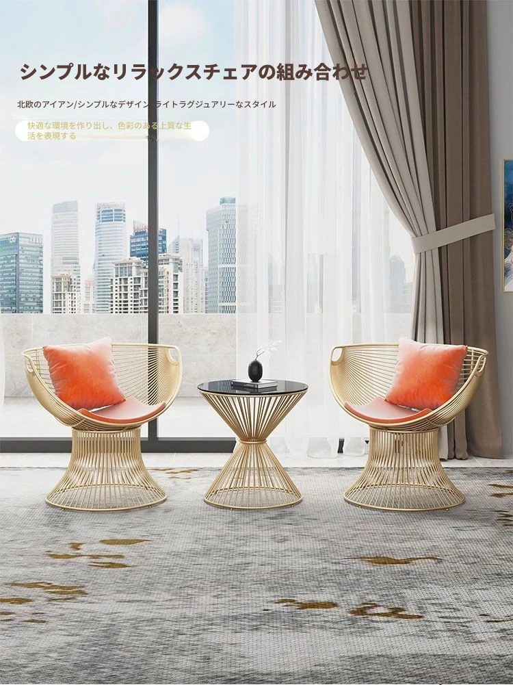 Aタイプ一つのテーブルと一つの椅子、オレンジ色のクッション