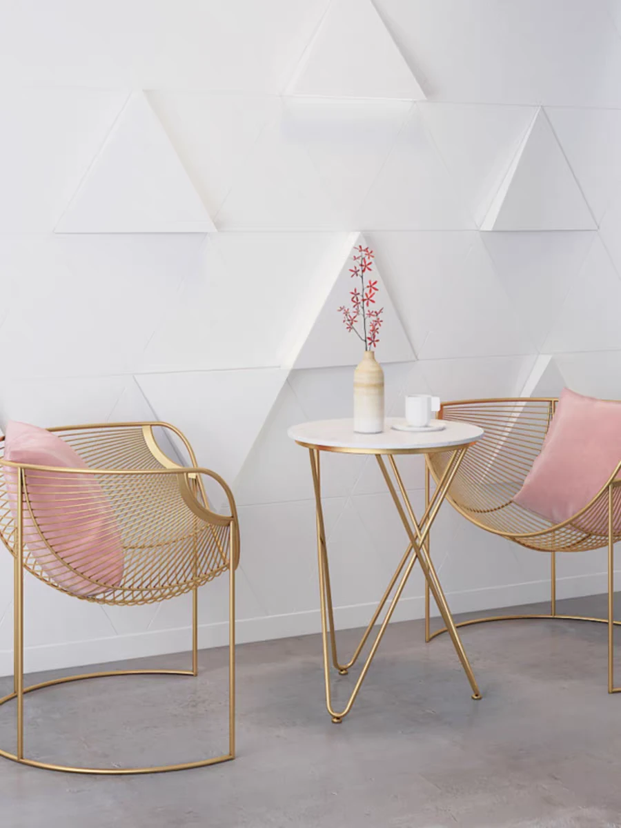 Aタイプ;一つのテーブルと二つの椅子、ピンクのクッション