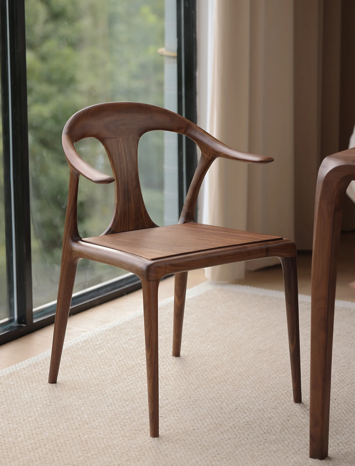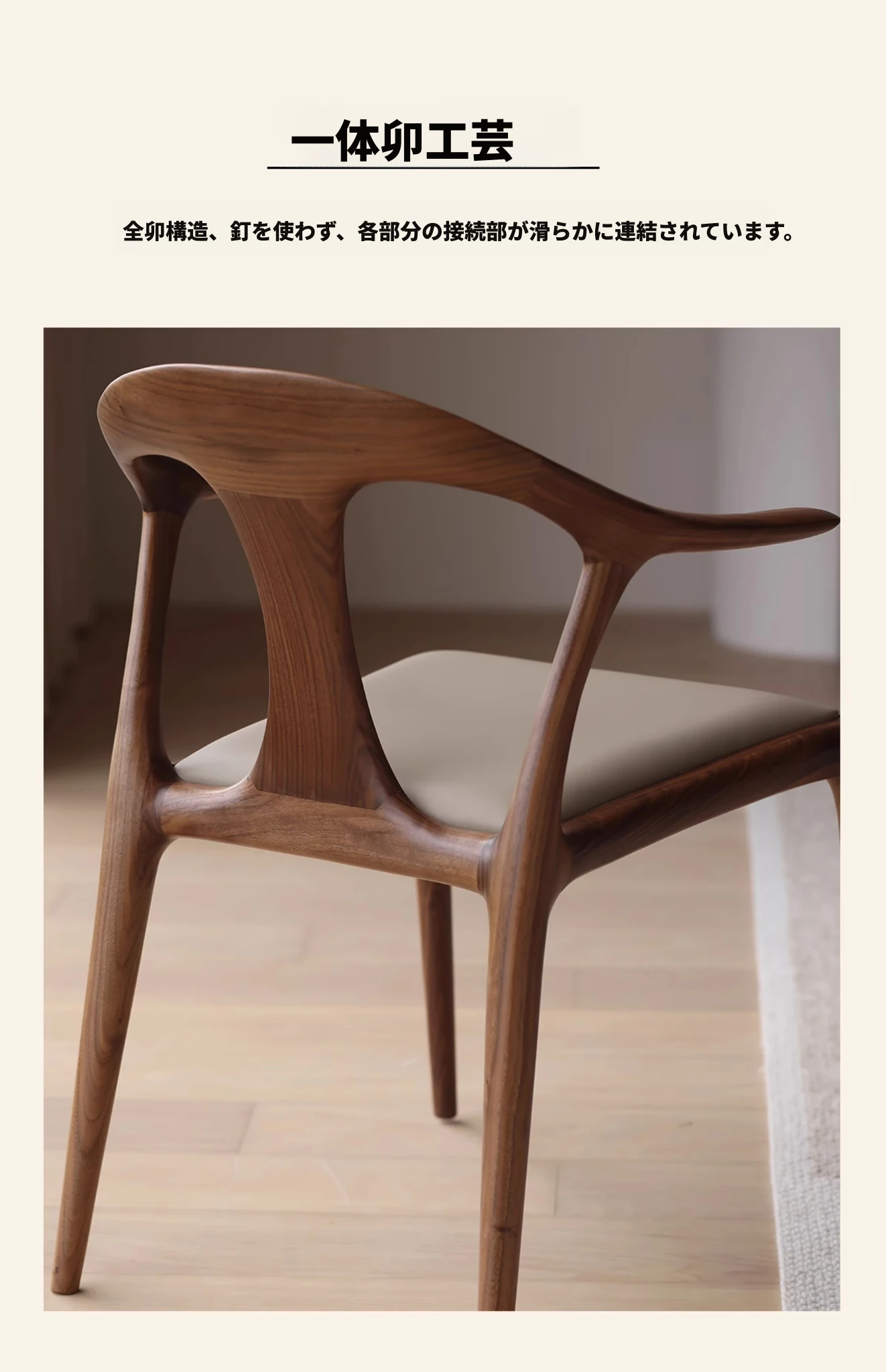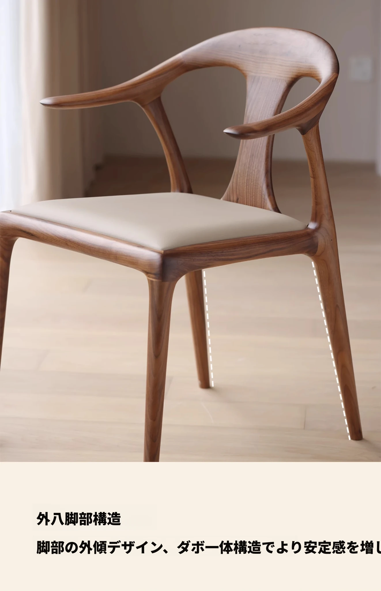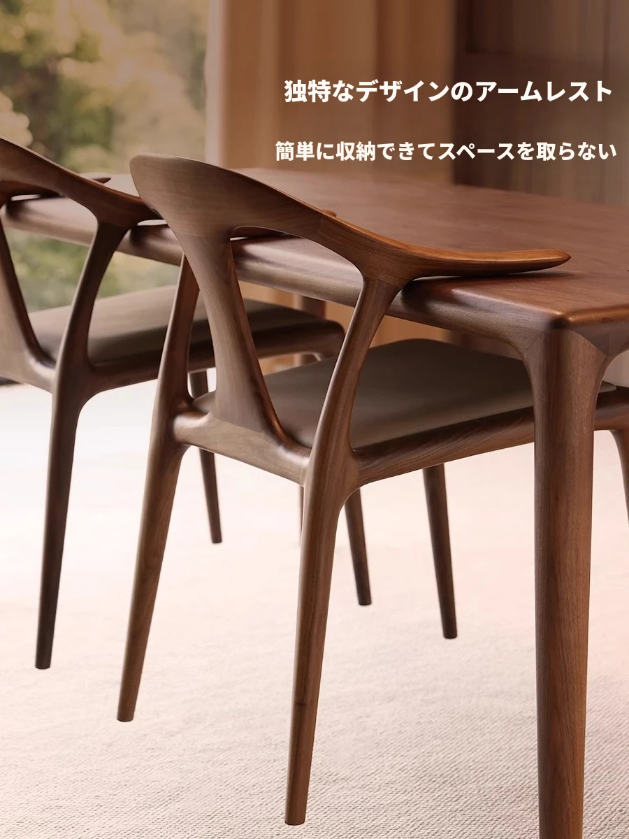 高級感溢れるミニマルデザインのダイニングチェア|快適なアームレスト&背もたれ付き|高品質無垢材使用|家庭やホテルの打ち合わせに最適な一品!