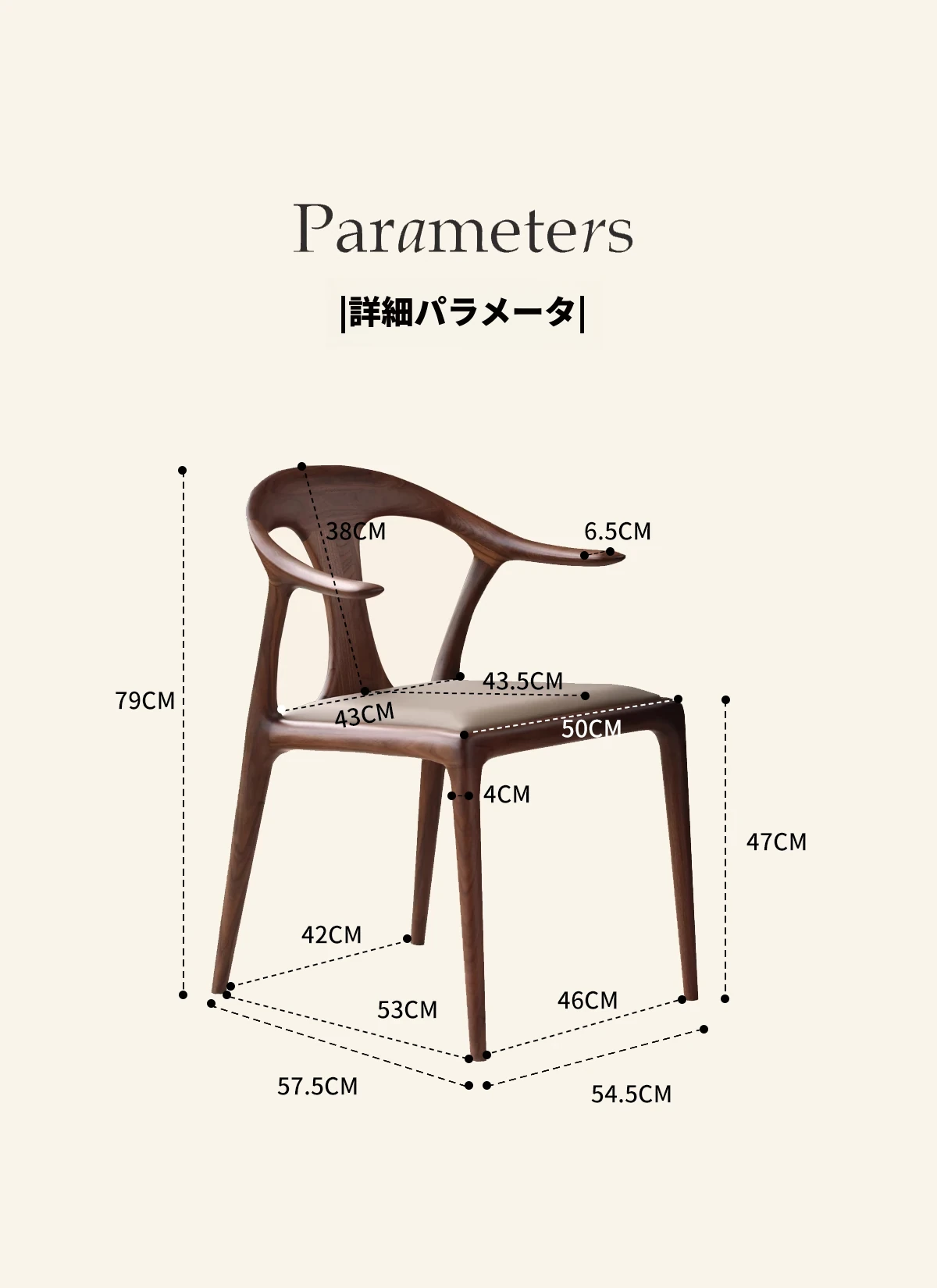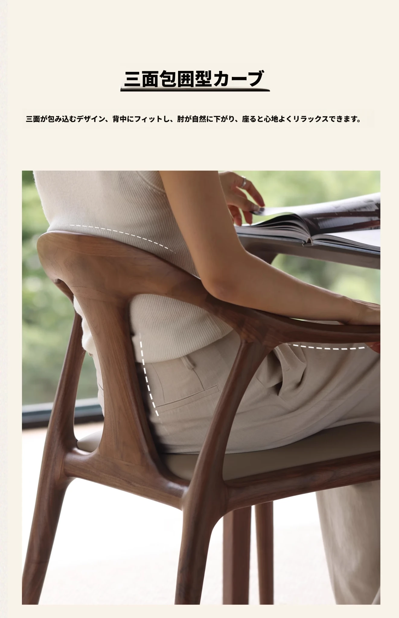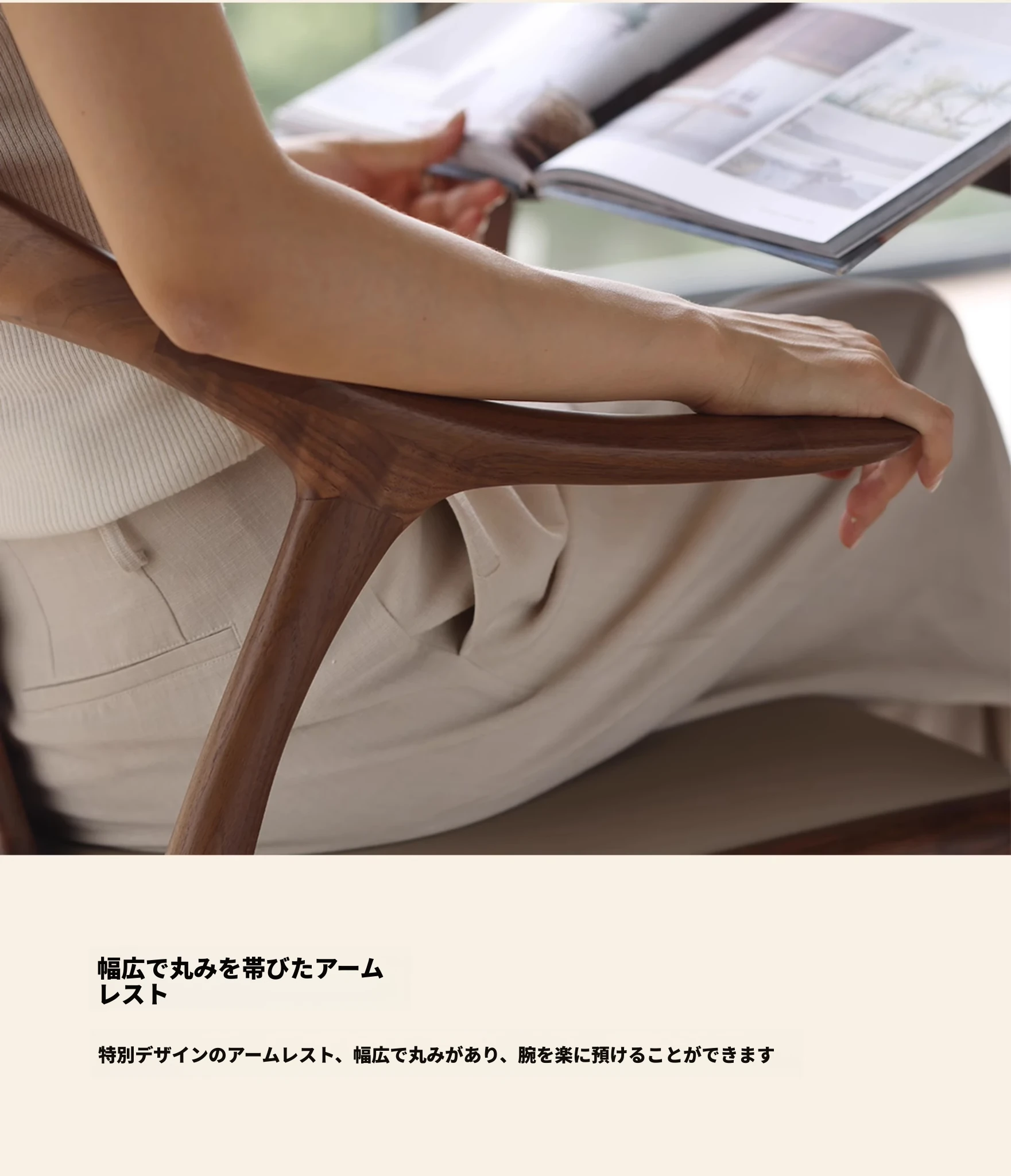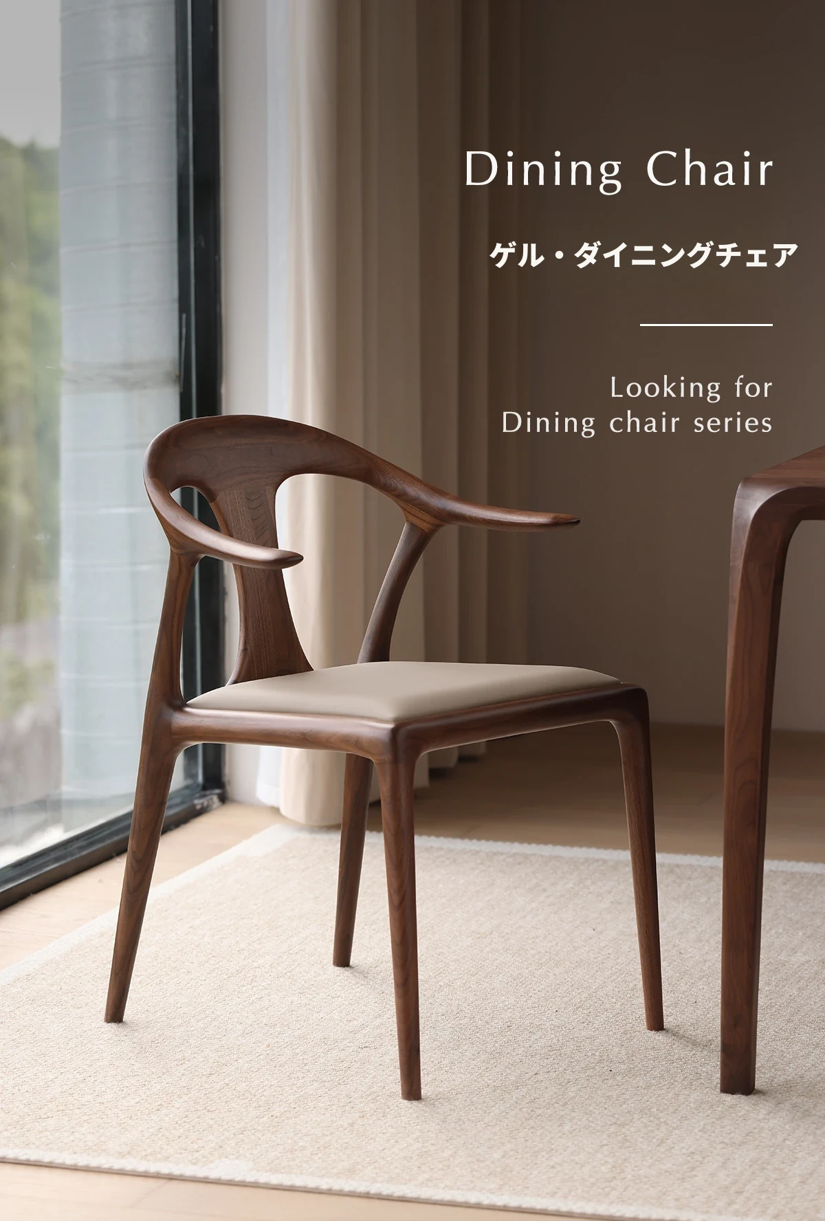 高級感溢れるミニマルデザインのダイニングチェア|快適なアームレスト&背もたれ付き|高品質無垢材使用|家庭やホテルの打ち合わせに最適な一品!