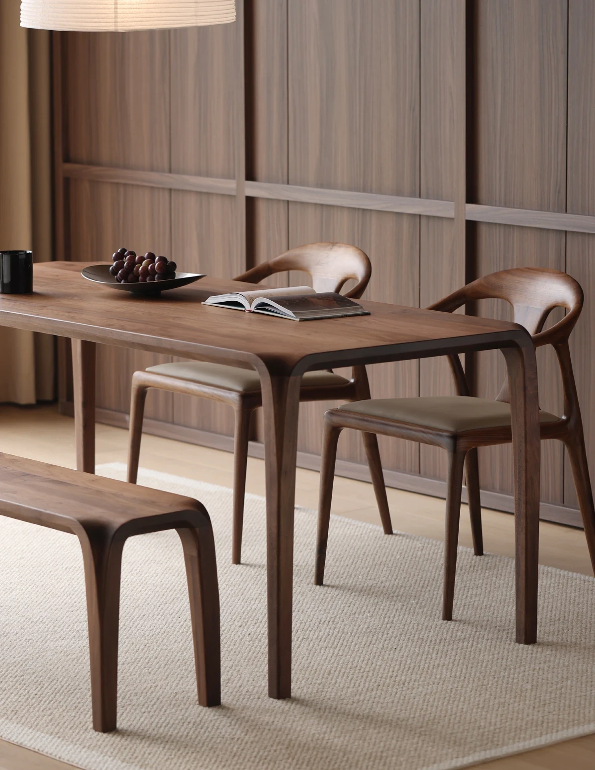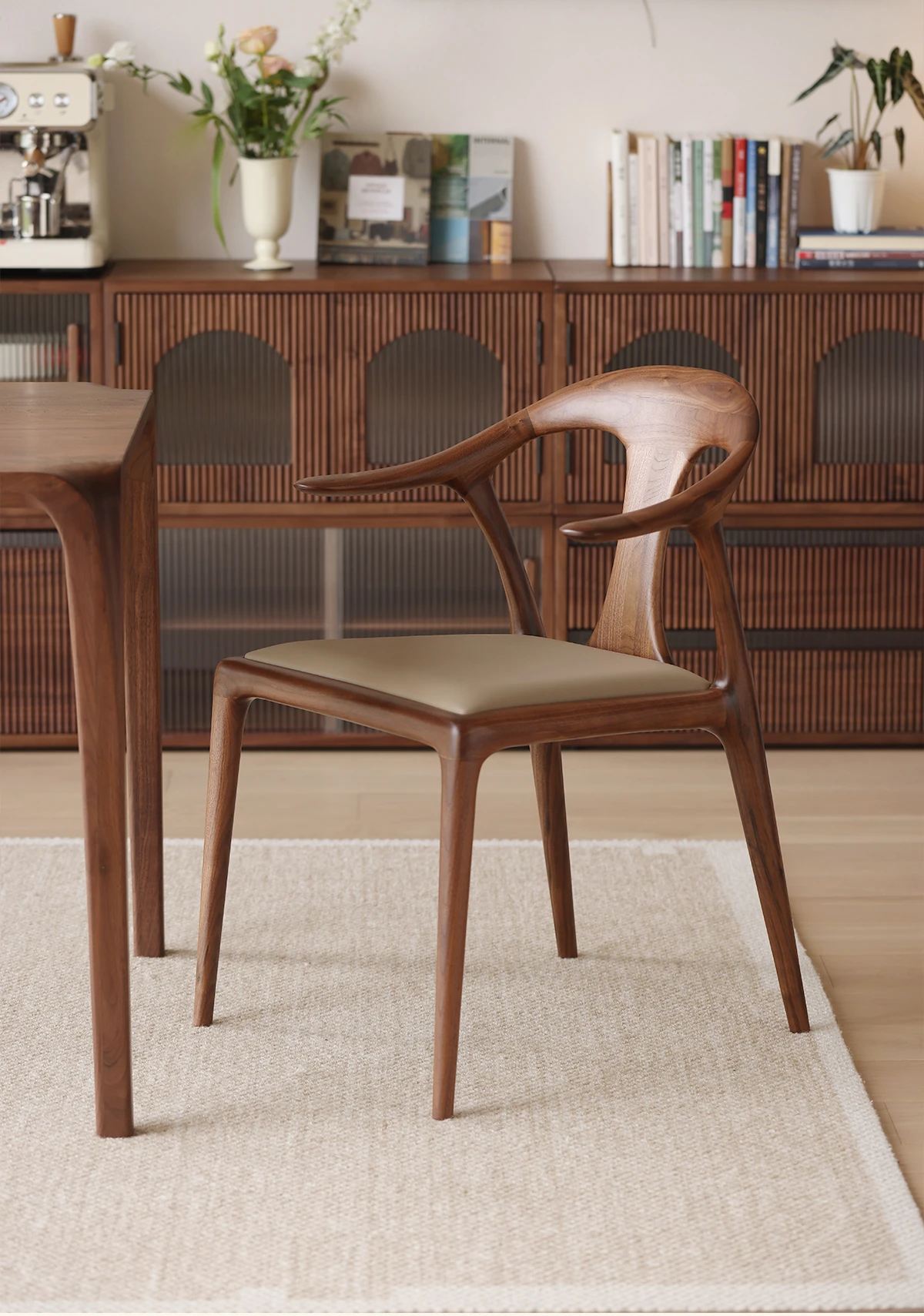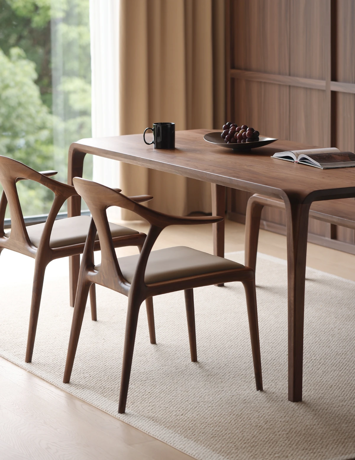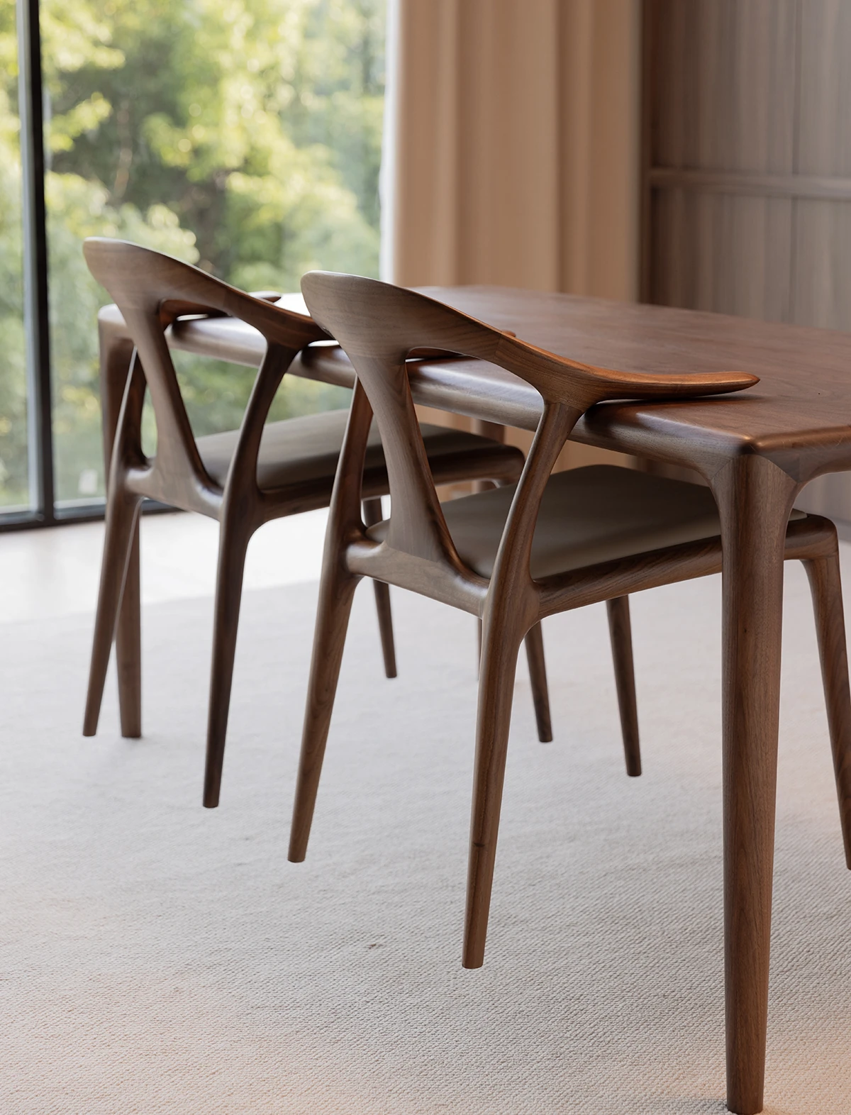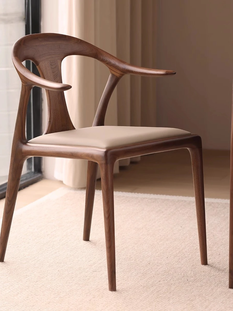北米産ブラックウォールナット無垢材ダイニングチェア|高級レザーソフトパッド付き|リラックスできるデザイン|茶室やリビングにも最適な主役の椅子!