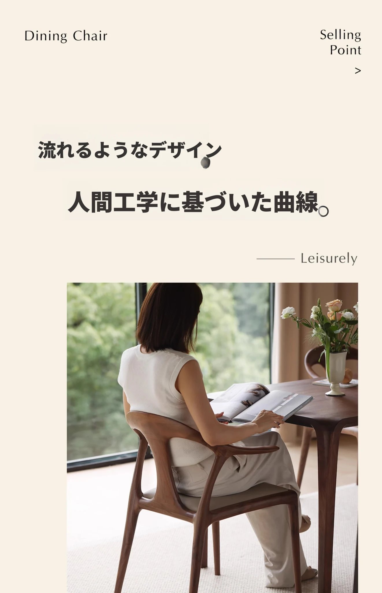 和風さくらんぼの木製ダイニングチェア|高品質の無垢材使用、スタイリッシュなデザインで快適な座り心地|ホワイトオークのナチュラルな風合いを楽しむ|モダンでシンプルな書斎用チェアとしても最適!