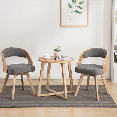 ローテーブル+2つの灰色布製椅子 ローテーブル直径60 高さ60