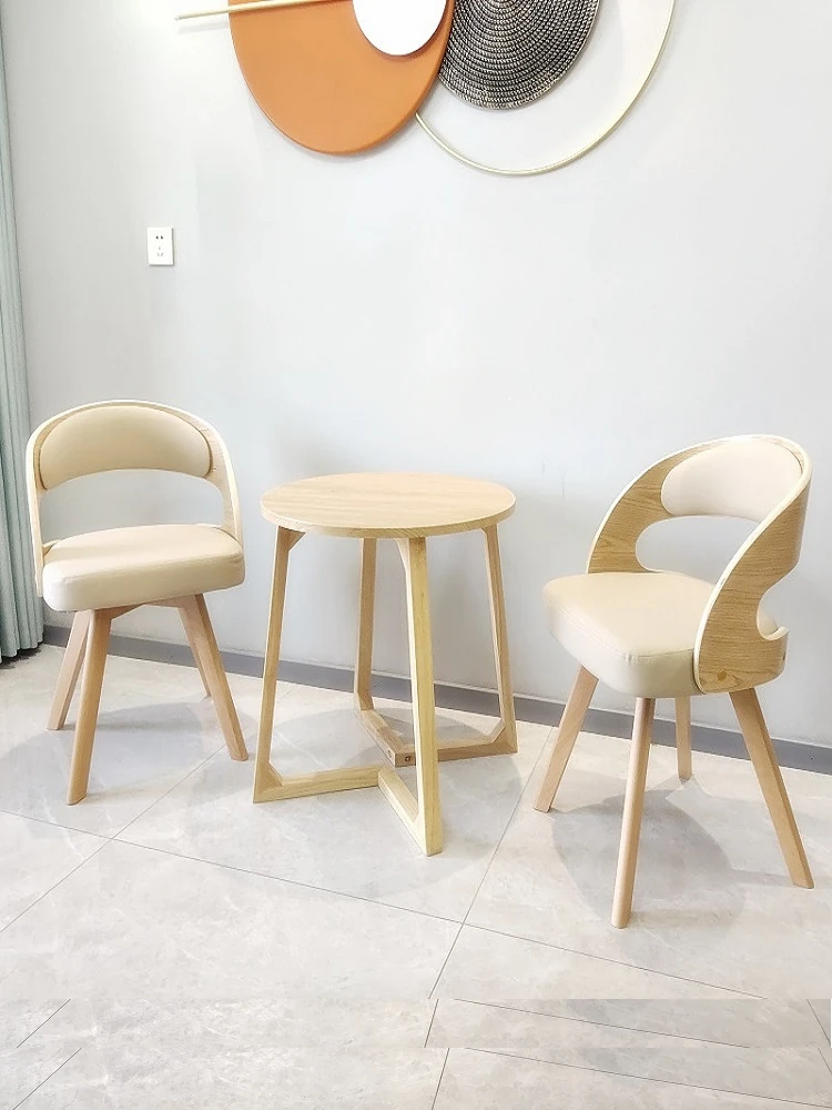 ベージュの皮製2脚+テーブル テーブル直径60 高さ60